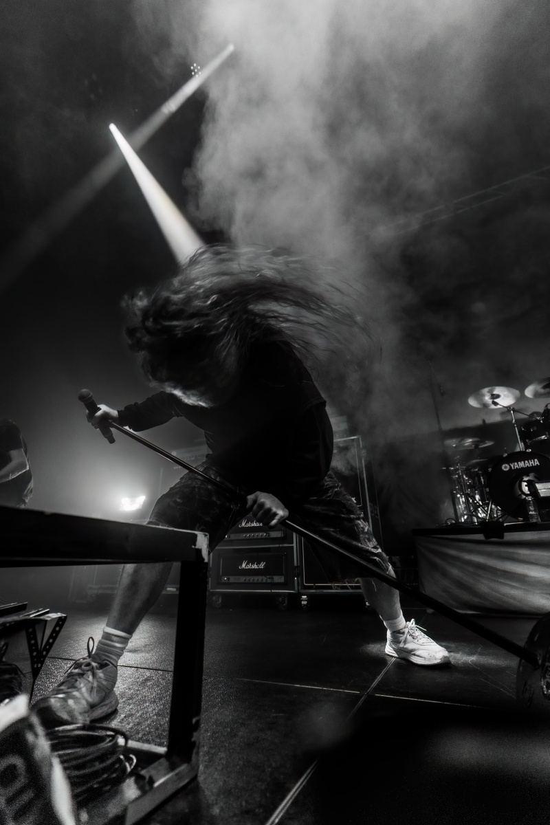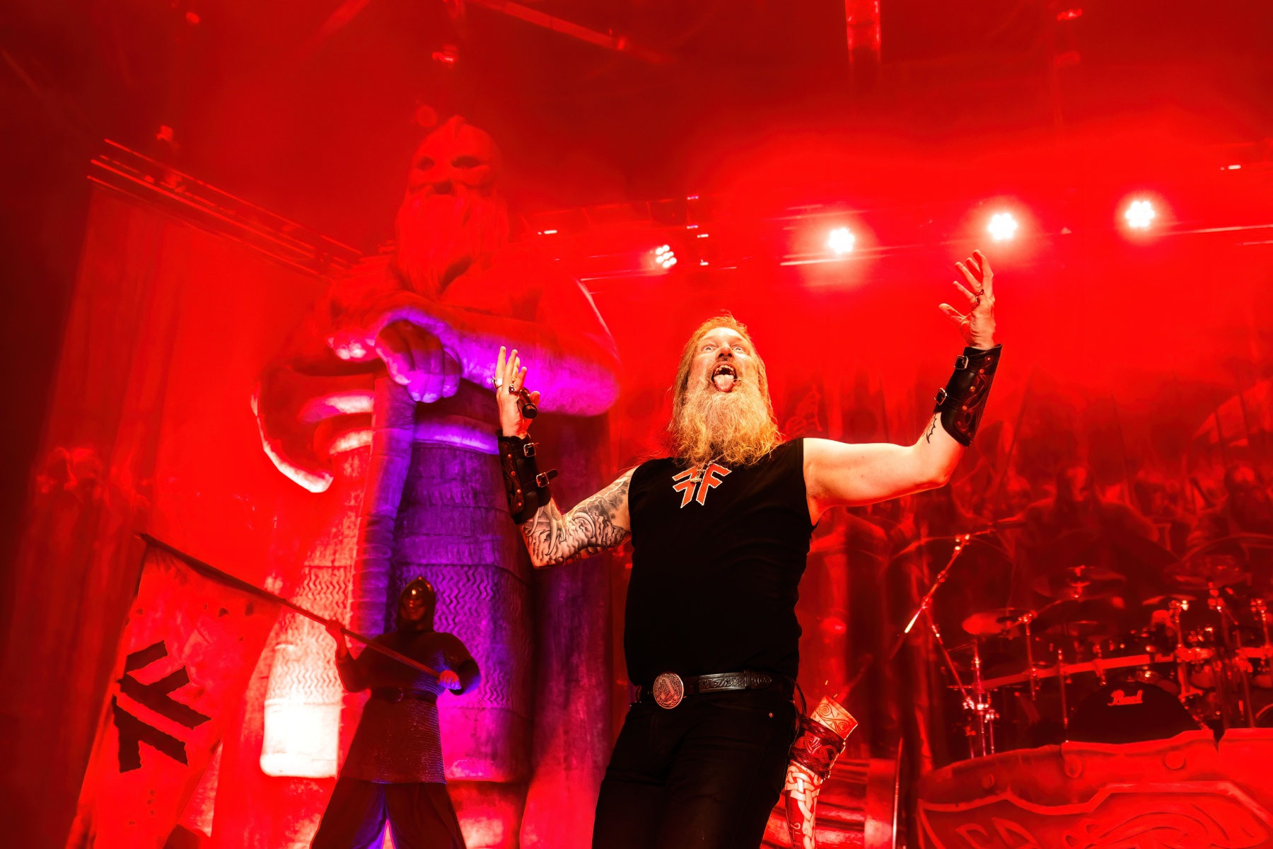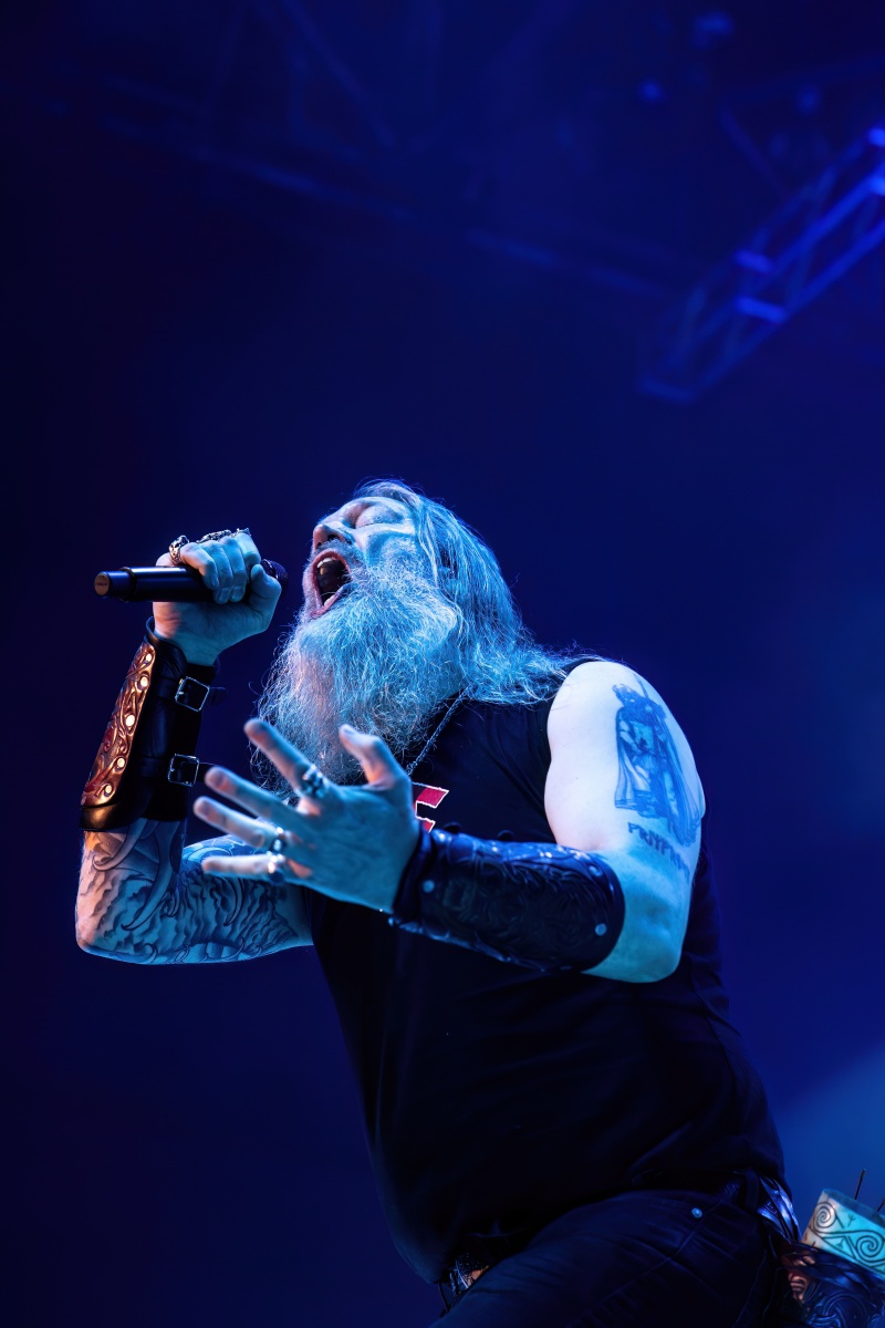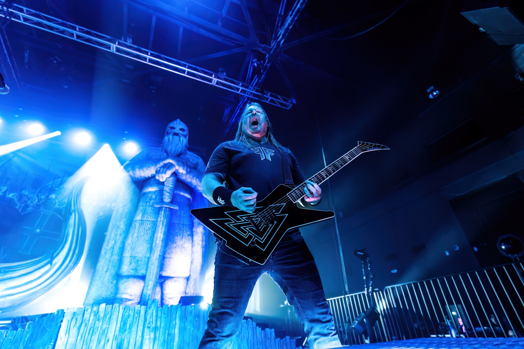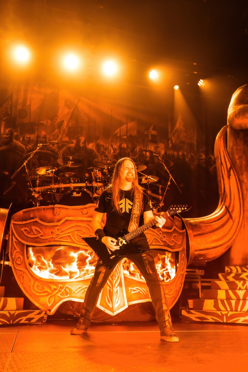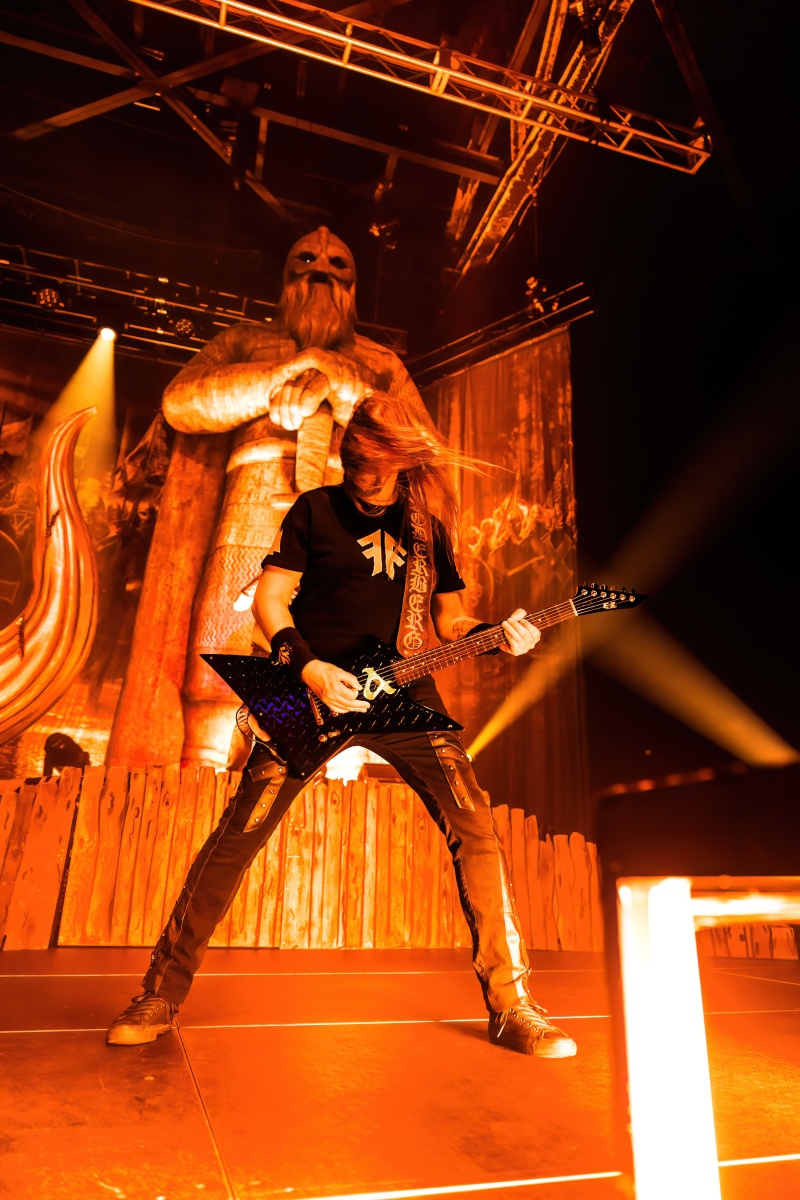 After trying to cool down and failing miserably, my sweaty self hung out by the side stage waiting for the Amon Amarth stage curtain to drop so the real madness could begin. I turned around and studied the crowd dressed in kilts, viking attire, with long beards, piercings, and even man-buns. Every single human in that venue was sweating but stoked for what most was here and ready to see. As that curtain fell, I’ve never witnessed so much chaos within a crowd, it was now time to really rock out to some google ol’ swedish death metal. The whole rest of that set was honestly a blur, i feel like it went by so fast it’s hard to even put into words how fantastic it was. There were more mosh pits than I could even count, crowd surfers after crowd surfers, and of course the iconic circle of rowing pits. Where do I even begin with the stage and lighting visuals? We had thirty-foot viking statues, sea serpents, ships, horns, sword wielding warriors, and layers on top of layers of fog with an extraordinary light show to top all of that off. It was insane and brilliantly crafted art, in my opinion. I’ve always known Amon Amarth puts every single ounce of detail into their stage presence but I wasn’t expecting this level of badassery. They played a fifteen song set including “Ravens Flight”, “As Loke Falls”, “The Way Of Vikings”, and much more ranging from 7 different albums. Amon Amarth is known for their obvious viking themed lyrics as they draw inspiration from that historical mythology culture. Their sound is dark and intense with a little blend of melodic elements with a splash of aggression that creates this almost movie-like soundtrack feel to it. Each band member had a huge role to play with creating the sound they gave the audience that night, every musician on that stage was on point with their instruments and radiated the venue with powerful layers of sound. The crowd’s energy was feeding into the bands energy which was then feeding right back into the crowds. It was truly one of the best performances i’ve ever seen, and although i was glad in the beginning that this show was indoors, not being able to have the full on Amon Amarth well known fire show was kind of a bummer. I wish they would have had it at another venue that allowed pyro or I would have settled for an outside show. Other than that, I’m super thankful I was able to catch them here in Houston.