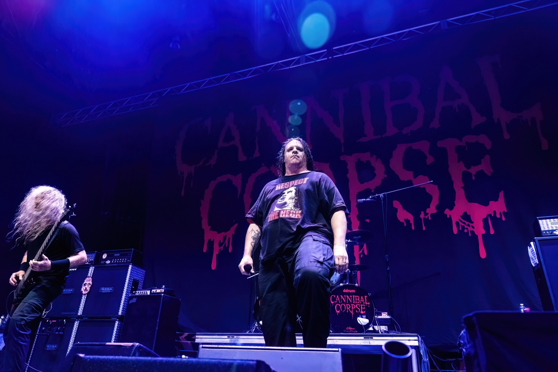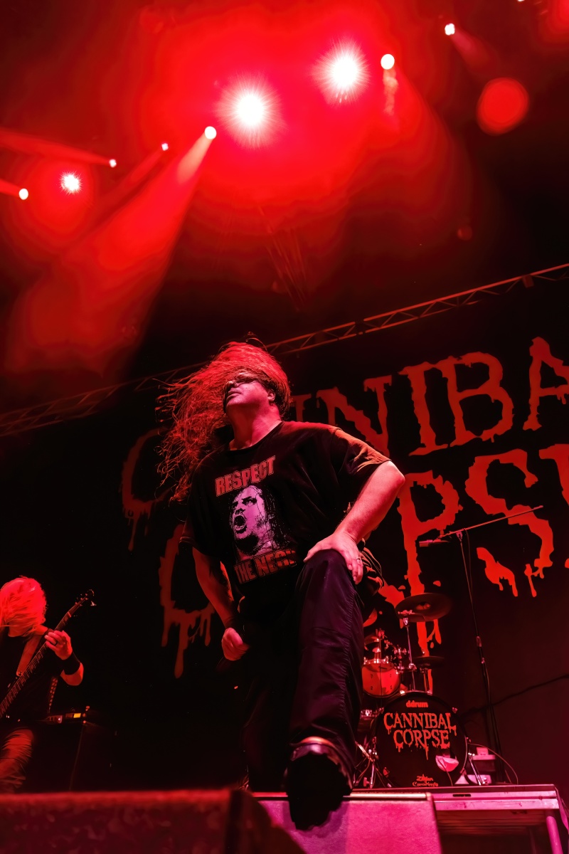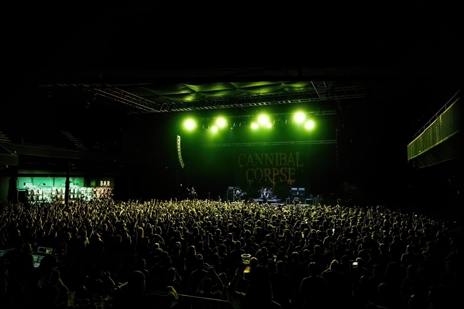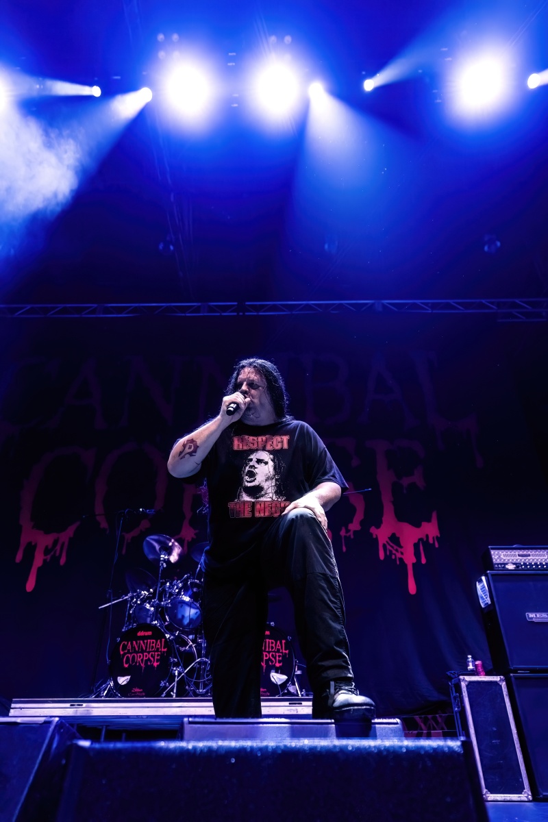 Next we had a band that I was also particularly excited to see for the first time, NY formed Metal gurus Cannibal Corpse. I would think everyone in the world knows of these dudes, with their very gruesome sounds and lyrical aspects and obviously the Lead Vocalist George “Corpsegrinder” Fisher, who towers the center stage and windmills the entire show of every single performance. I always thought that was just a dramatic expression, but it’s legit.. He literally does not stop headbanging and windmilling. It was almost giving me a headache just watching it. How in the world does he not have raging migraines? Is this why he has such a huge neck and wears a shirt almost every show specifically saying “Respect The Neck”? I need these answers! But anyways, man oh man, they are crazy good live. The energy was wild, I’ve never seen so many mosh pits and crowd surfers… no wonder they brought out 2x the extra security that night… It was truly a blast. Cannibal Corpse played a good range of their discography with songs including “Blood Blind”, “I Cum Blood”, “Summoned For Sacrifice” and more before ending their set with everyone’s favorite “Hammer Smashed Face”. These dudes are brutal but so talented, leaving you literally breathless from moshing or headbanging. I will admit I am pretty sad I didn’t purchase a Cannibal Corpse shirt. Hopefully next time!
