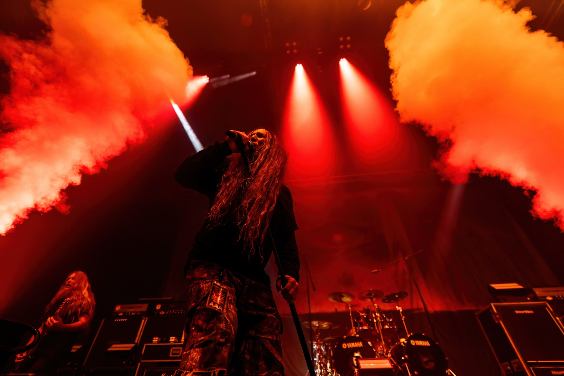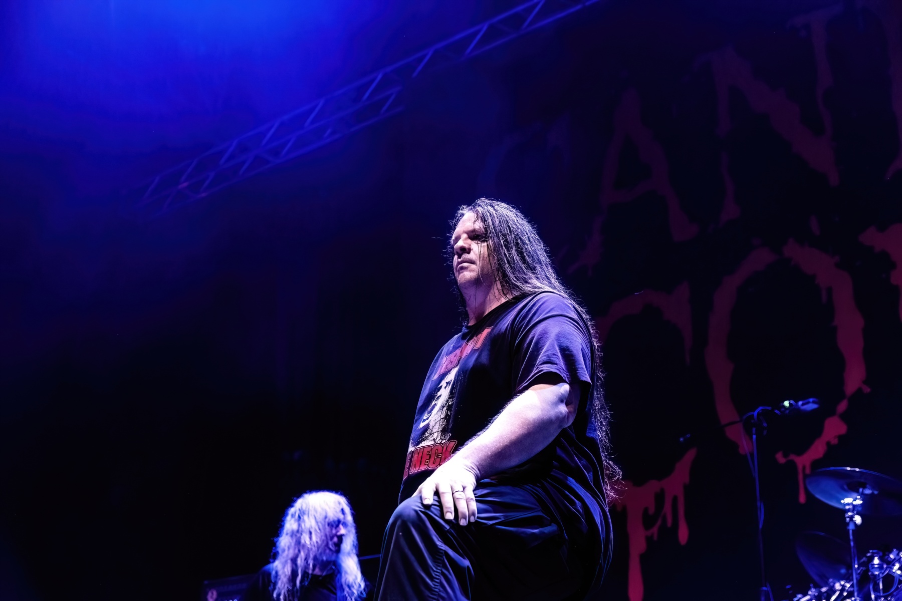 Joining Amon Amarth on their ‘Metal Crushes All Tour’ was Cannibal Corpse, Obituary, and Frozen Soul. Unfortunately i was a bit late so i wasn’t able to catch the first set from Frozen Soul, but was told by many good friends also attending, that they had a “kick-ass” performance and definitely expressed how dumb i was for being late and missing it. Obituary was coming onstage almost right as I was coming into the venue, so I quickly got to the front to capture it all. Obituary is an OG Death Metal band from Tampa, Florida and they are known for their growling vocals, heavily distorted guitars, and intense drumming. They are also considered “Pioneers” in the Death Metal genre, as they were formed in the late 80’s. They played a quick seven song set, including songs “The Wrong Time”, “My Will To Live”, “War” and more then closing out with “Dying Of Everything”.