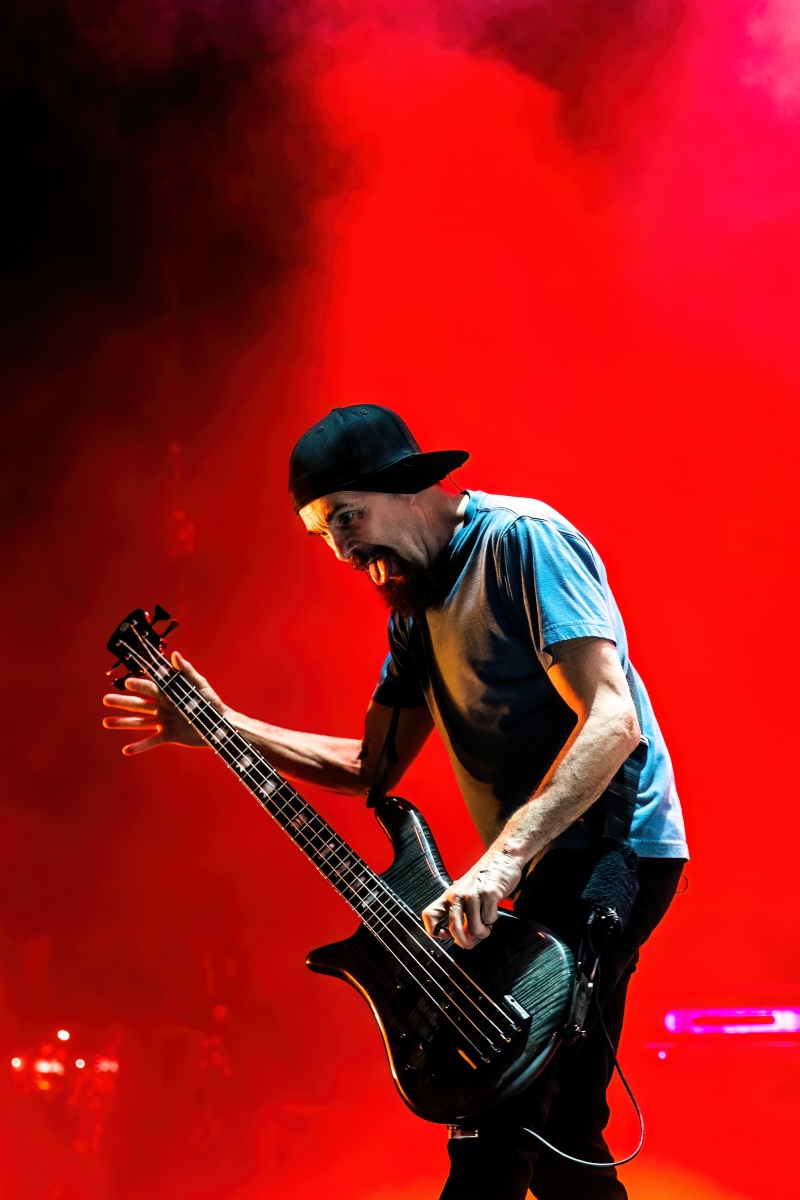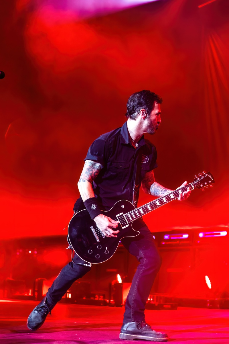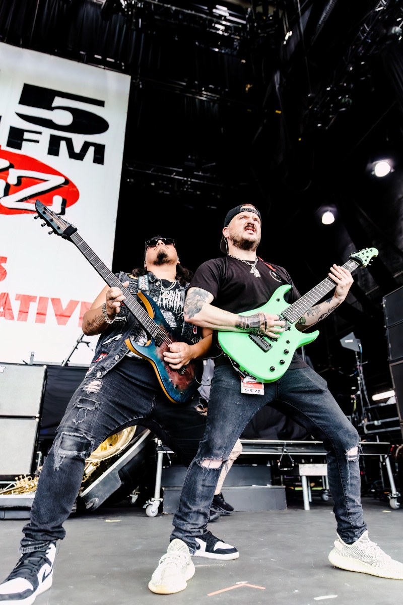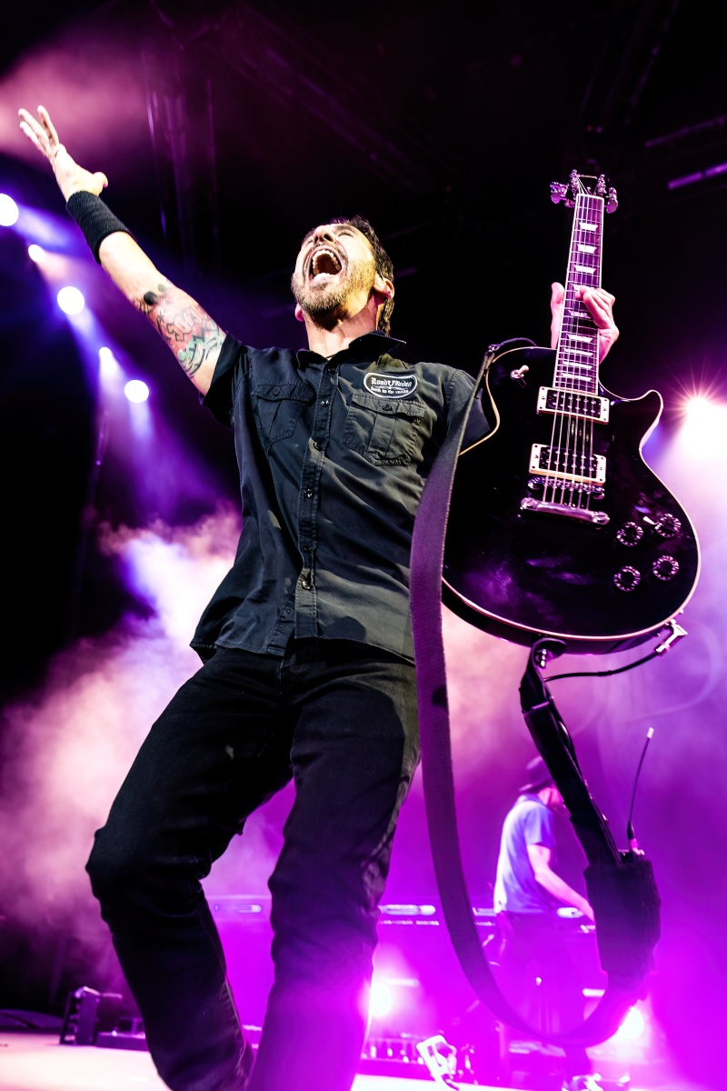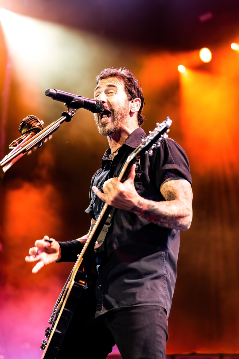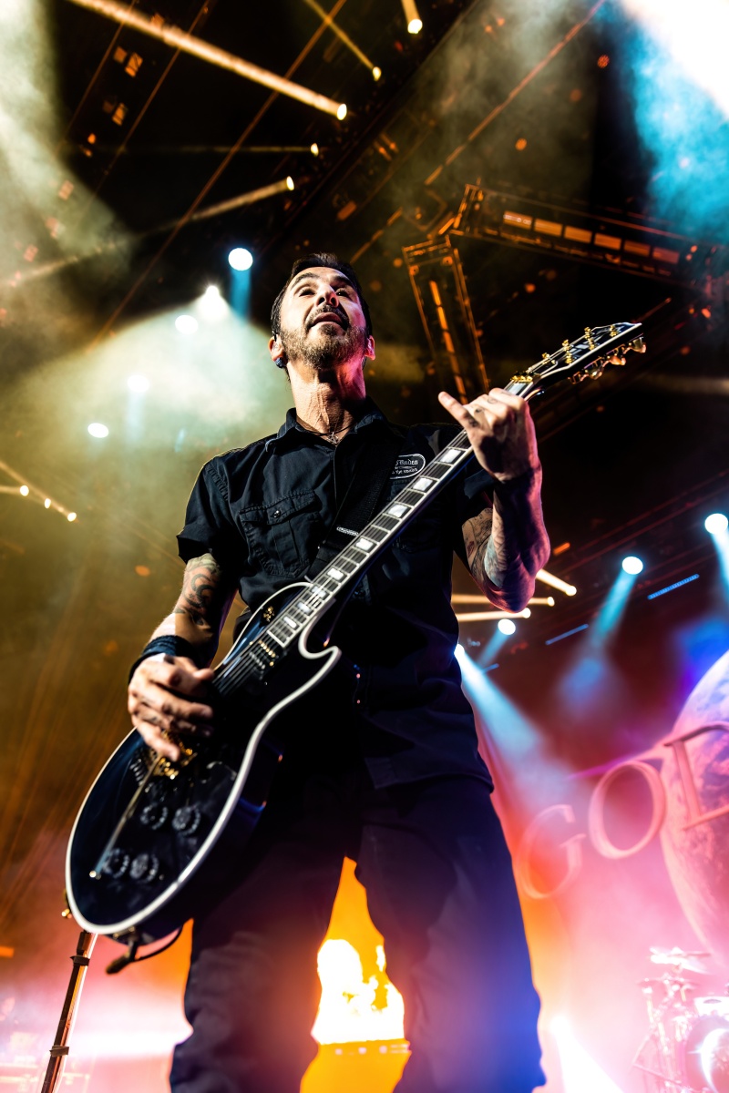 After a weather break and a small delay, us photographers were told the show would still go on, so it was finally starting to sink in that I was about to finally, after years of dreaming and manifesting, be able to photograph one of my favorite bands, Godsmack. To say I was thrilled is an understatement. I’ve been listening to Godsmack since I was nine years old. Literally nine. With both my father and uncle being huge fans and listening to them constantly, I guess it was bound to happen that I, also, would become a hardcore fan throughout my childhood years. Right there, in the photo pit, was little Krystie geeking out about the fact that she was as close as she was ever about to get to Godsmack. The lights went dark for a split second and next thing I knew, it was time to witness the powerful greatness that masterminds Godsmack brings to us fans, and the first song blasting throughout our eardrums was “When Legends Rise”. Instantly the crowd was the most insane I saw that afternoon, and EVERYONE was out of their seats with their metal horns in the air. Following many jams including “Crying Like A Bitch”, “Soul On Fire”, “BulletProof” and more, Vocalist Sully Erna was grabbing us all by our throats and taking us one one hell of a ride. Blazing fire, lights, heat, raging screams, and more and it was only halfway through the set. It was definitely the most fun I’ve had in a long time and I’m pretty dang sure I am not the only one to say that. Following with Sully’s iconic Drum solo and even more fire, Godsmack once again outdid themselves with an epic performance and ended the night with long awaited fan favorite encores “Surrender” and “I Stand Alone”. I can’t even put into words how unbelievably amazeballs these dudes are, even after decades they are still just as tight and incredible as ever… just with much more fire.