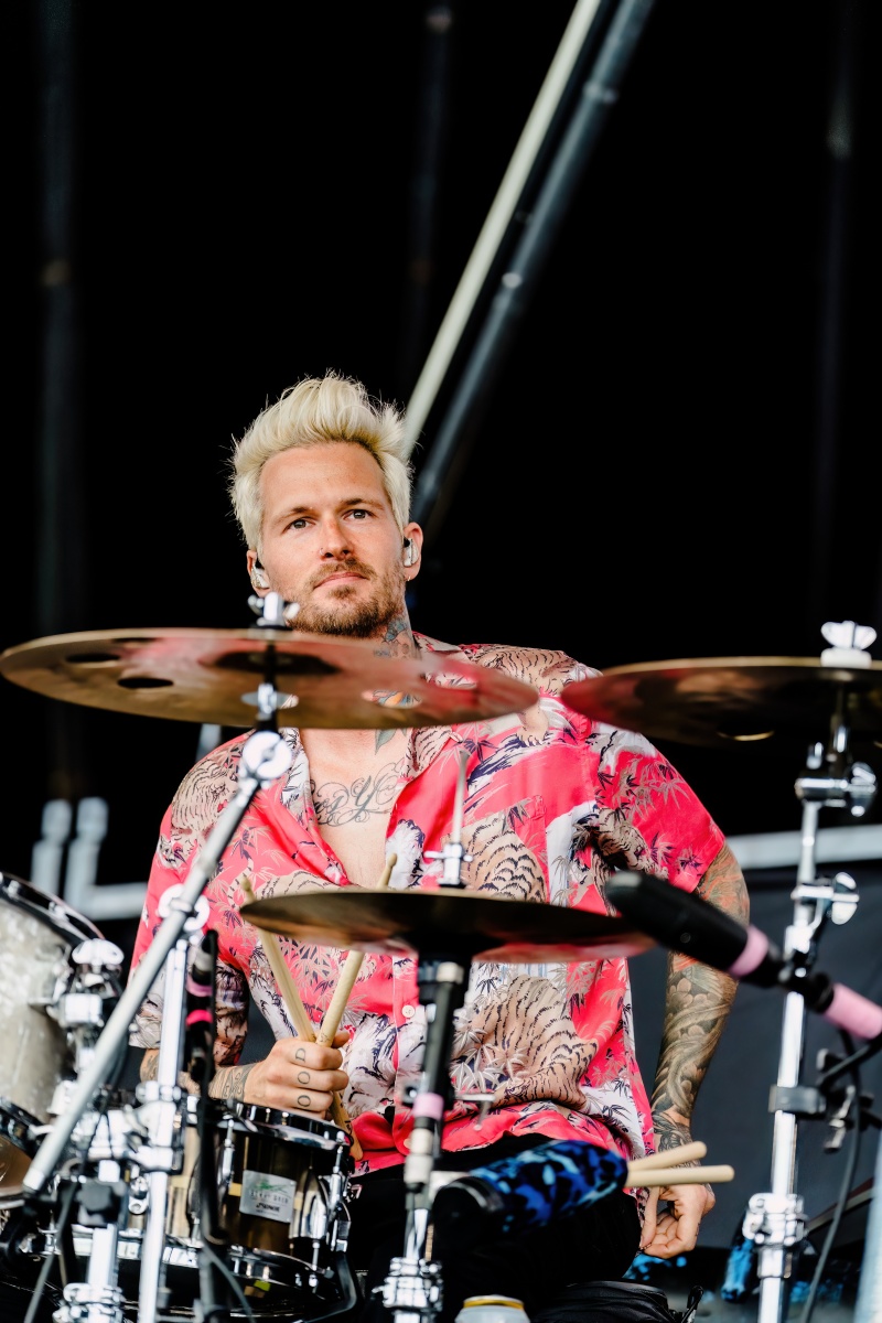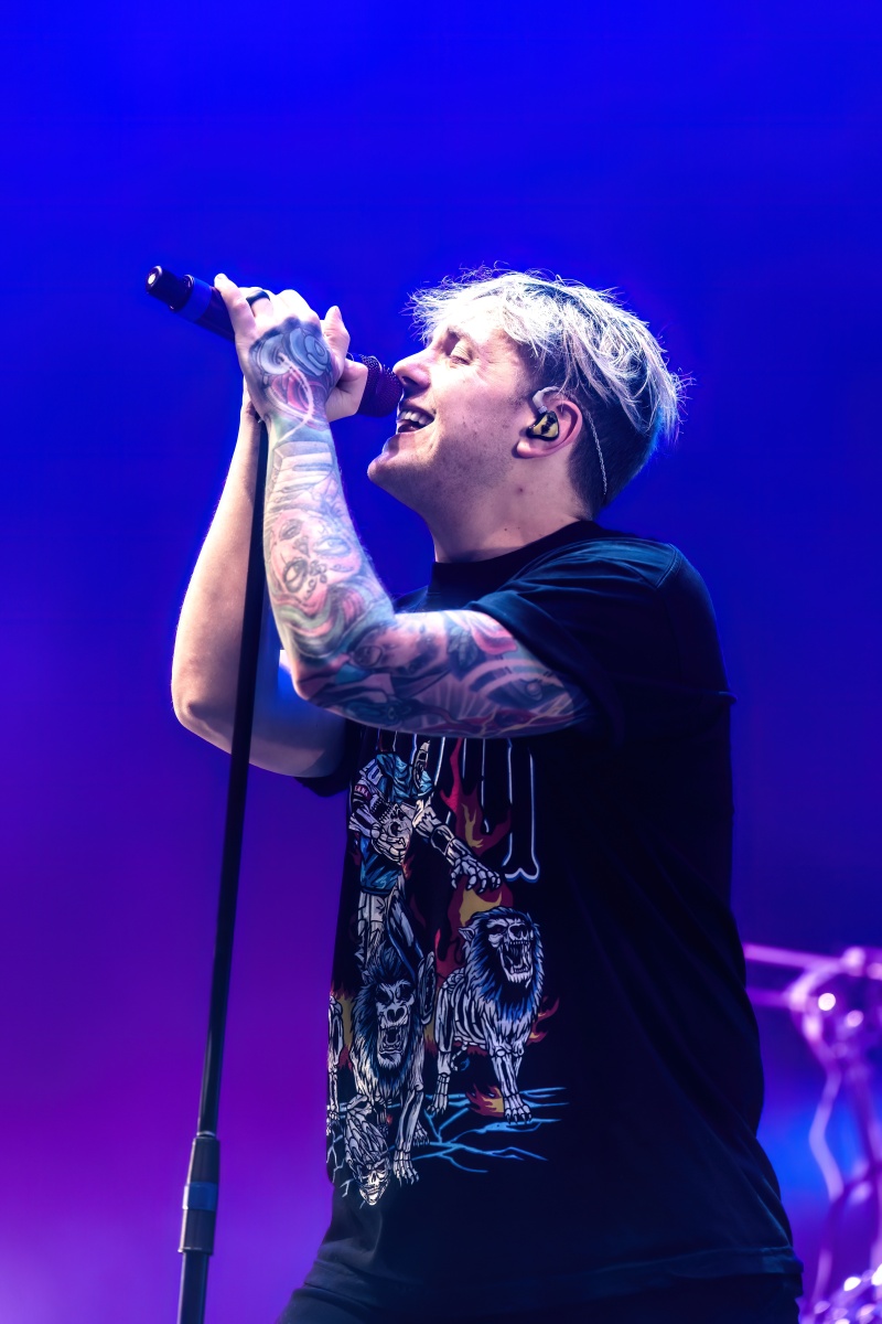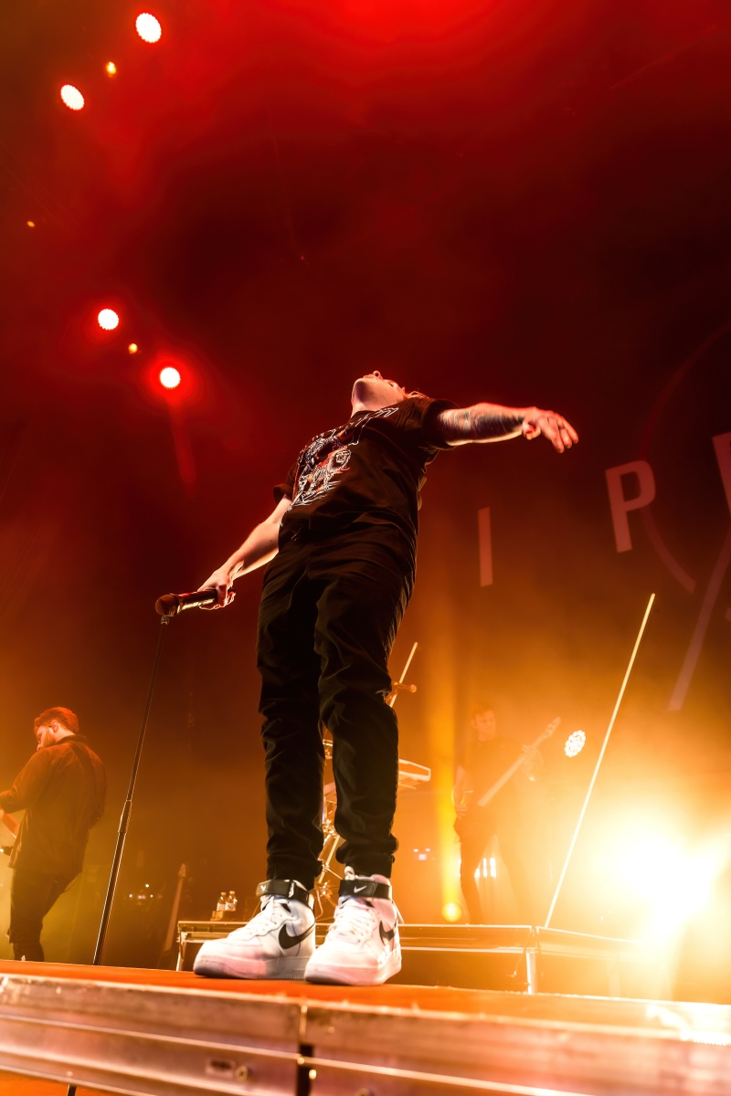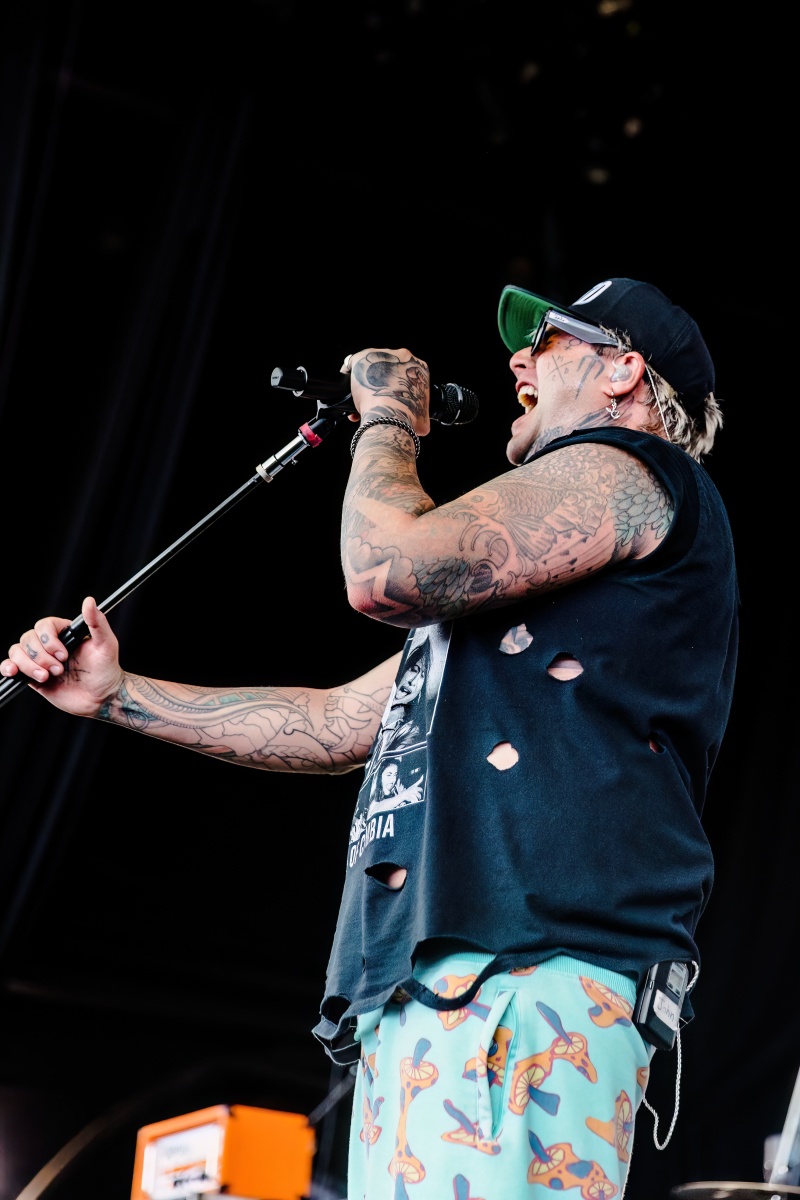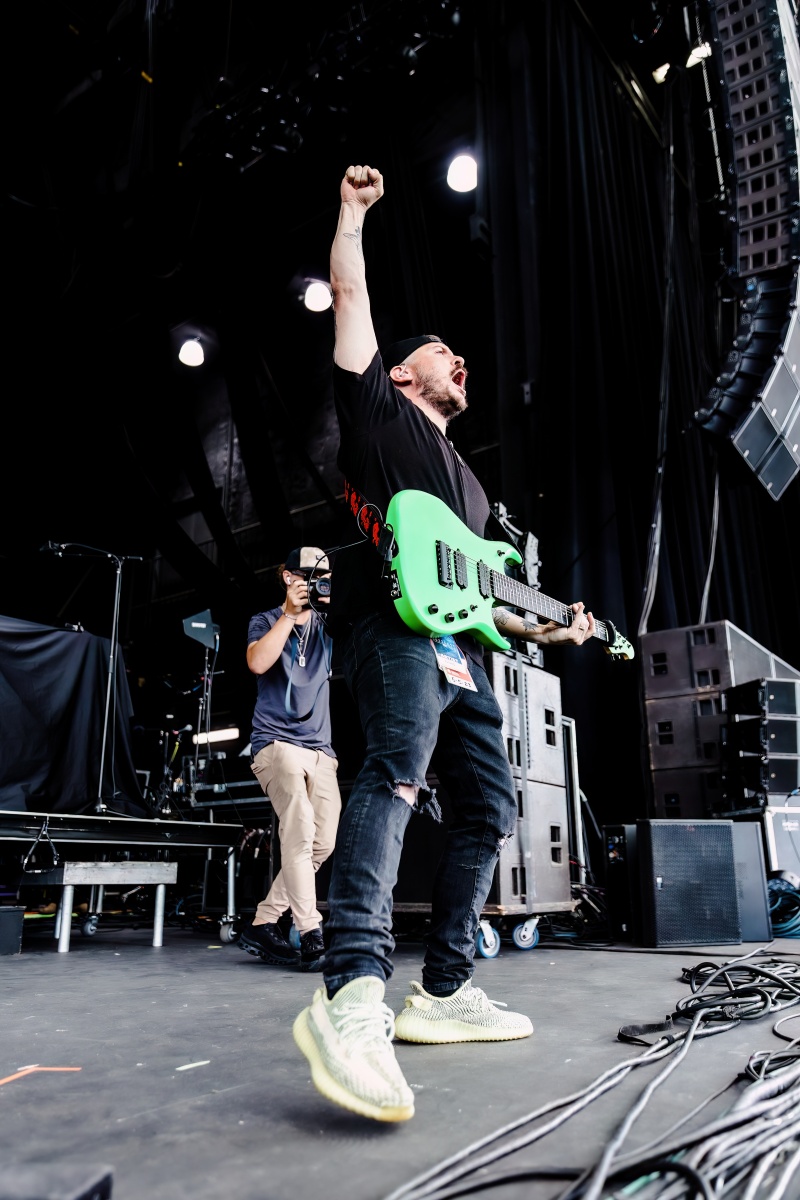 As the sky got moody again, It was now time for the metalcore extremists I Prevail. I’m pretty sure over 70% of the attendees were mainly excited to see these guys, as I heard many people throughout the afternoon rant on and on about how much I Prevail is “the best band on the planet”. As a huge metalcore fan myself, I was ready to finally get some headbanging in and witness some crazy intense moshing, and we all know I Prevail is going to bring you up and out of your chair and rip your face off during their shows. It’s pretty much impossible to not be moving around while these guys are up on stage. Playing many hits through their vast catalog including “Bow Down”, “Body Bag”, “FWYTYK”, and “Deep End” these dudes were absolutely crushing it on stage. Finally that particular energy I’ve been feening for! Everyone was jamming out, there wasn’t one person who wasn’t at least nodding their head. Unfortunately things abruptly hit a halt after “Choke” and once again the weather was back and angry and led to the ending of their shortened set and the crowd to find shelter. I felt really bad for these guys as they were giving their all during their performance, but obviously they had to make the right call, and the weather didn’t seem like it was giving in.