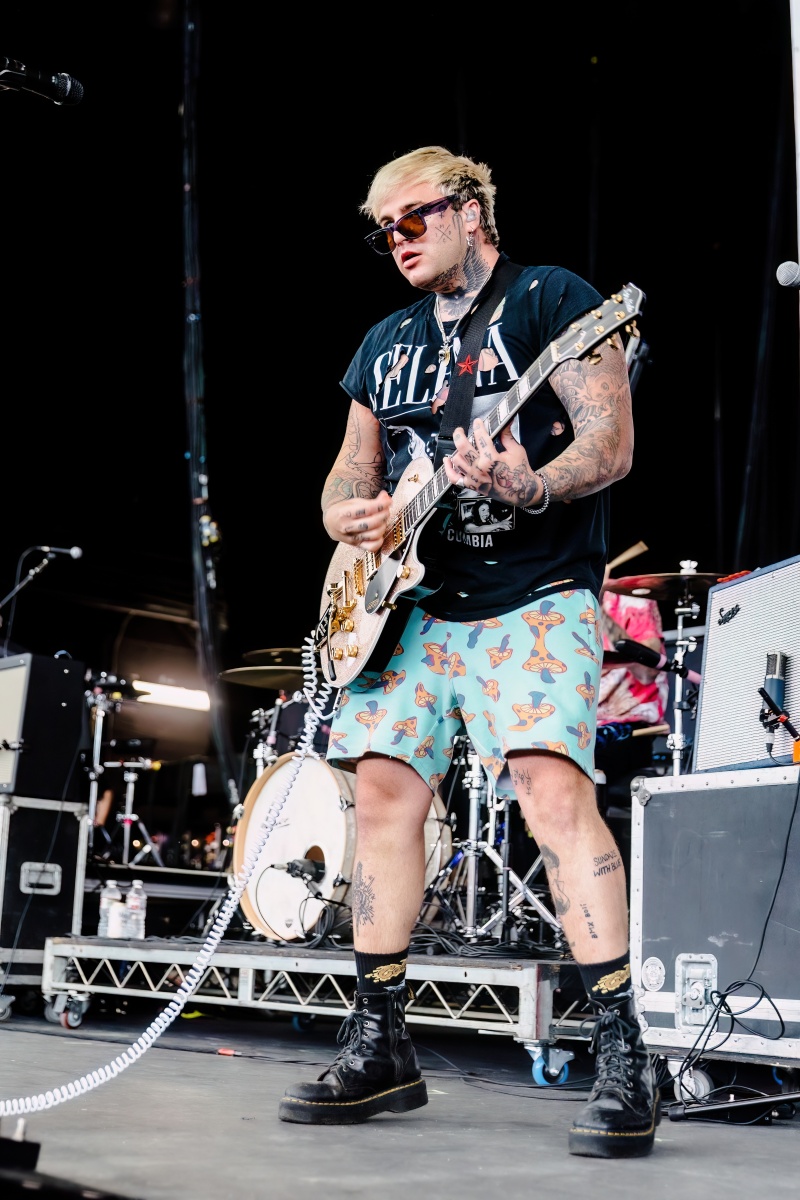 Massachusetts rock studs, Highly Suspect was up next, and also another band I was screaming with excited to see again. This time the rain was finally settling down for a bit, so getting drenched again wasn’t on the schedule for this part of the afternoon. Thankfully, since I was finally starting to dry off from the downpour I endured before. Frontman and vocalist Johnny Stevens rattled up his fans with starting song “Bath Salts” As I looked back around me I saw the swarm of humans wearing their MCID (My Crew Is Dope) merch, which is absolutely a Highly Suspect sort of ritual with their fans from their first album. Even i have a MCID hat from years ago, seeing that they still have that as their sort of logo these days is pretty awesome. Continuing their set with some of my personal favorites “Lydia”, “Serotonia”, and ending with “Pink Lullabye” Highly Suspect put on a phenomenal show and had everyone in the crowd singing and screaming alongside them.