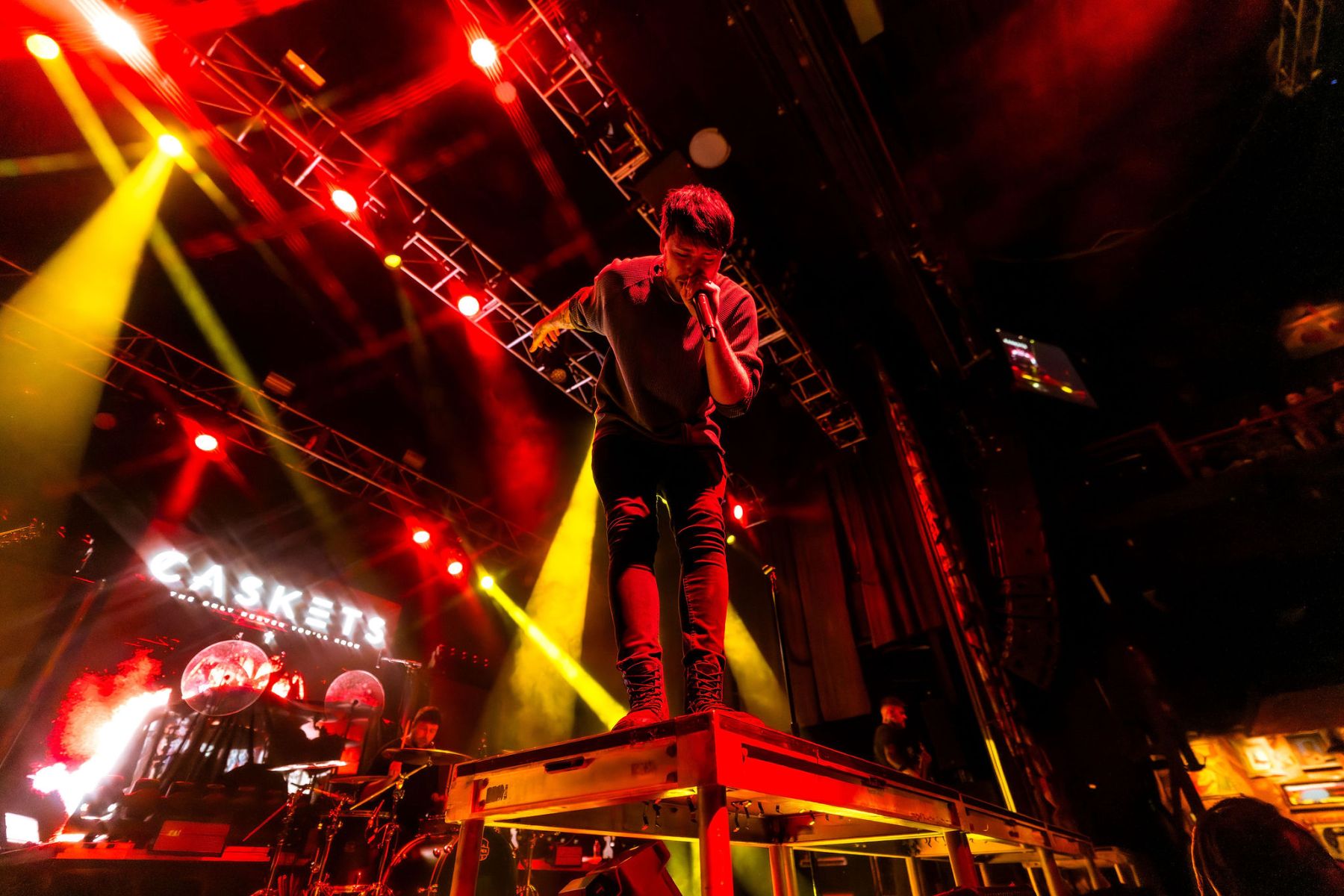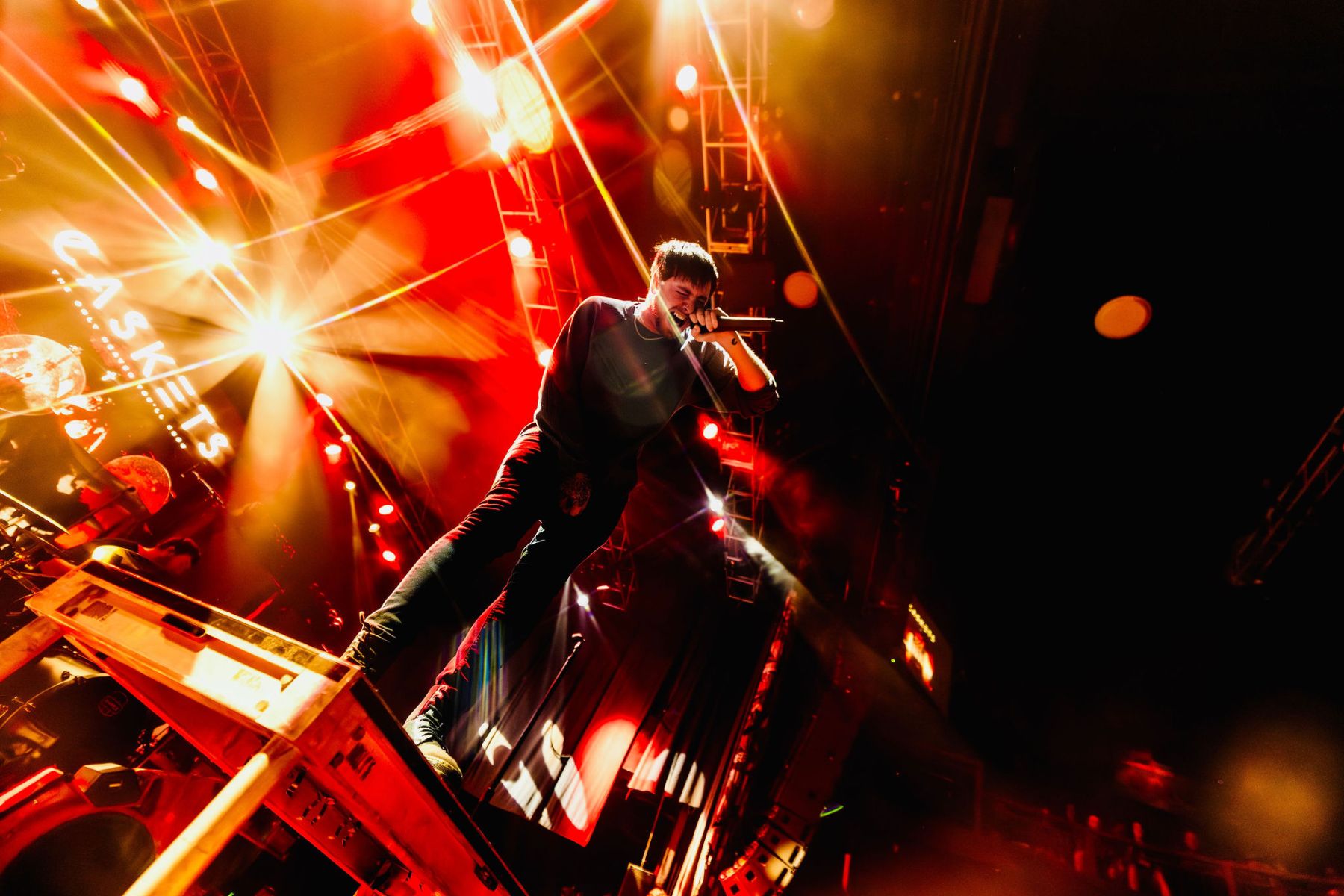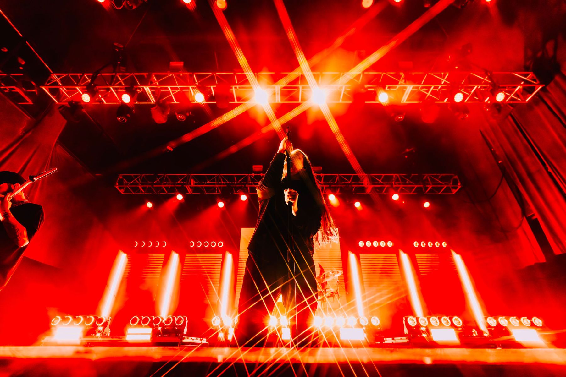 Caskets kicked the night off right when I got there. Their sound hit differently…one of those sets where you don’t really know what to expect and then it instantly just pulls you in. The stage was washed in red and orange lighting, setting the mood immediately, and within minutes crowd surfers were coming from every direction. They ran through tracks like “Lost in the Violence,” “Hate Me,” and my personal favorite “Lost in Echoes,” before closing out with “Glass Heart.” Even with a short set, it was still a blast and got the energy exactly where it needed to be for the rest of the night.