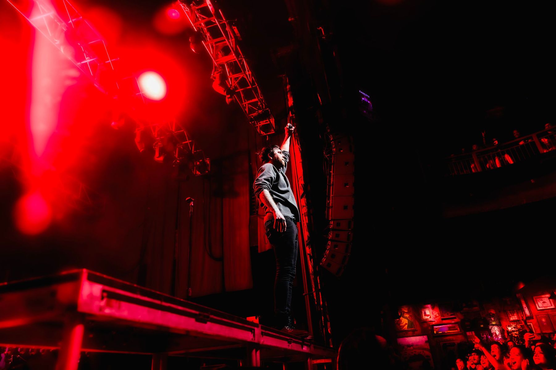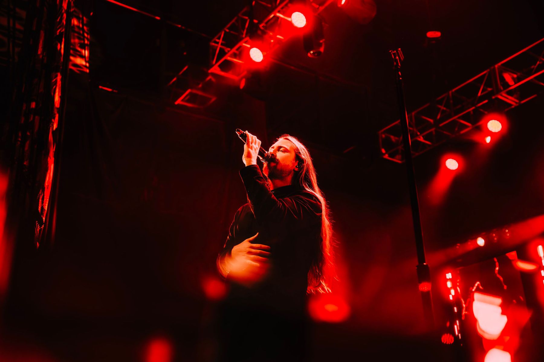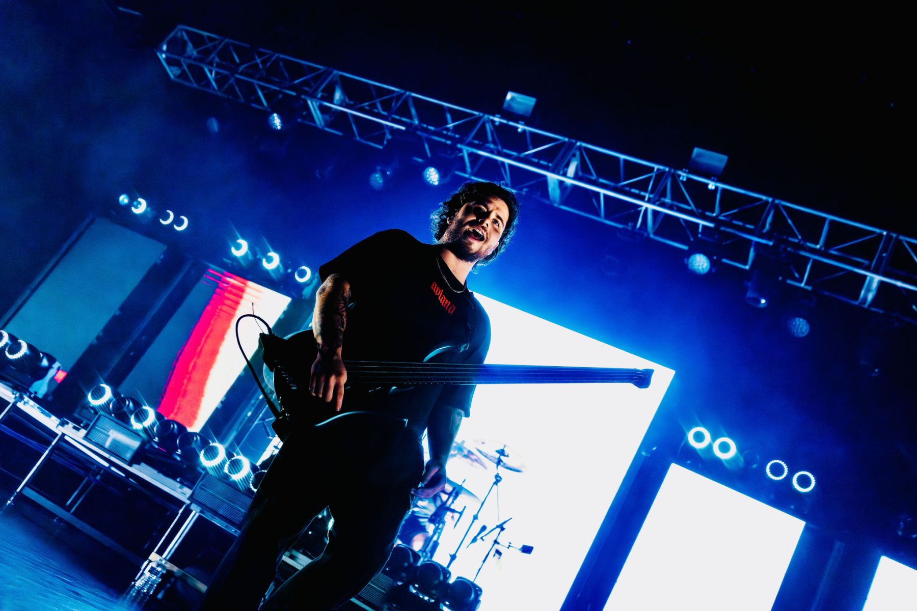 Last up was Currents, the main act of the night, and by this point the crowd was already fully gone…in the best way. A little drunker, a little bolder, people getting pushy, but the second they walked on stage, everyone was on their feet. Instantly. The entire room flipped into one voice, screaming every word back at them. Their sound was just unreal…dark, heavy, and layered in a way that felt almost overwhelming at times, but in the best possible way. It hit hard and stayed there. The lighting and visuals behind them only made it more intense…flashes, shadows, and imagery that made the whole set feel bigger than the room itself. I kept looking back at the crowd and it was the same thing everywhere…people screaming, crowd surfing, losing it, just fully in the moment together. All while a full-on thunderstorm was going off outside. They ran through songs like “Unfamiliar,” “The Death We Seek,” and “Better Days,” packing a solid setlist into their time and not wasting a second of it. It truly was the perfect kind of chaos for a rainy Saturday night…loud, intense, and exactly what everyone there needed.