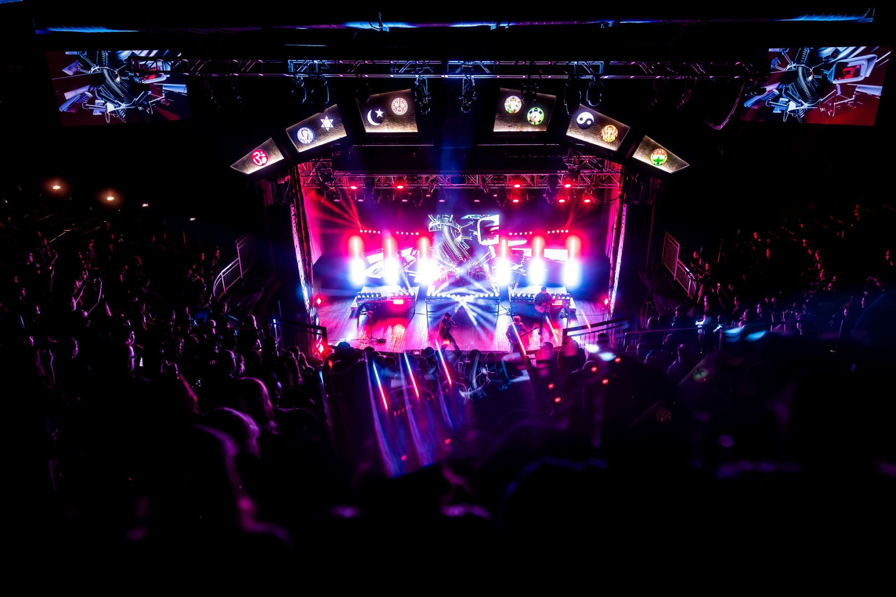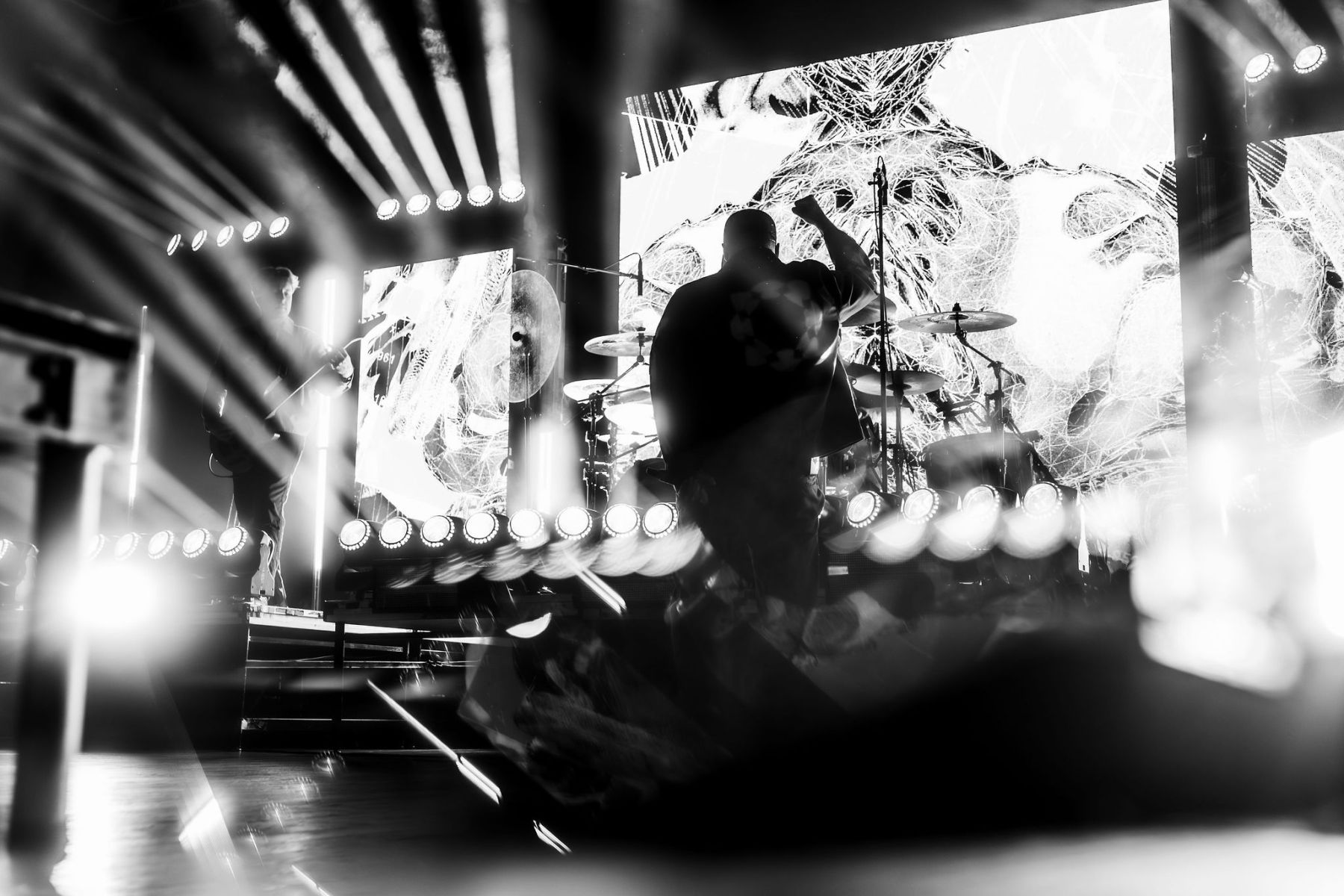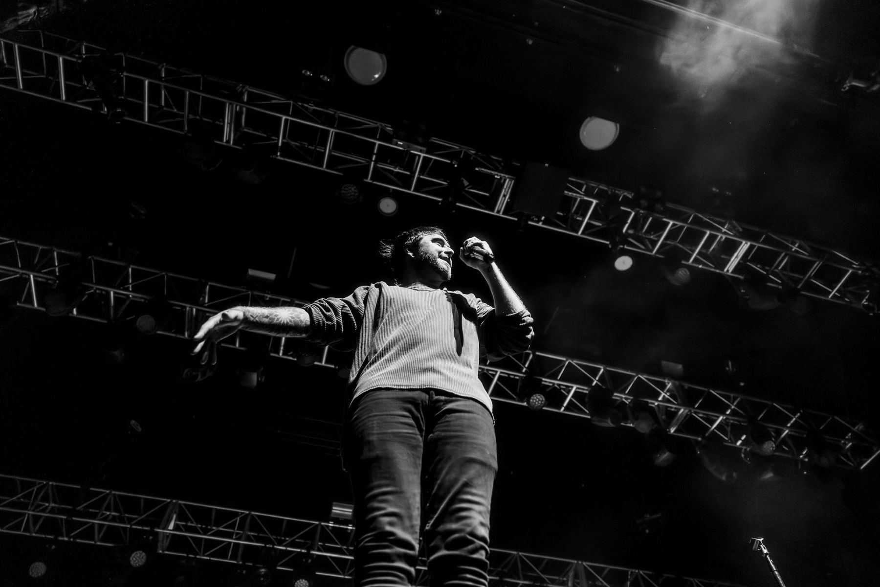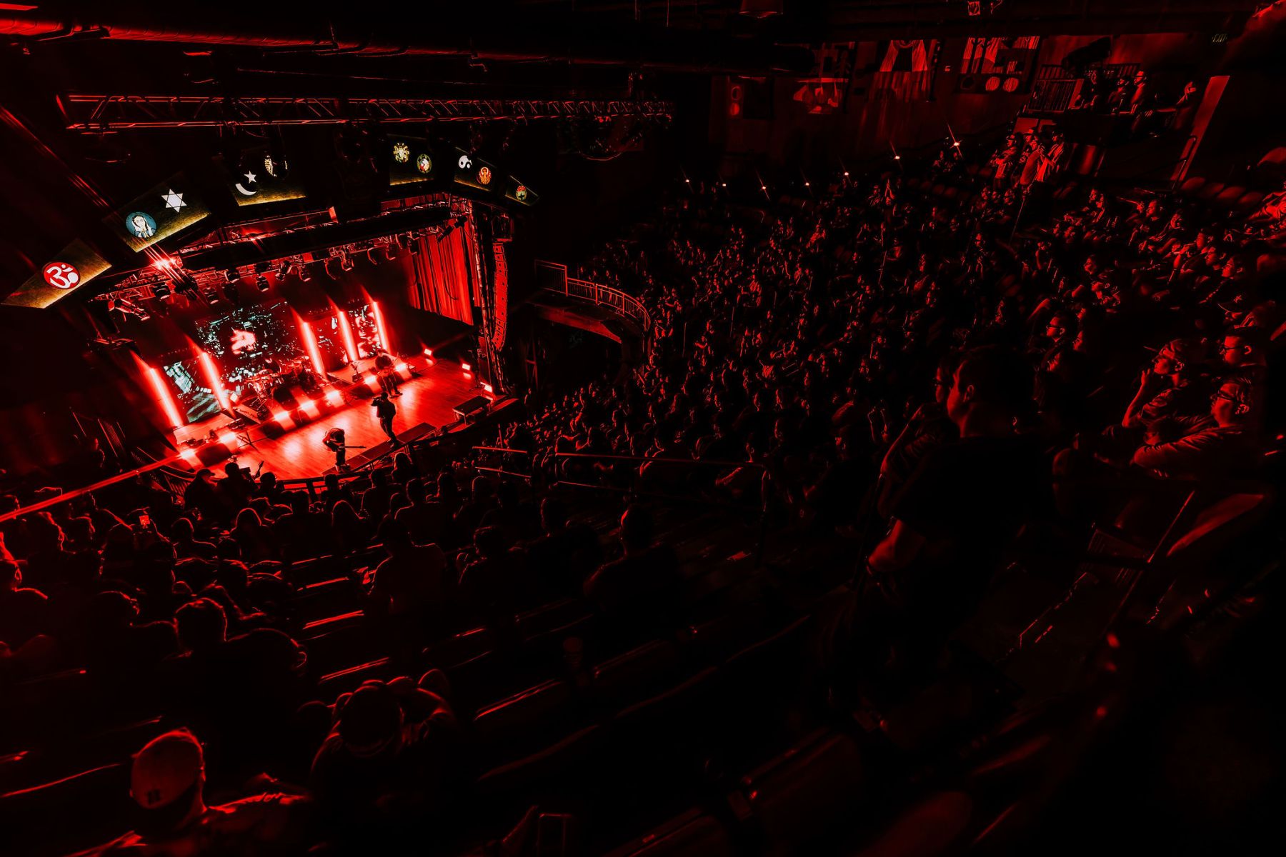 Last up was Currents, the main act of the night, and by this point the crowd was already fully gone…in the best way. A little drunker, a little bolder, people getting pushy, but the second they walked on stage, everyone was on their feet. Instantly. The entire room flipped into one voice, screaming every word back at them. Their sound was just unreal…dark, heavy, and layered in a way that felt almost overwhelming at times, but in the best possible way. It hit hard and stayed there. The lighting and visuals behind them only made it more intense…flashes, shadows, and imagery that made the whole set feel bigger than the room itself. I kept looking back at the crowd and it was the same thing everywhere…people screaming, crowd surfing, losing it, just fully in the moment together. All while a full-on thunderstorm was going off outside. They ran through songs like “Unfamiliar,” “The Death We Seek,” and “Better Days,” packing a solid setlist into their time and not wasting a second of it. It truly was the perfect kind of chaos for a rainy Saturday night…loud, intense, and exactly what everyone there needed.