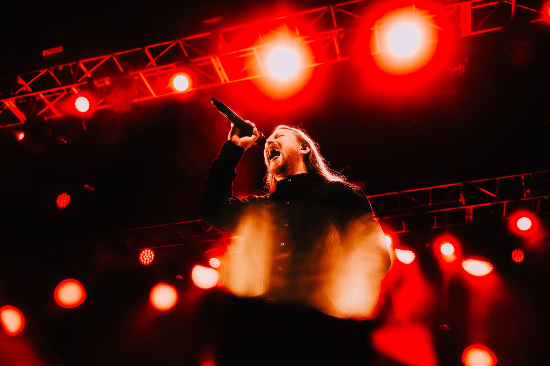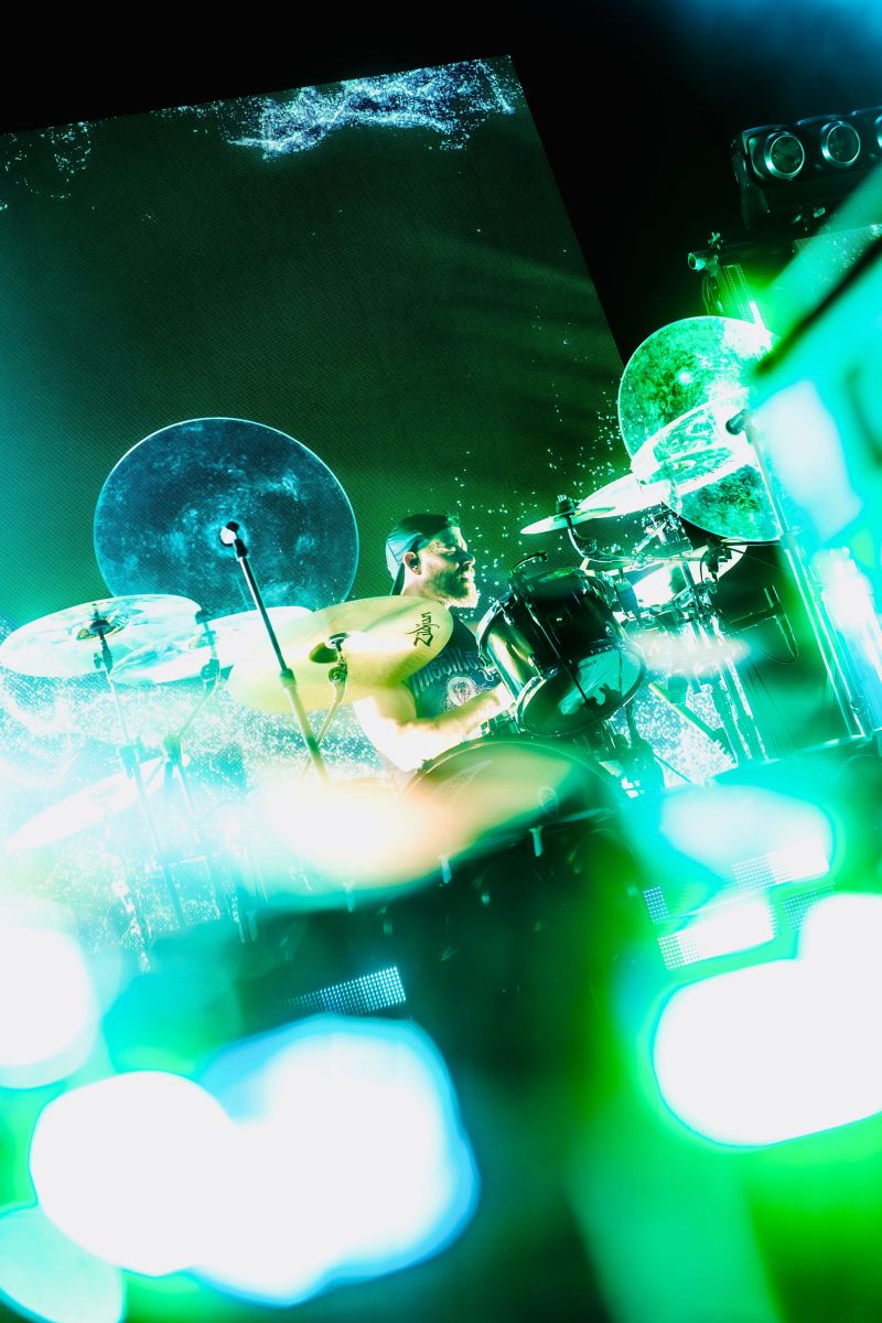 Next up was ERRA, and holy hell…this was the set I didn’t see coming. I’ll admit it…I had never really listened to them before, which honestly feels criminal now. Their sound hit hard but stayed insanely clean at the same time, blending raging riffs with raw moments that still carried a ton of emotion. The whole set was just pure intensity…rage, energy, and nonstop movement which went by way too fast… Frontman Jesse Cash knew exactly how to pull the crowd in, super charismatic in a way that kept you locked on him the entire time. They ran through tracks like “Crawl Backwards Out of Heaven,” “Drift,” and “Cure,” before closing out with “Snowblood.” And at one point, he grabbed a pair of light-up bunny ears from someone in the front row and just wore them on stage like it was nothing…completely random and hilarious, and somehow it still fit the chaos of their set perfectly. They definitely gained a new fan that night!