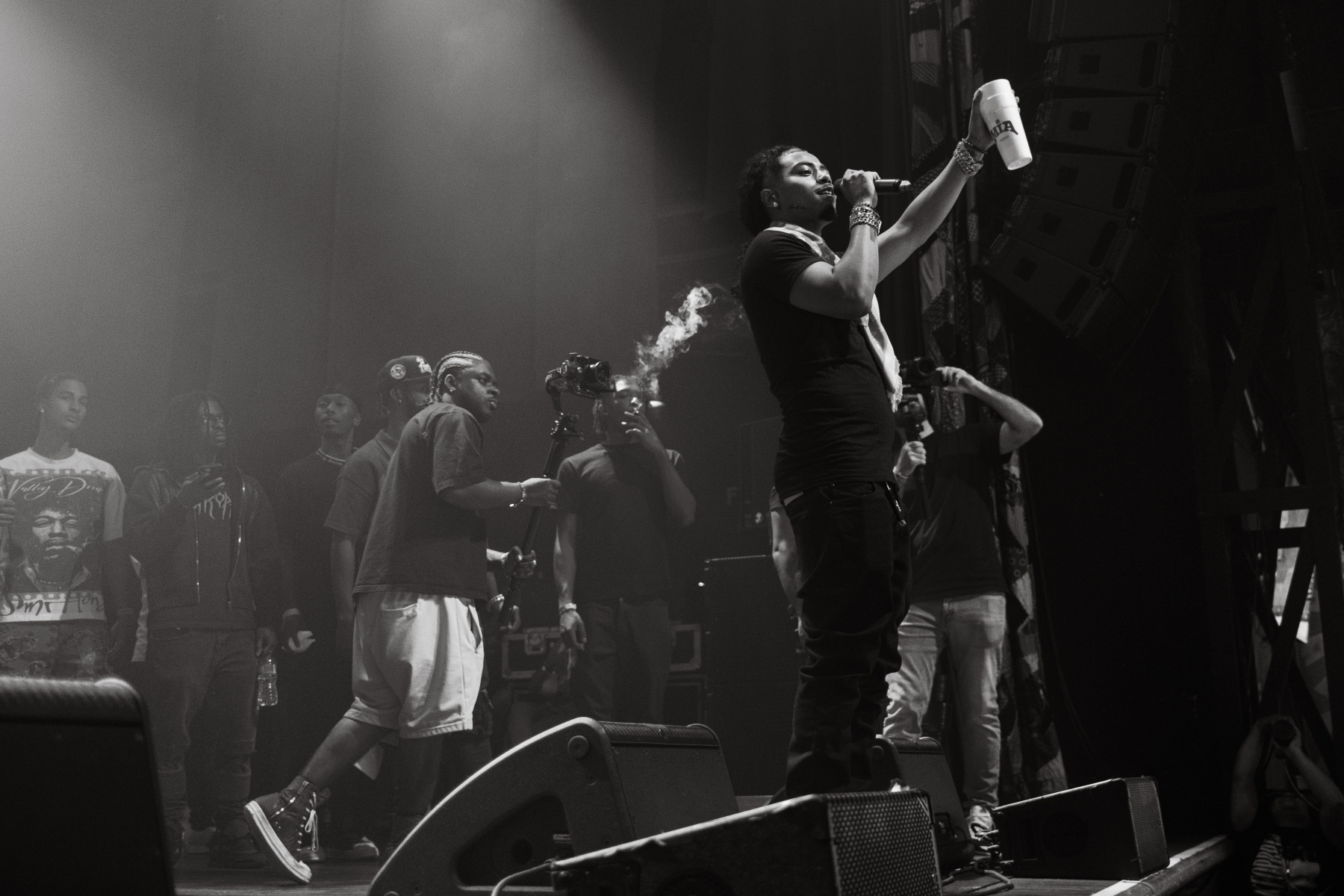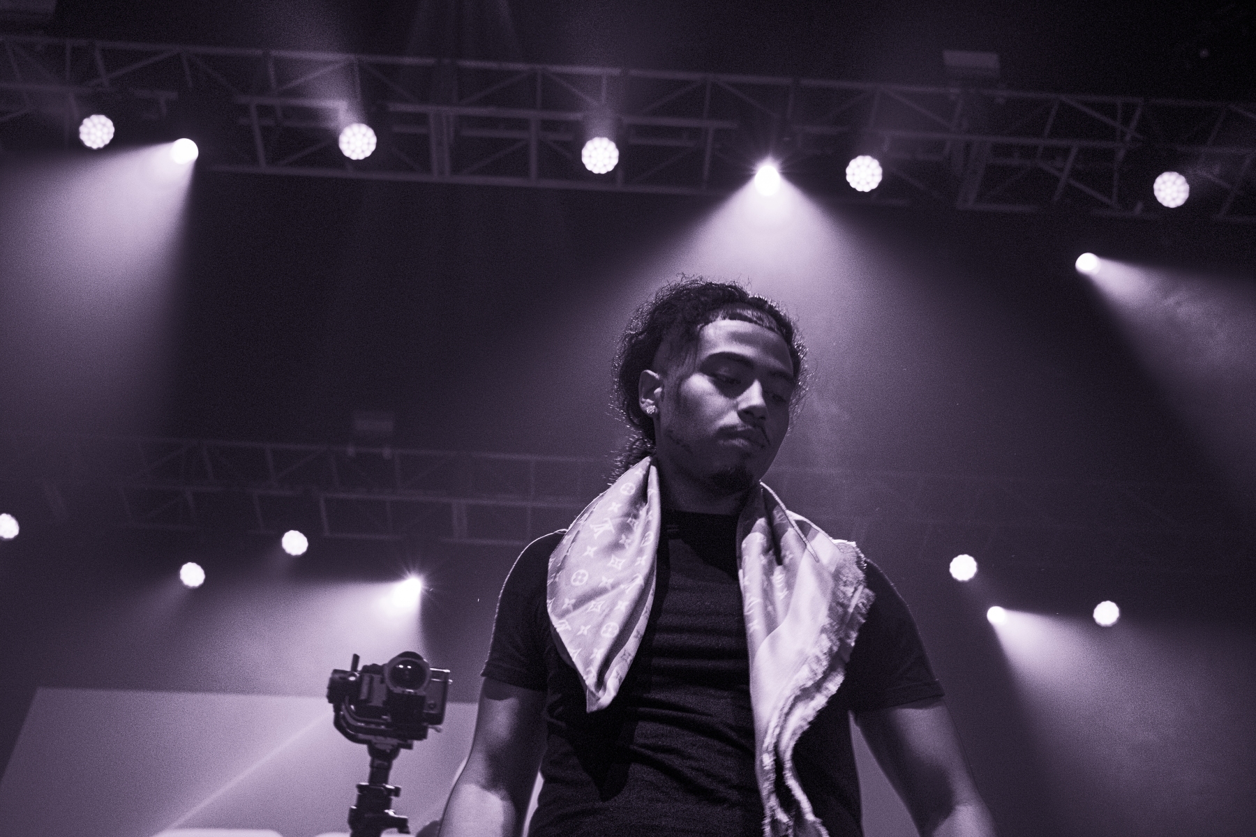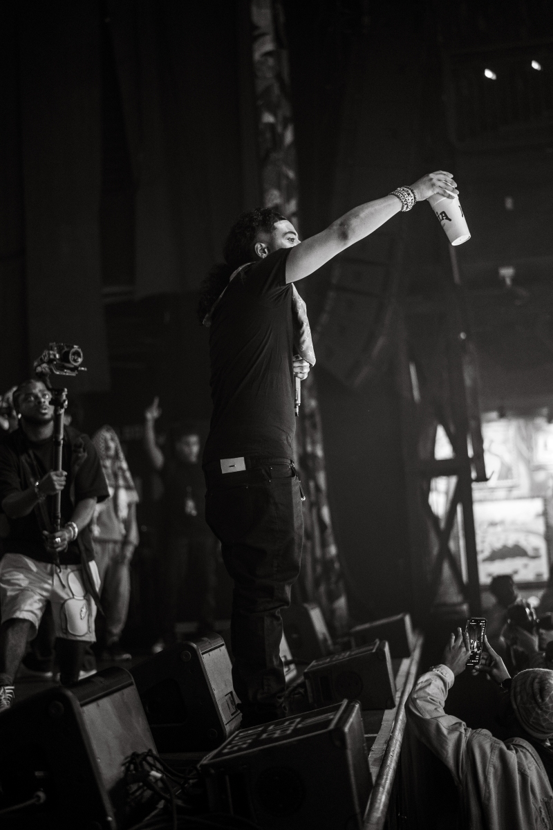 May skillfully balanced his setlist between his well-loved singles and tracks from his albums “Chase” and “No Recognition.” Each song flowed seamlessly into the next, maintaining a dynamic pace that kept the audience engaged from start to finish. Even tracks like “Wild Wild West” and May’s latest single “My Bad,” which are more about lean/purple drank imagery than any sort of conscious commentary, still resonated with the crowd. This highlights Aaron’s ability to adapt and capture the essence of both his past and present.