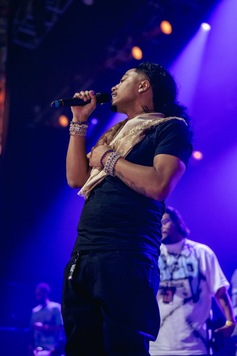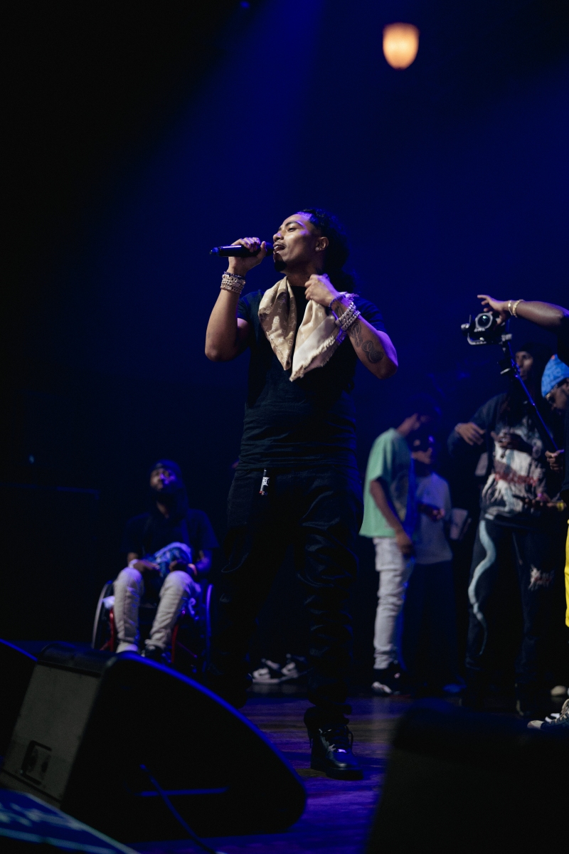 One of the night’s standout moments came from the performance of “Hidden Voices.” He had labelmates play guitar on this track, adding another soulful layer that gave the song life beyond a freestyle flow. The intricate guitar work complemented his vocals perfectly, showcasing a versatility that kept the audience engaged and wanting more (which they got on “I Ain’t Worried”).