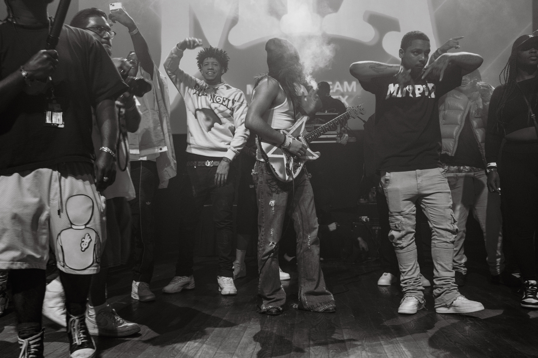 Adding to the intimate feel of the concert, May invited five lucky fans on stage to join him and his numerous friends onstage, creating a memorable experience for those selected. In particular, it was cool to see May show love to Salvadorian fans, as the gesture emphasized the intercommunal vibe of the evening (Race, Gender, Age, etc). Despite bringing different communities together, Aaron’s connection to Houston was evident. He frequently expressed his love for his hometown, the crowd predictably responding with roaring approval. This mutual affection was further solidified when he and his labelmates threw free merchandise into the audience at various points during the show. The energy peaked as fans scrambled to catch these shirts, each piece a token of the unforgettable night. To make it even more special, Aaron took the time to sign all the merch post-show, ensuring that everyone left with a personalized memento.