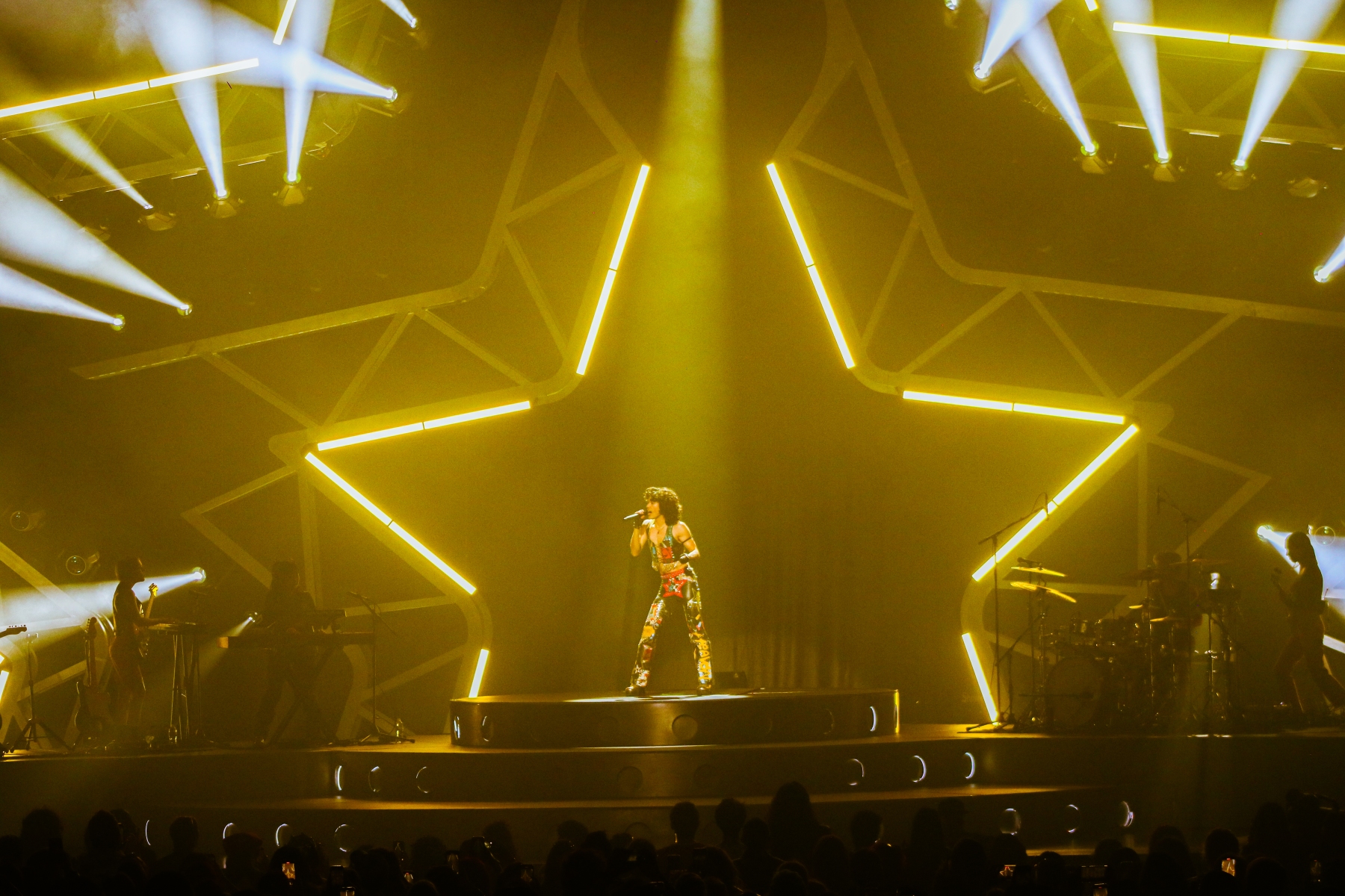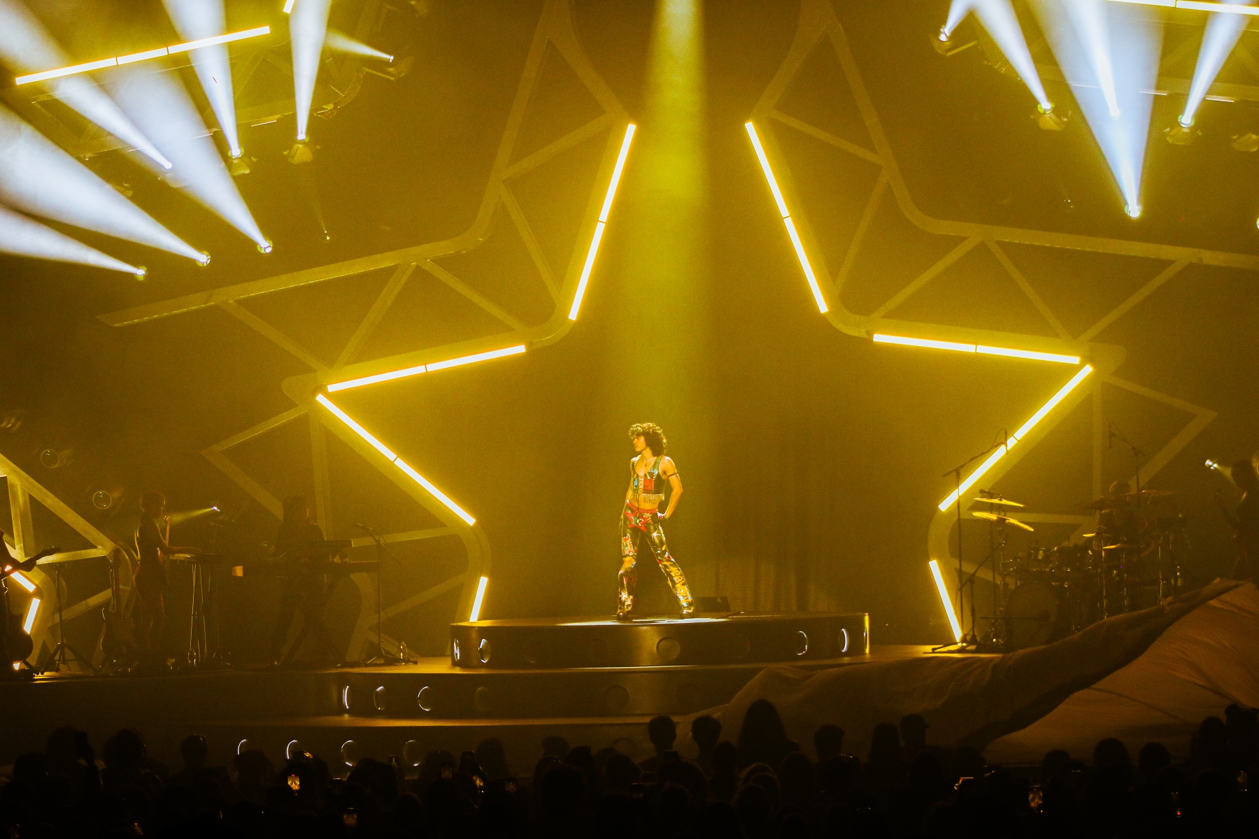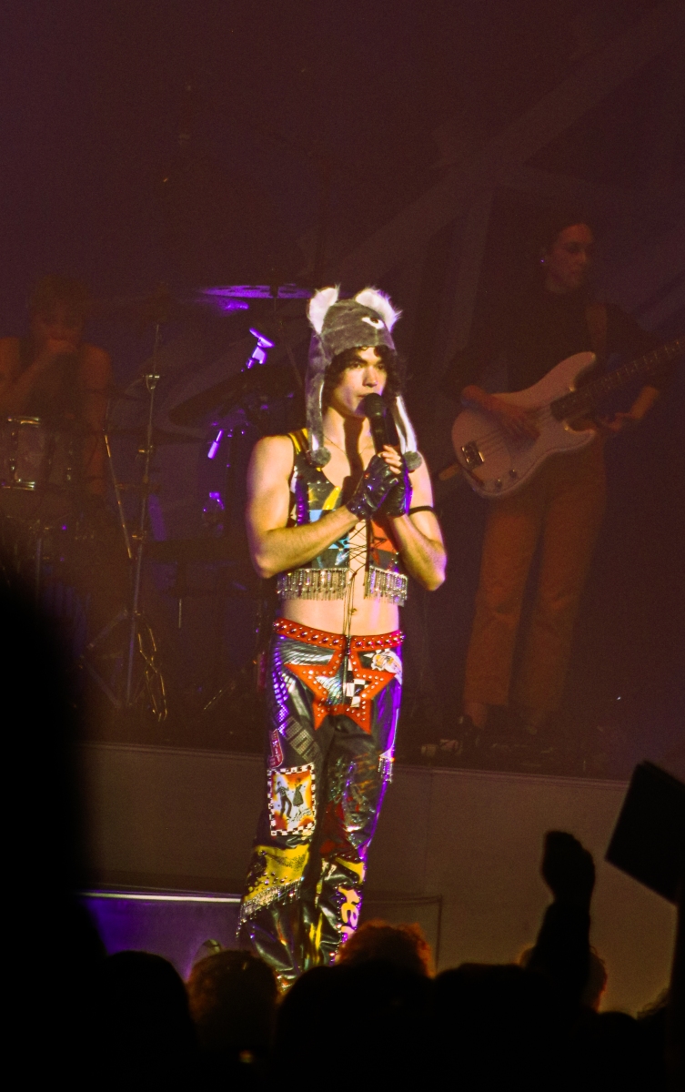 After the angel Maisie finished her set, it was time to prepare for the star himself, Conan Gray. Fans flooded to their seats in their custom outfits filled with black and gold stars. Some ran to get merch before it sold out and others went to seats immediately to not miss the opening number. Once it was time, a long dark curtain with his star logo dropped and it was the only thing to see before the lights went dark.
