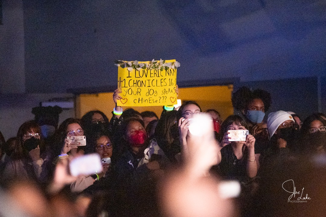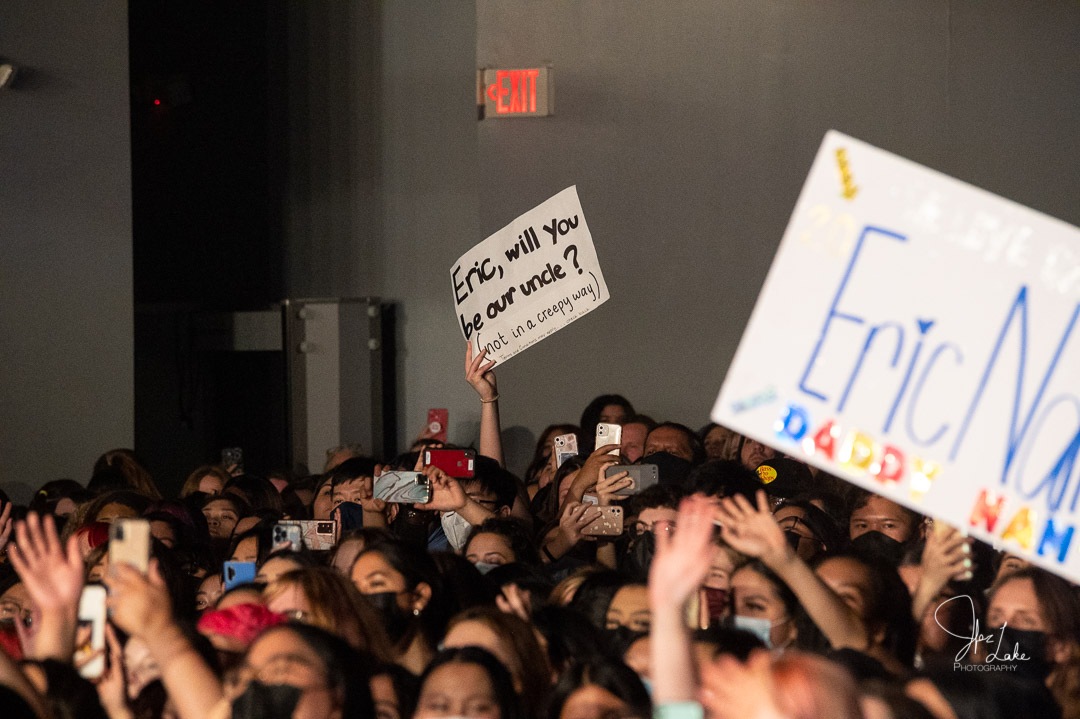 Eric Nam performed for a SCREAMING sold-out Warehouse Live on March 10, 2022. The Ballroom was as full as we’ve ever seen it and spilling over into The Studio. Fans held up signs with handwritten jokes and declarations of love for the Atlanta born K-Pop star.