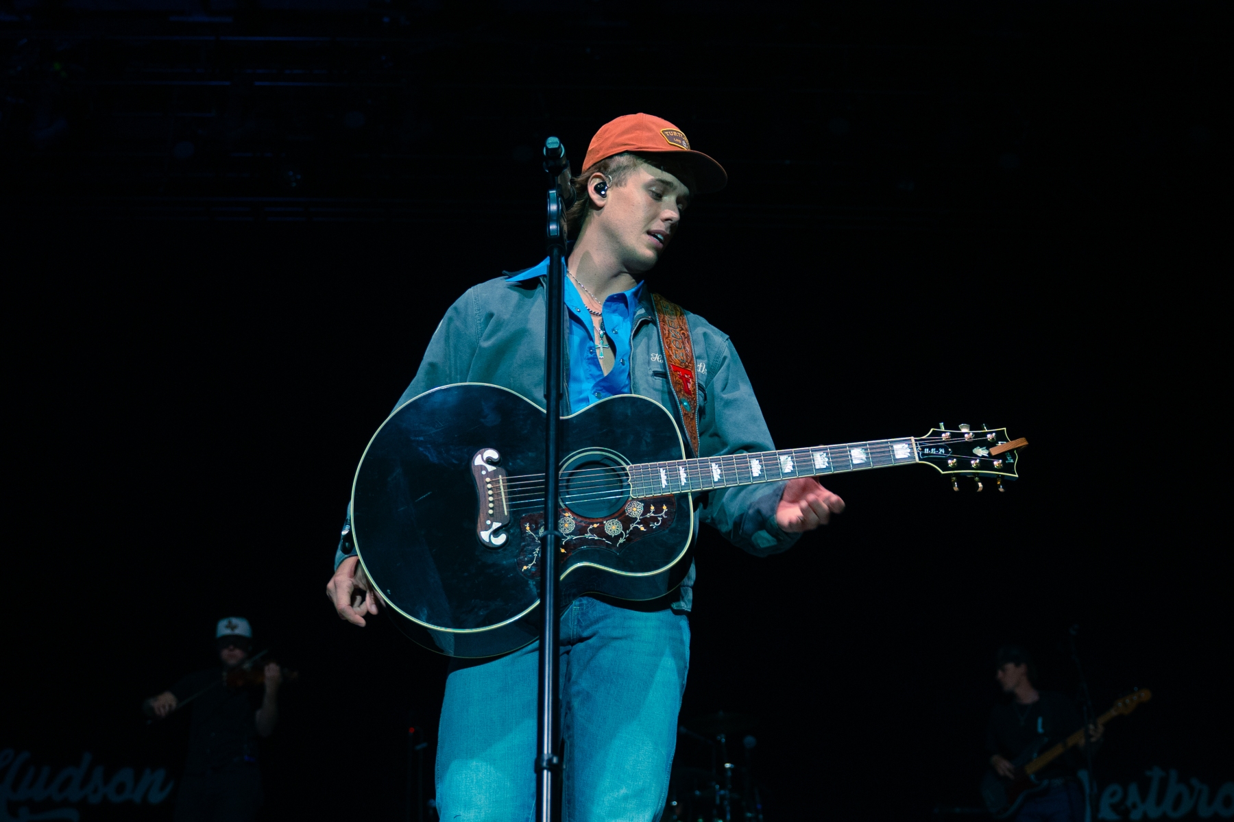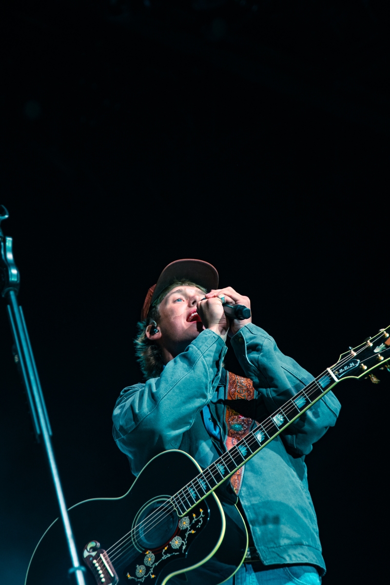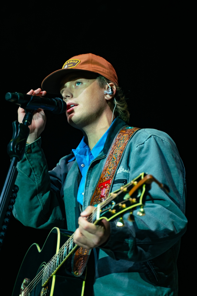 His band who consisted of members, Gage McNeely on guitar, Silas Clark on fiddle and vocals, Tack Hammer on bass, Tabor Weller on guitar, and Brenden Courtney on drums, wasn’t just background noise. They were a driving force of rhythm and groove, trading spots on stage and taking every chance to jam down front. Although, Hudson Westbrook is a solo artist, he gave his band a moment to really thrive and shine on stage as they curated the night.