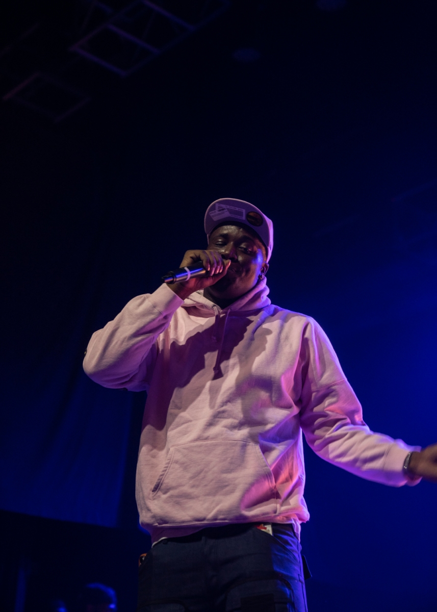 The Paper Route party really got jumping with Big Moochie Grape. Starting off with “In Dolph We Trust” and moving into “Uh Huh Uh Huh Uh Huh” shirtless Grape came down from the stage and could be seen flexing his diamonds front row with the crowd. It was at the start of “iLLUMINATi BUSINESS” Grape was now in the pit performing as DJ Rock Steddy pleaded with the Memphis rapper “They wanna see you Grape!” Grape was not having it as he continued to perform “I’m The One” and one more unreleased track Promoting his upcoming May 27th album “East Haiti Baby”.