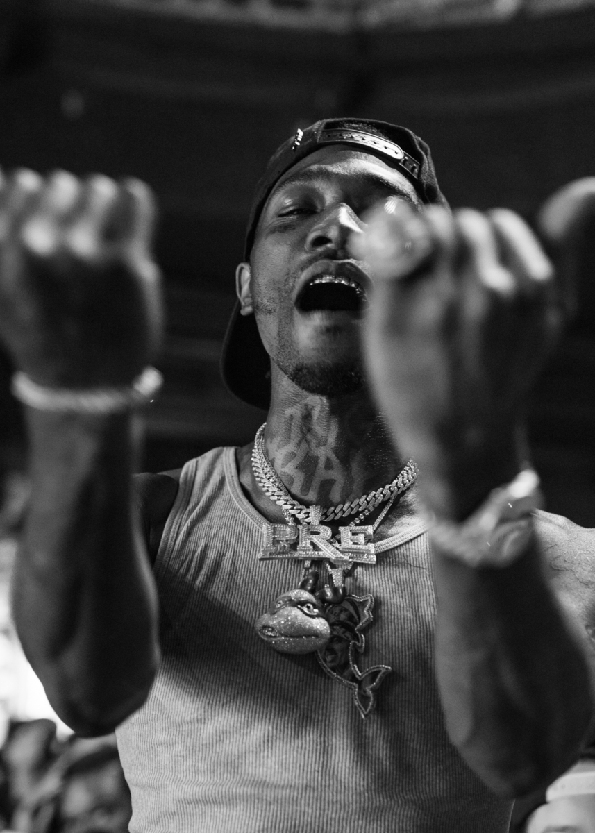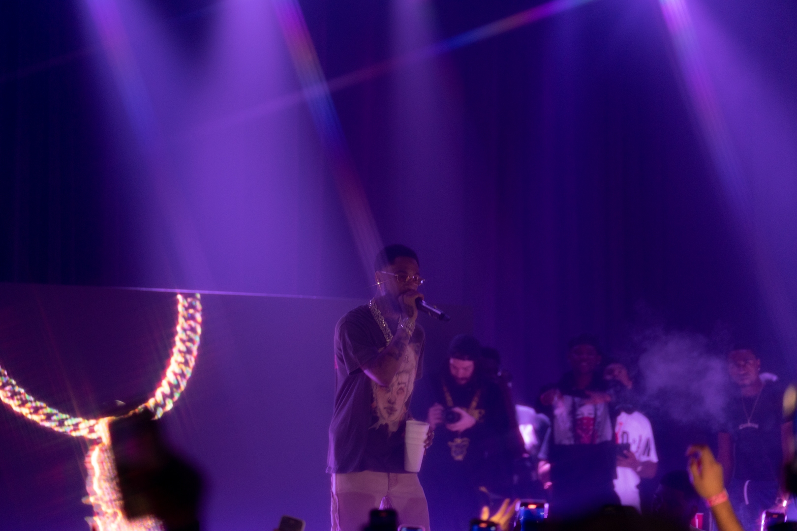 With a fully pumped crowd, DJ Rock Steddy announces that before Glock comes out, he wants to hear his favorite song first. Chief Keef’s “Faneto” starts playing and the crowd goes crazy shouting the lyrics to the Chicago-based rapper’s song. Around 10:30 the beginning of “Gang shit, no lame shit” starts and the crowd comes alive with excitement already shouting every word. Glock comes out with the yellow lit stage with nothing but smiles. “We about to turn the F*** up right now, I love coming out here man..” yells as he tells the DJ to drop the next track “I’m Just Sayin”. Bouncing with the crowd into “Something about me” you can tell that Glock still loves to perform even taking a second to ask the crowd “If you like making money, like I like making money, say Hell yeah!”. Performing both old and new songs Glock brings the show to and end with the rest of the P.R.E. crew with Young Dolph’s “Get Paid”.