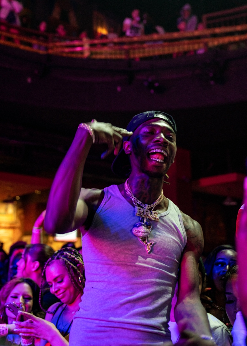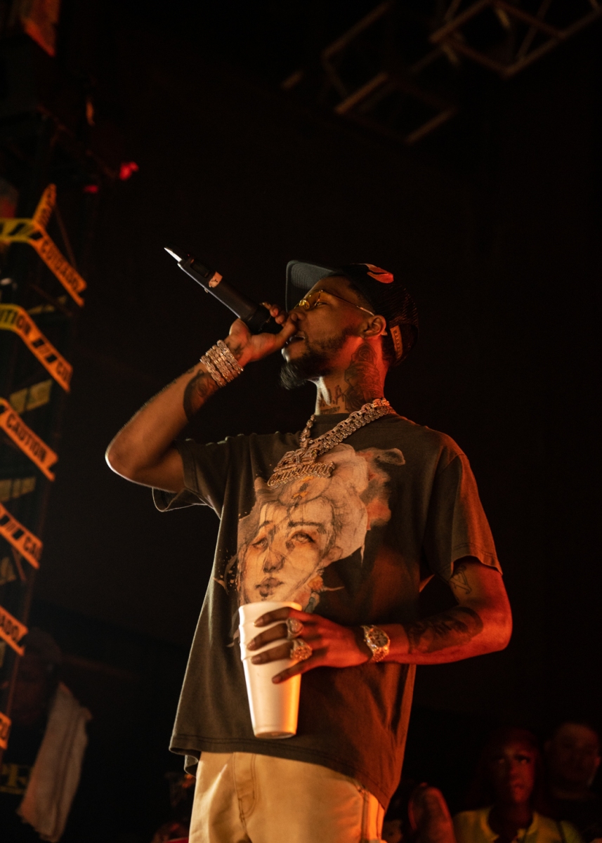 Key Glock is no stranger to Houston’s House of Blues but May 13 was his first time back since the passing of the late Young Dolph back in November of 2021. Being a cousin-by-marriage to Dolph, the South Memphis rapper continues to make a name for himself and his Paper Route Empire counter parts. There was plenty of dedication to fallen self-proclaimed “King of Memphis” as both the crowd and performers sang along anytime Young Dolph came on that night. No need for smoke machines either as the crowd supplied the smoke for the Yellow tape covered stage in preparation for the last stop in Texas for Key Glocks Yellow Tape 2 tour.