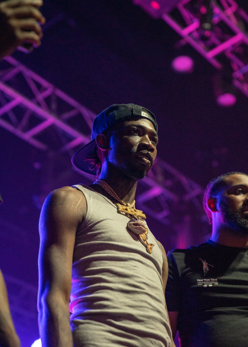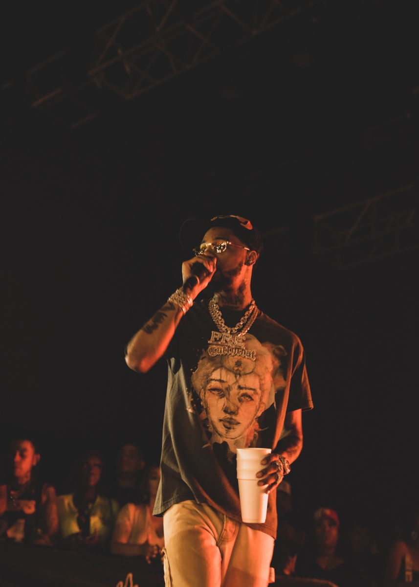 At this point of the set, it was already 15 minutes past Key Glocks stage time as the stage filled up with multiple residents of the Paper Route Empire label like Big Moochie Grape and Bigg Uncc. DJ Rock Steddy continued the party going with playing multiple Young Dolph songs up until Bigg Uncc grabbed a mic and started to perform “Beat it”. Uncc jumped down from the stage and asked the DJ to pause the track and start it over. He continued to perform in the crowd until ending his set on stage with his latest single “Letta to flippa” another dedication song to the late Dolph.
