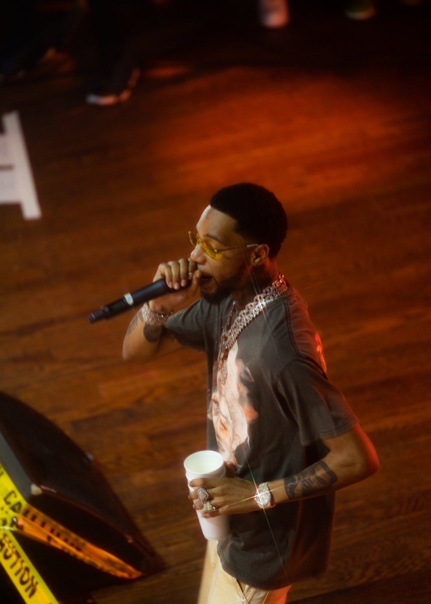 Kenny Muney hit the stage with “Ashtray” another track from the “Paper Route iLLUMINATi” album. Up next from Muney was “Change Up” from his latest album “Time Is Muney”. Muney ended his set by performing “Role Model” his dedication song from the P.R.E. collaborative album “Long Live Young Dolph”.