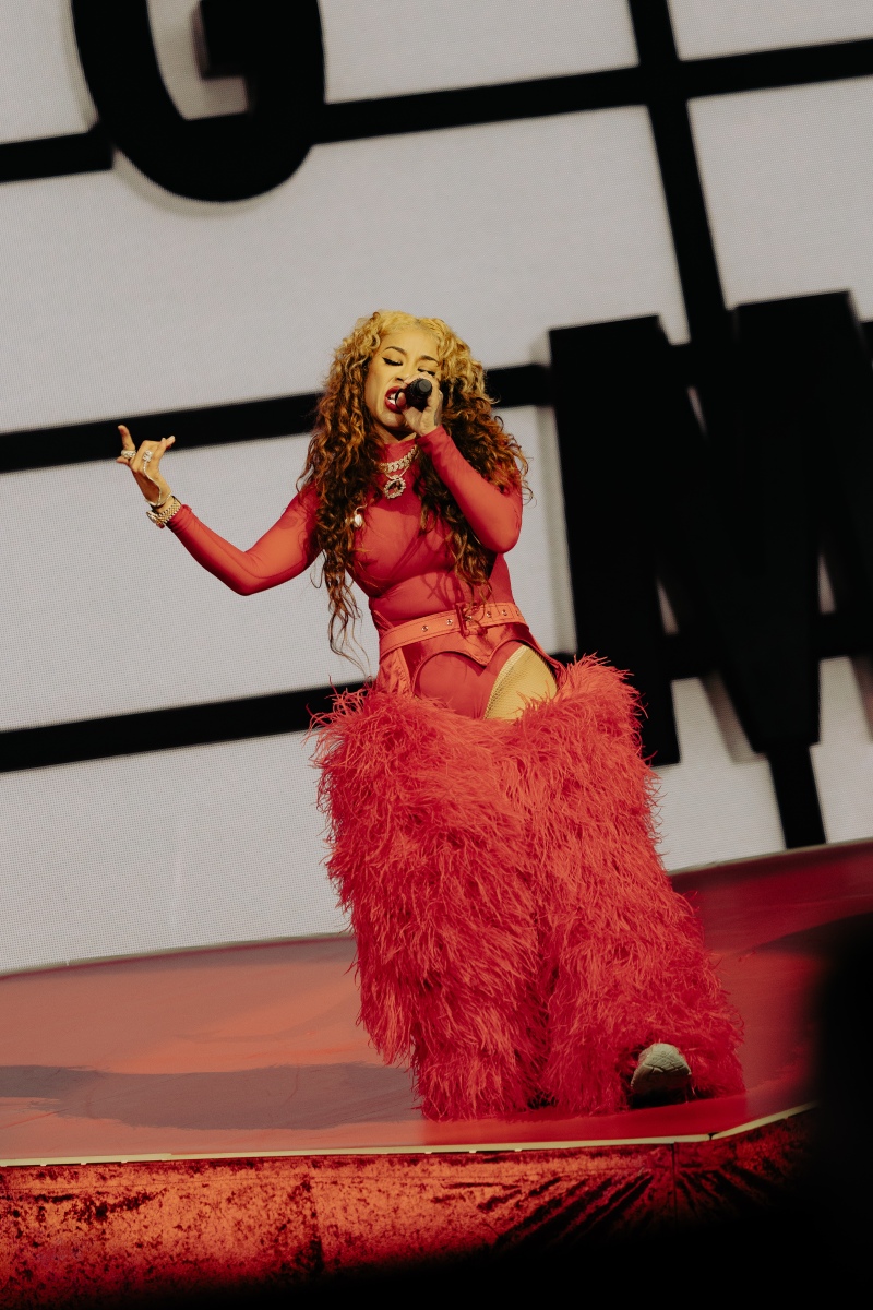 From the second she appeared on stage bathed in red light, backed by a live band and wrapped in a bright red fit—the crowd erupted. You could feel the nostalgia buzzing in the air as she launched into the heart shaped stage. Phones flew up, voices rose, and tears. Keyshia performed in a way that saying she connected would be an understatement.