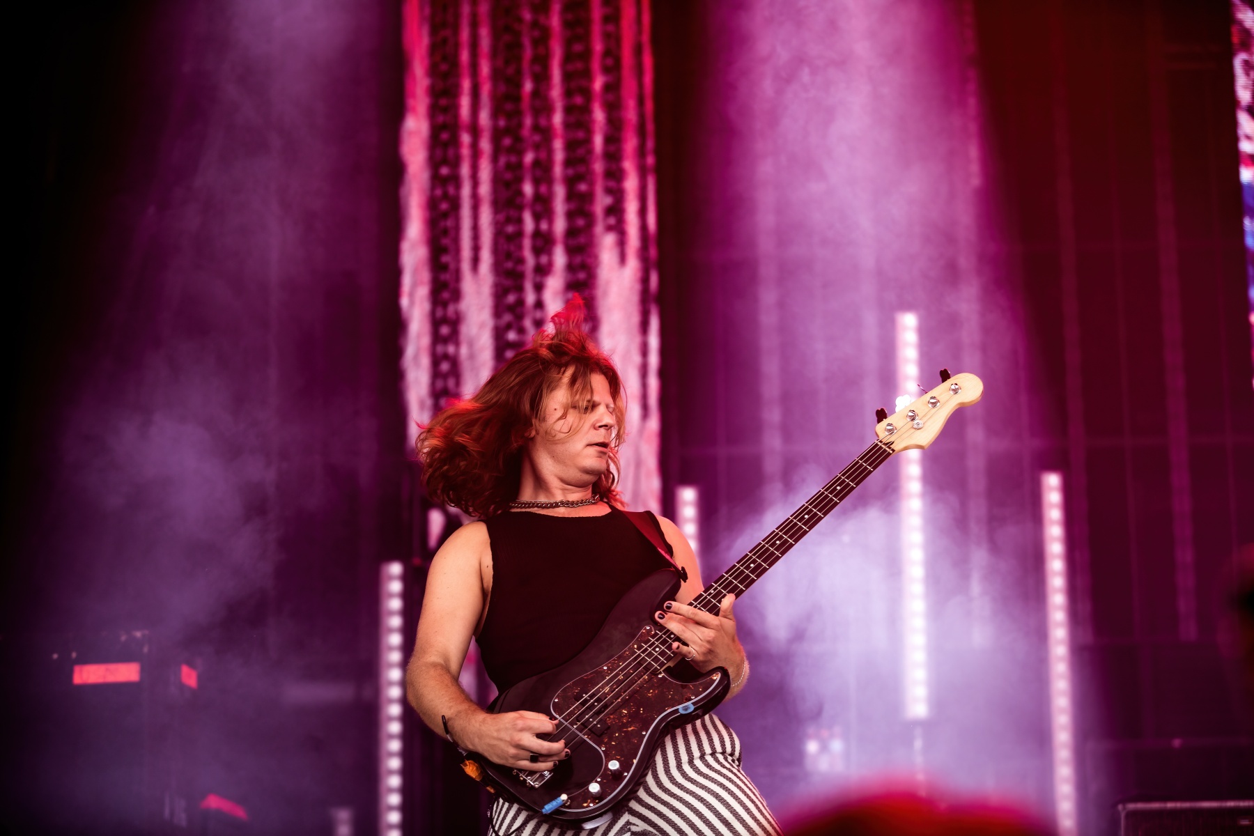 Next up was Las Vegas-Brother formed band Palaye Royale, and woahhhhhhh did these guys put on a show. Starting off with “Nightmares” they quickly got the crowd on their feet with thundering upbeat tunes. The first thing I thought to myself was “Damn these guys have style,” with gothic yet 70’s fashion, they were so much fun to look at. Palaye Royale are so close to their fans too, they truly want them to have the time of their lives and connect with them in so many ways even while being onstage. The band then covered The White Stripes “Seven Nation Army” which obviously made every single attendee scream at the top of their lungs. Seriously, there wasn’t one human out there that wasn’t singing or at least nodding their heads to the song. Overall, Palaye Royale are some crazy talented individuals and were an absolute blast to watch.