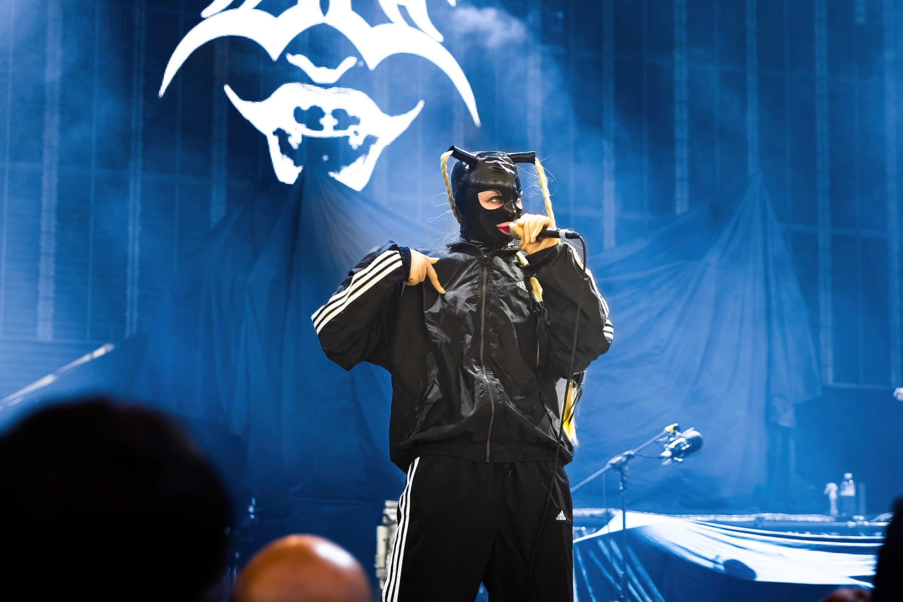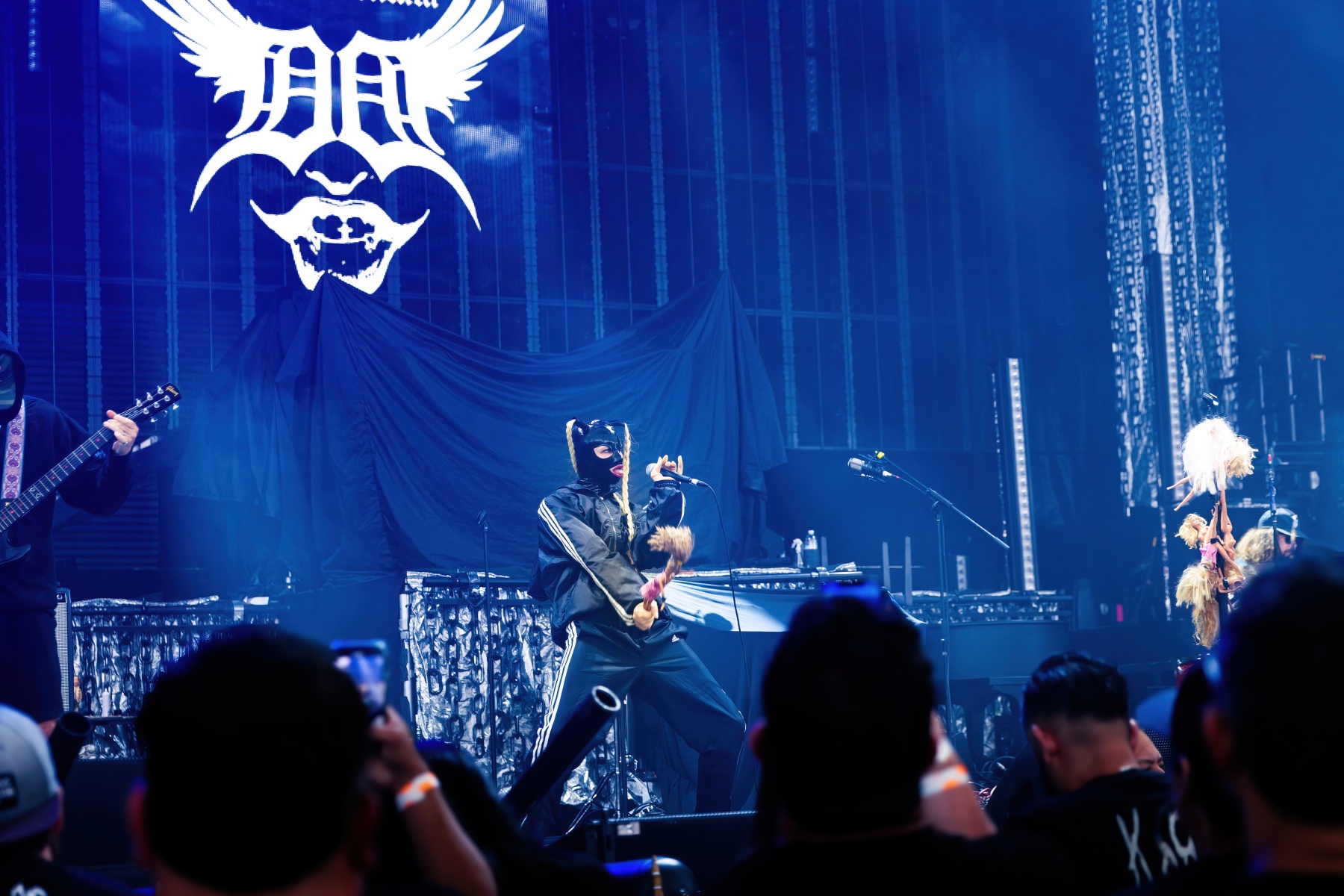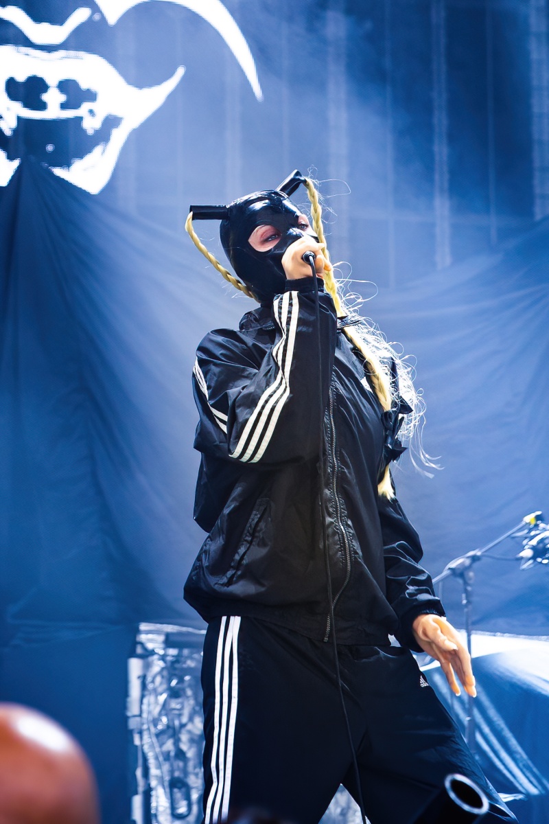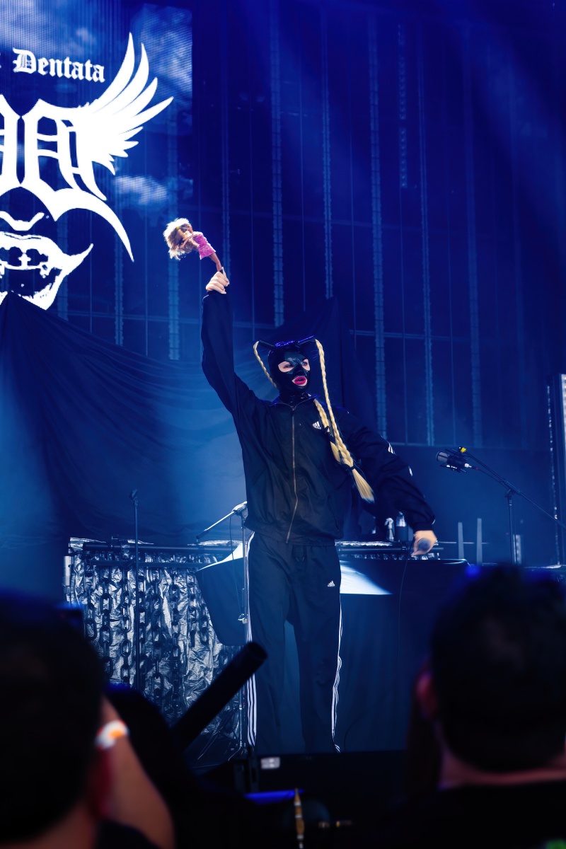 Canadian-born Dana Denata started the afternoon with an interesting set. I’ve never listened or honestly heard of her at all until then and it took a bit to finally get warmed up to her. With A black tracksuit, latex face mask, and surrounded by Barbie dolls, Dana brought a kickstart to the night with her mixture of unapologetically sexual lyrics and hip-hop but also a rock-n-roll vibe creation. It was a pretty captivating set that clearly got everyone’s attention.