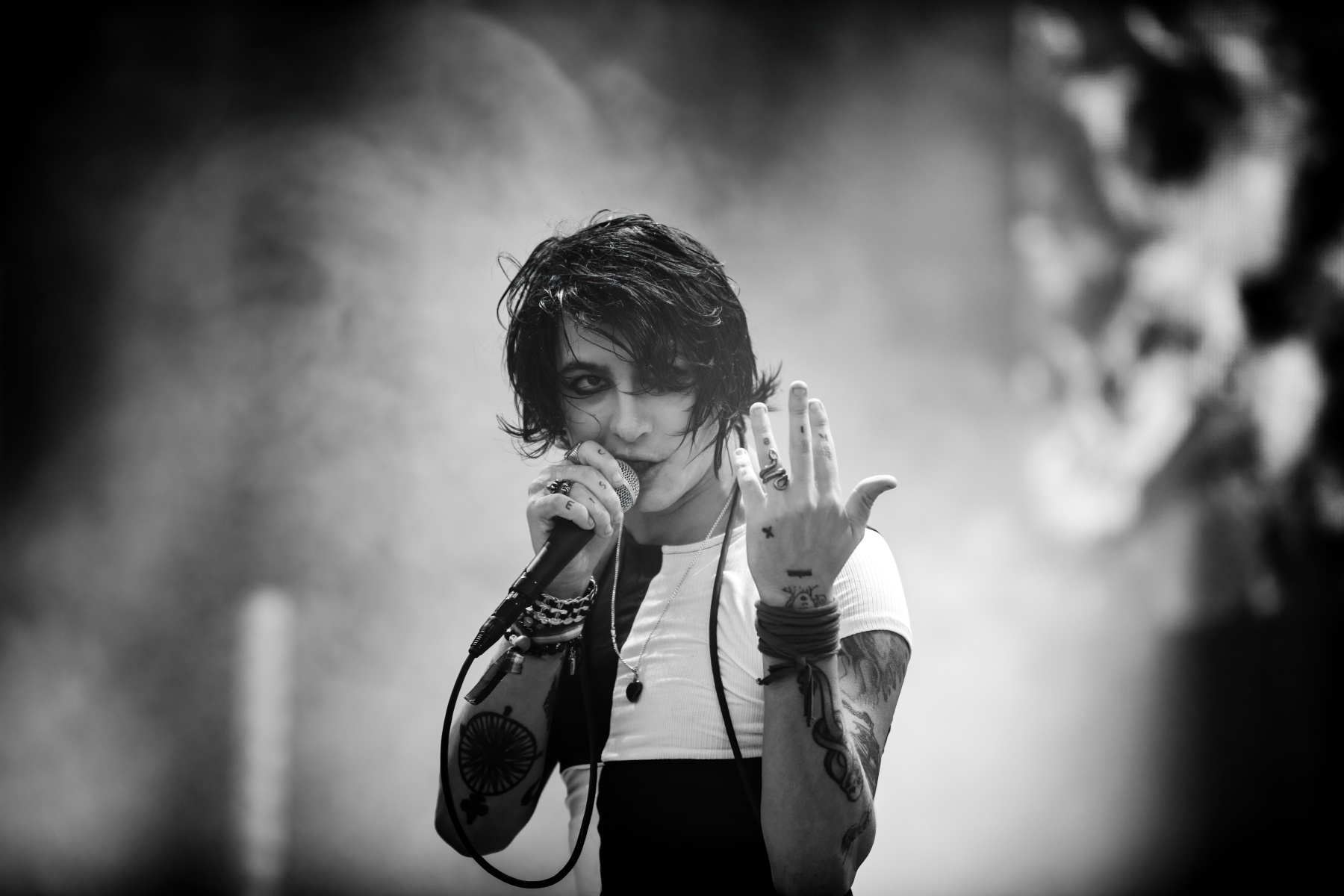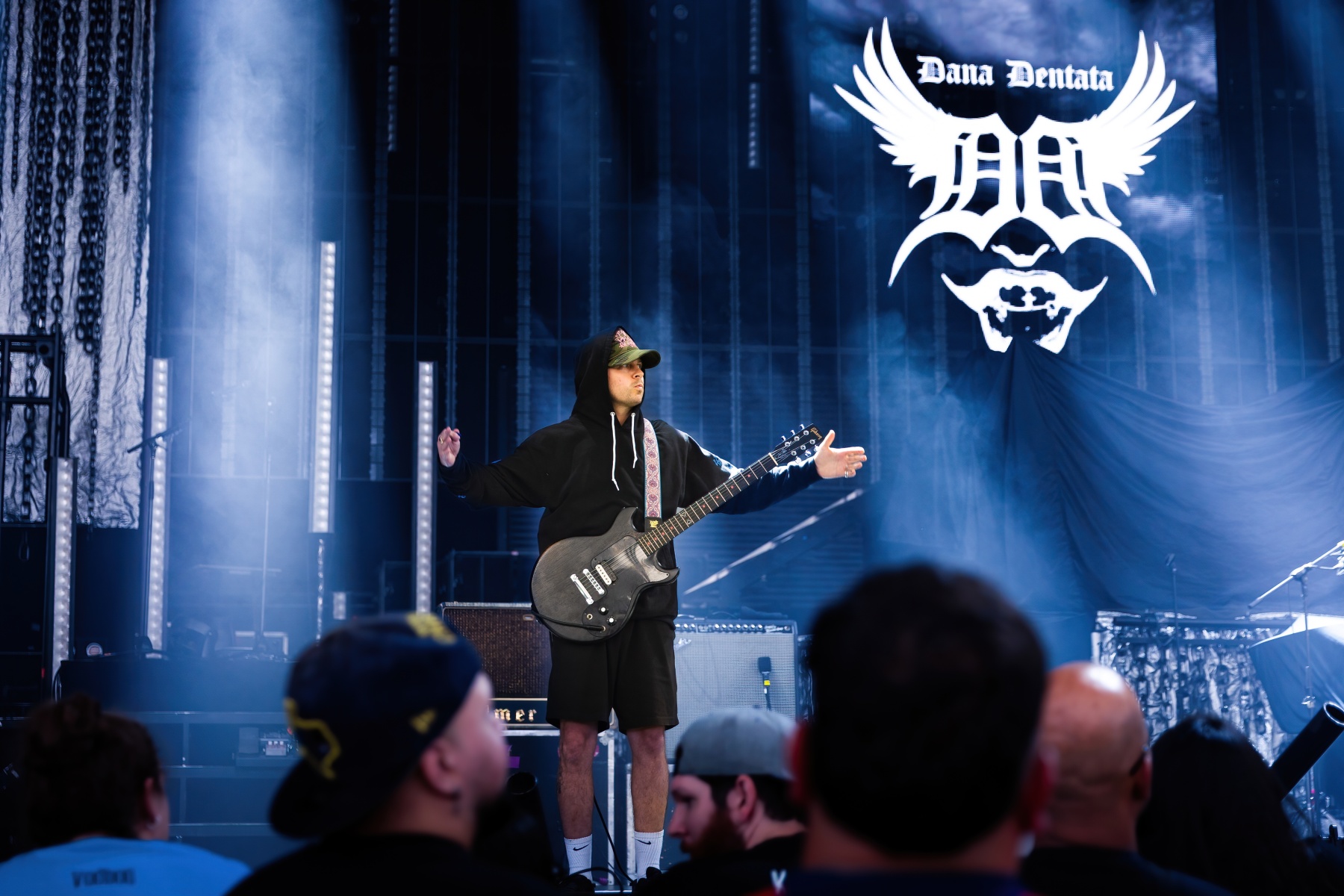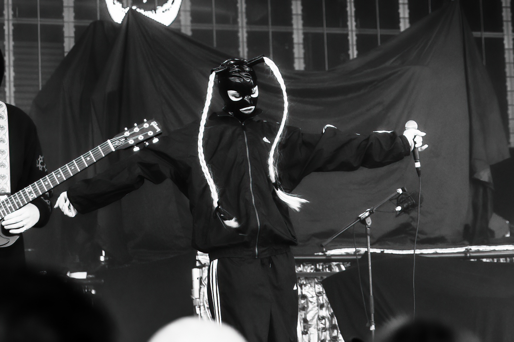 Canadian-born Dana Denata started the afternoon with an interesting set. I’ve never listened or honestly heard of her at all until then and it took a bit to finally get warmed up to her. With A black tracksuit, latex face mask, and surrounded by Barbie dolls, Dana brought a kickstart to the night with her mixture of unapologetically sexual lyrics and hip-hop but also a rock-n-roll vibe creation. It was a pretty captivating set that clearly got everyone’s attention.