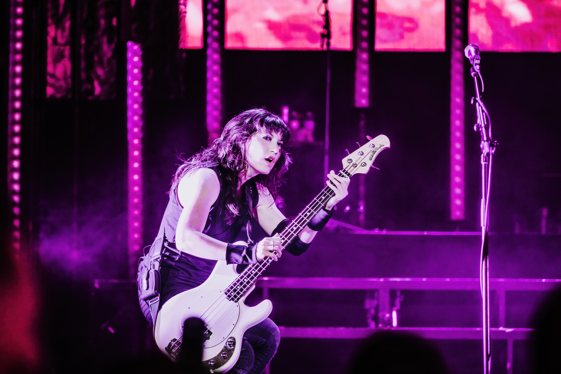 The atmosphere really started to get into motion once goth-rock OG Evanescence hit the stage. This was the set I was most excited for and have literally been anticipating for months, and the time was finally here. The stage went black, the fans started screaming, and next thing you knew the sweet voice of Amy Lee surrounded the Pavilion with opening song “Broken Pieces Shine” from their latest album The Bitter Truth. The stage was lit with deep purple and blue colors and it was just absolutely gorgeous. As a photographer, there wasn’t an artist I was more excited to capture than Amy Lee. Her sense of style and appearance is just as mesmerizing as her music. To say I was fan-girling is definitely an understatement. I was smiling from ear to ear running around shooting and singing along to their songs, it was quite the task!