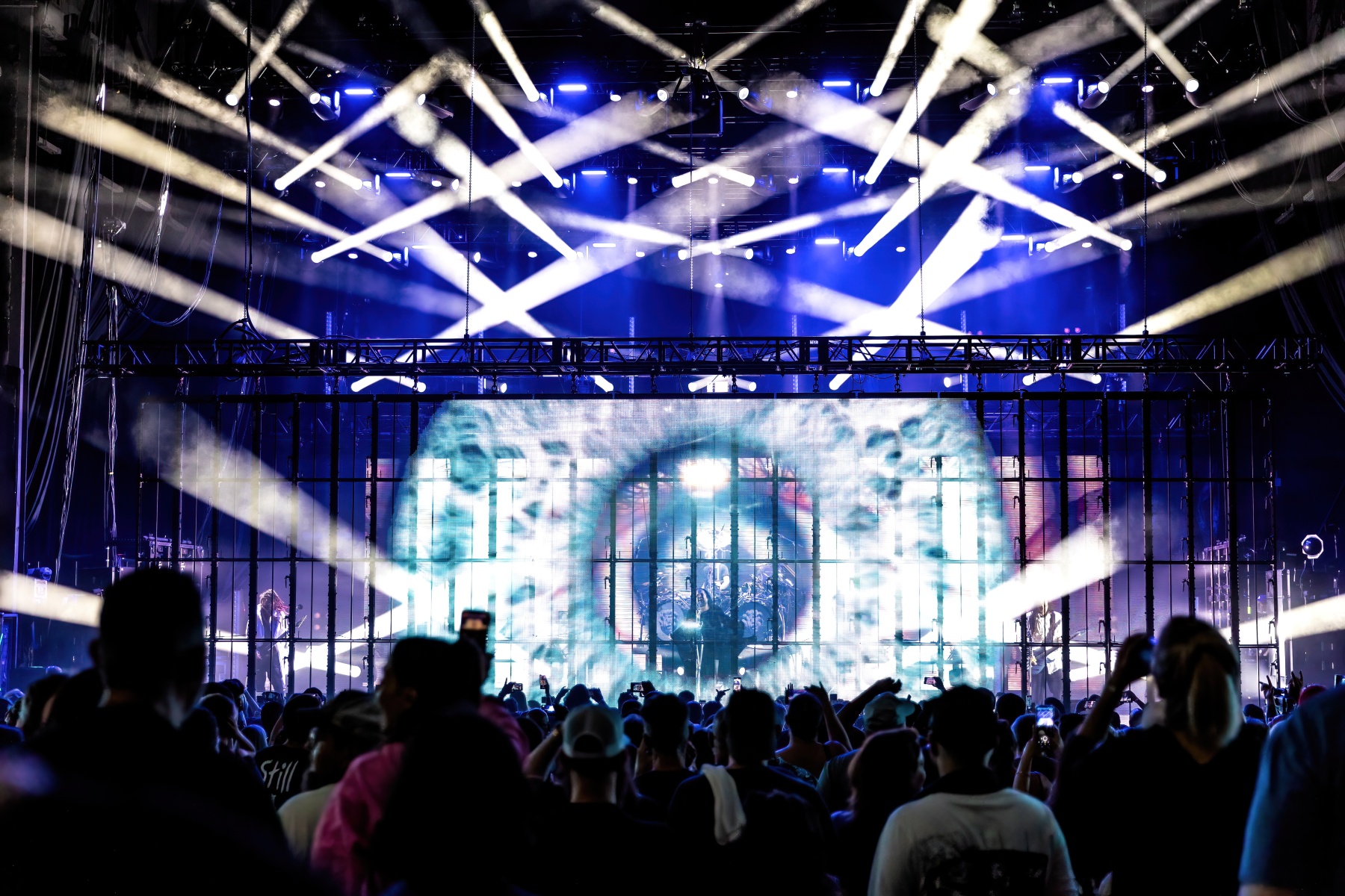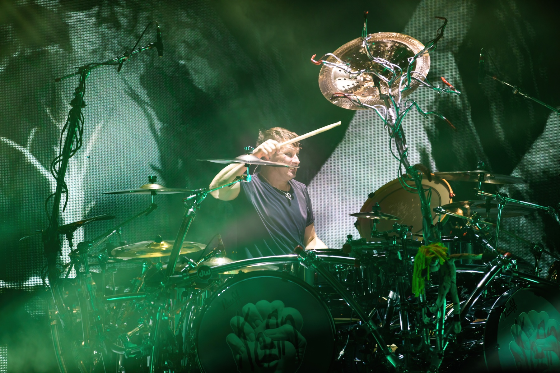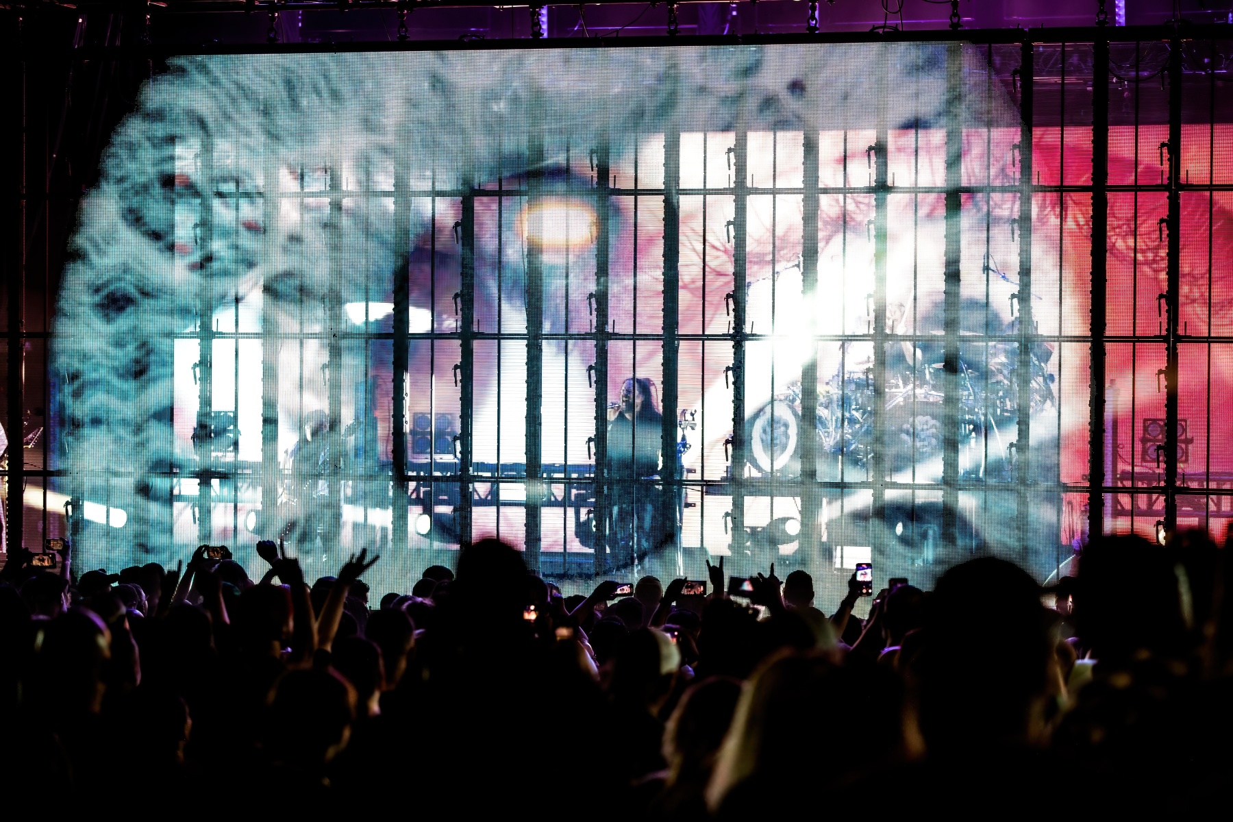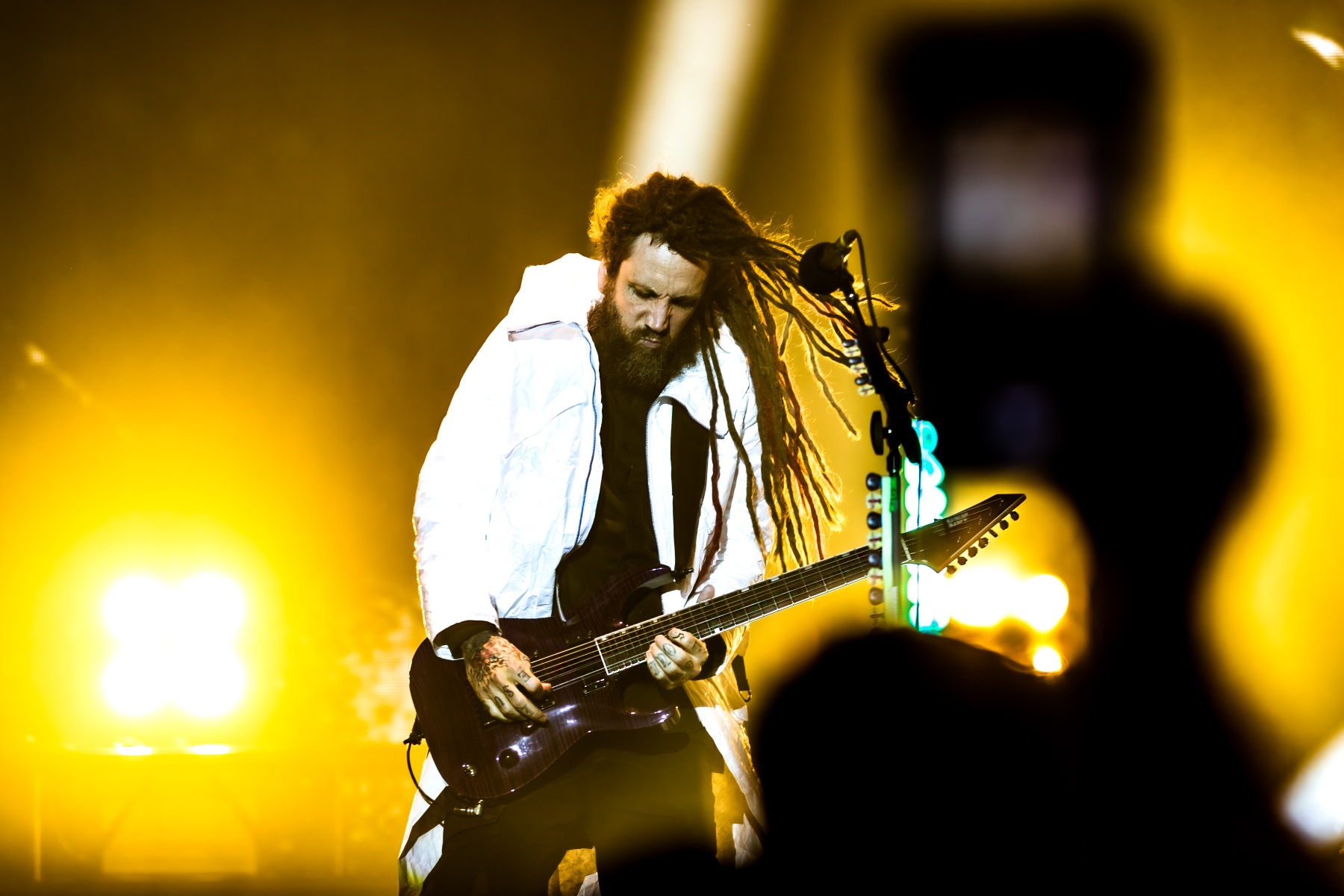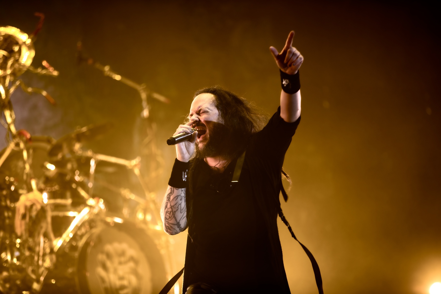 Finally, to end the already badass night, Korn was up and ready to tear your faces off. Starting their set off behind a metal, cage-like screen, “Rotting in Vain” began to blast through everyone’s eardrums and it was really time to rock out. Everyone swarmed together like a pack of bees and instantly started jumping along with the music. Joining Korn on Bass, Ra Diaz was noticeably stoked to be up on stage and without a doubt filled the shoes for the absent Fieldy. After “A.D.I.D.A.S,” The visually active metal cage-screen finally lifted, showcasing the band and its stage, that was the exact moment the crowd went completely wild. Jumps after jumps, moshes after moshes, Korn was alive and bringing out the craziness in us all. Still embracing their nu-metal roots, each song was sharp and intense and really just made you fall back in love with them again. Once you thought the night couldn’t be any more epic, Amy Lee then surprised everyone and came out to join Korn in a legendary jam-sesh to “Freak On A Leash,” making a brilliant end to the show.