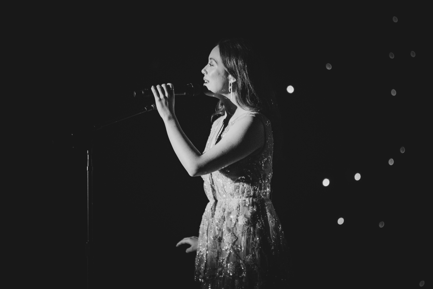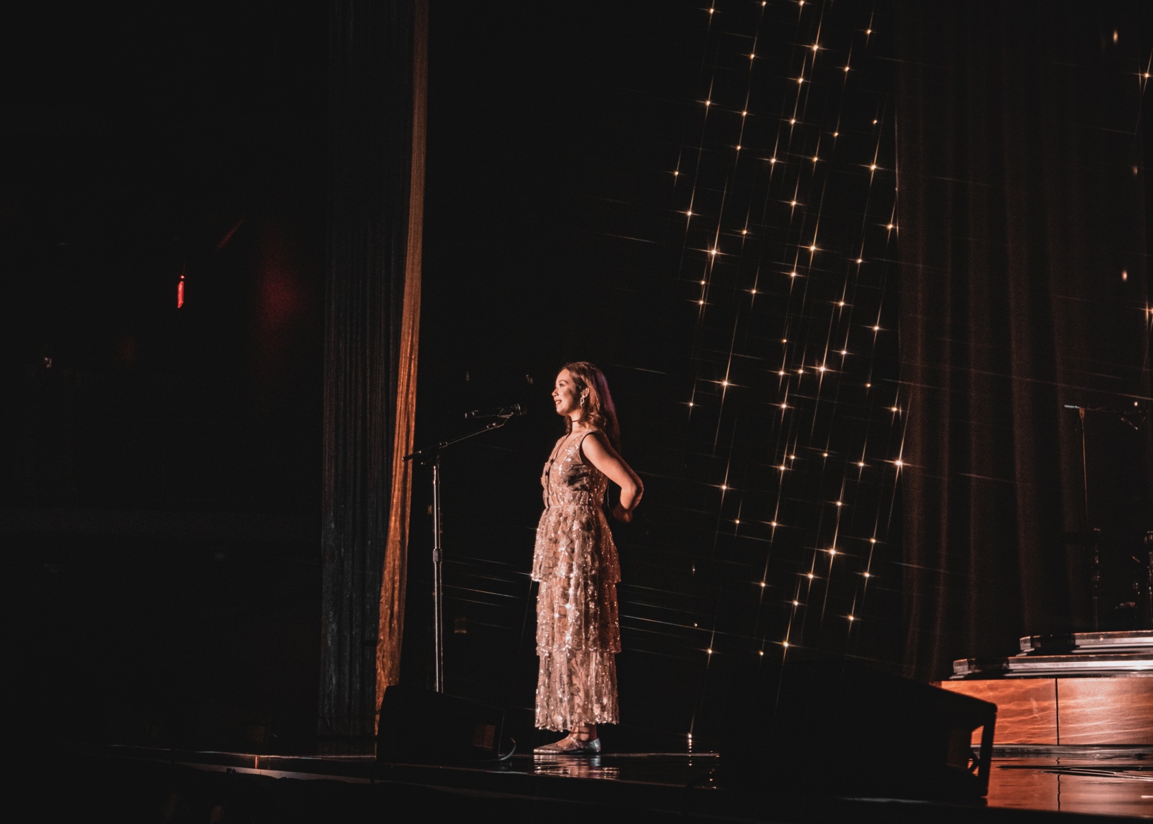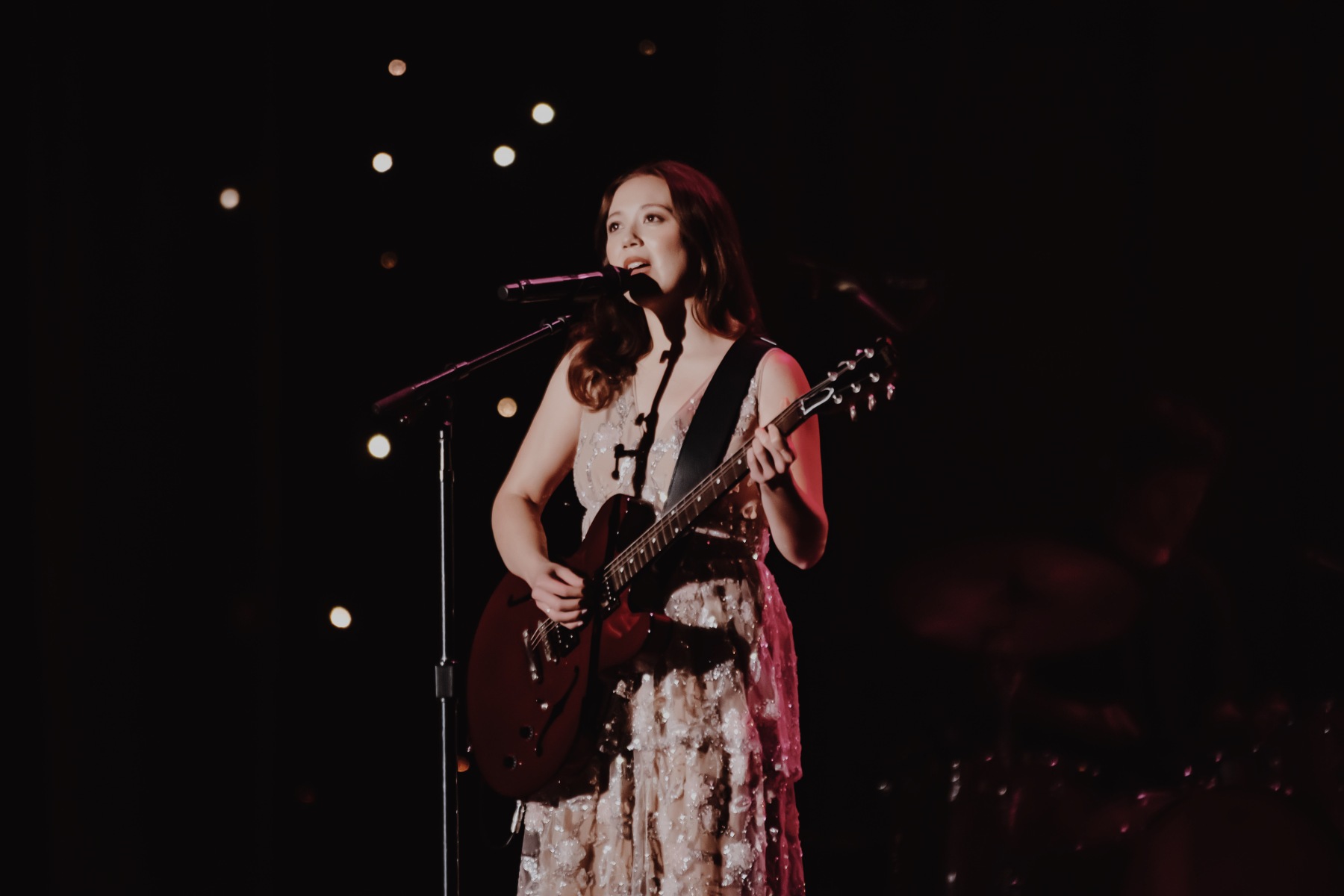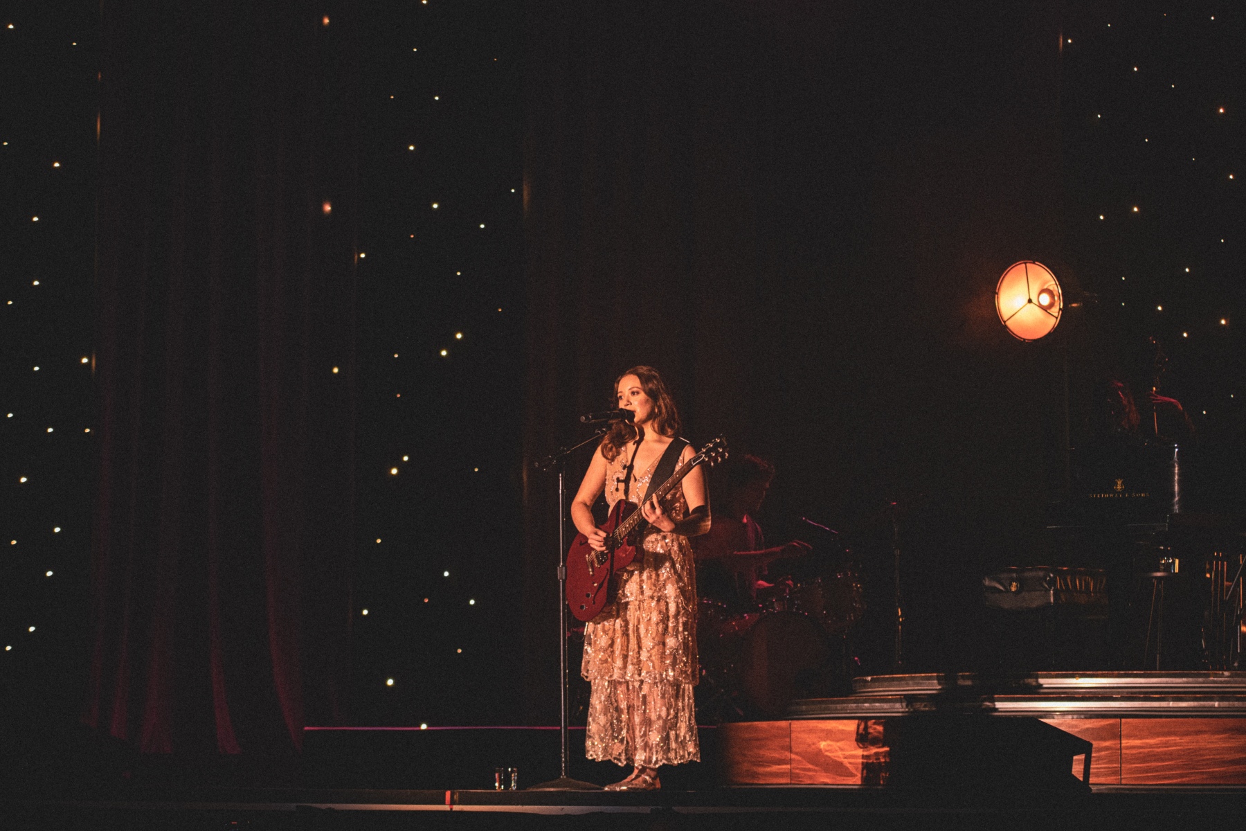 After ‘Valentine’, she does a 180 and sings ‘Second Best’, which is an incredibly heart-breaking song about being in love with someone who clearly loves their ex more. She moves onto ‘Dreamer’, which is a more uplifting and playful song about romanticizing her life while giving up on romance. During this song, she dances around stage playfully; it was adorable and super endearing. This song, in particular, reminded me of old Jazz standards and gave me Ella Fitzgerald vibes as well. After finishing up her song ‘Falling Behind’, she introduces her band: Maverick on drums, Dario on bass, Heather on keys, Ryland on multiple instruments, and Michelle leading the string quartet. Her band and the quartet that played with her were incredible; each time they vamped or had solos to fill in time, it was breathtaking.