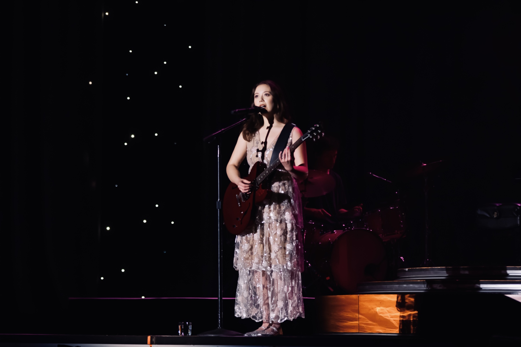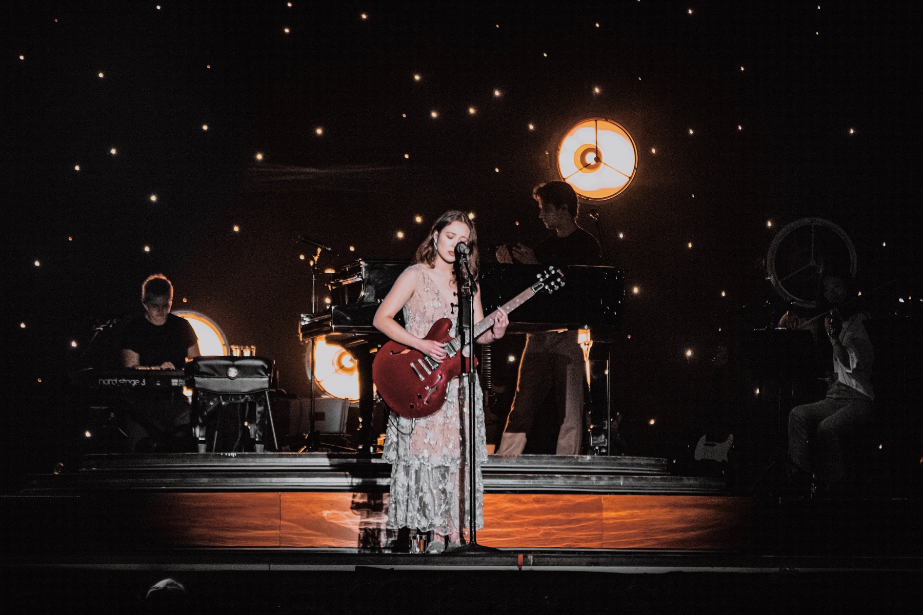 During both ‘Beautiful Stranger’ and the famous jazz standard ‘I Wish You Love’, she plays her cello alongside the band. She played beautifully, and her technique really showcased her classical roots. The next few songs, ‘Promise’, ‘Like The Movies’, and ‘Nocturne’, she shows off her piano skills as well. It’s so admirable watching her switch from instrument to instrument throughout her set, especially with how rare it is for an artist to be this fluent on so many instruments.