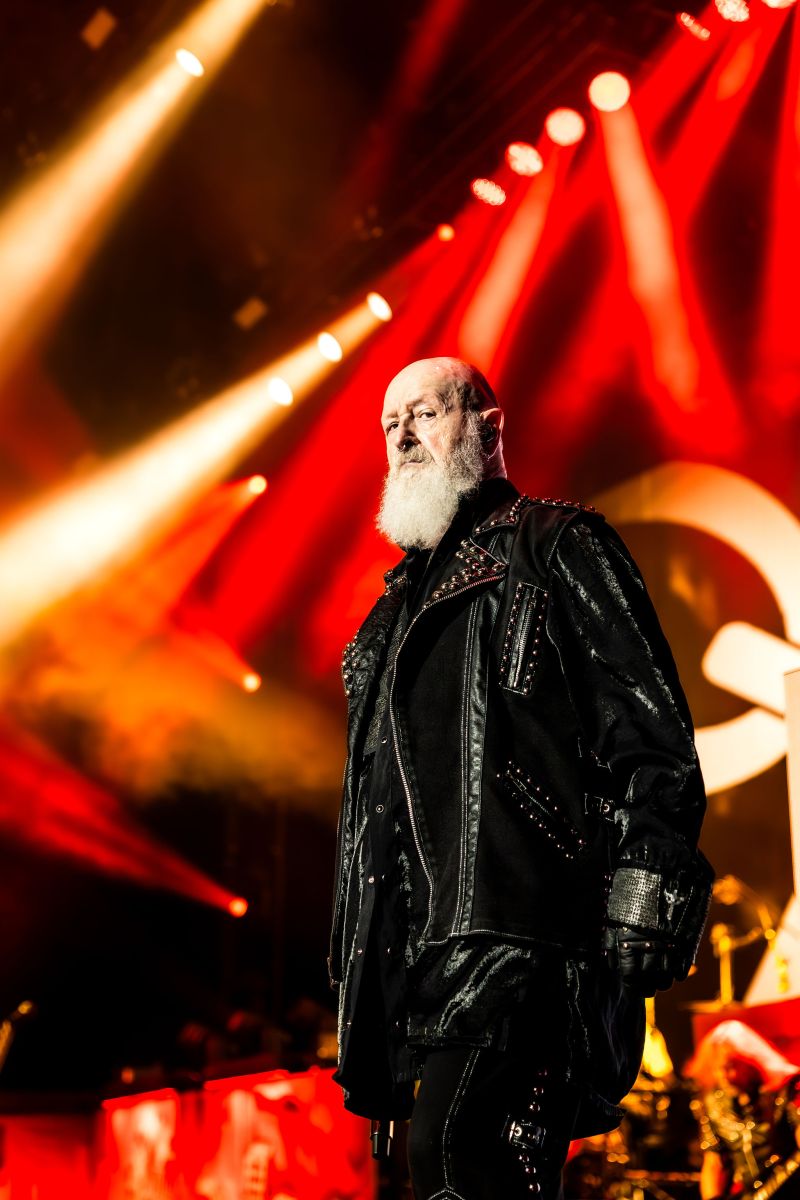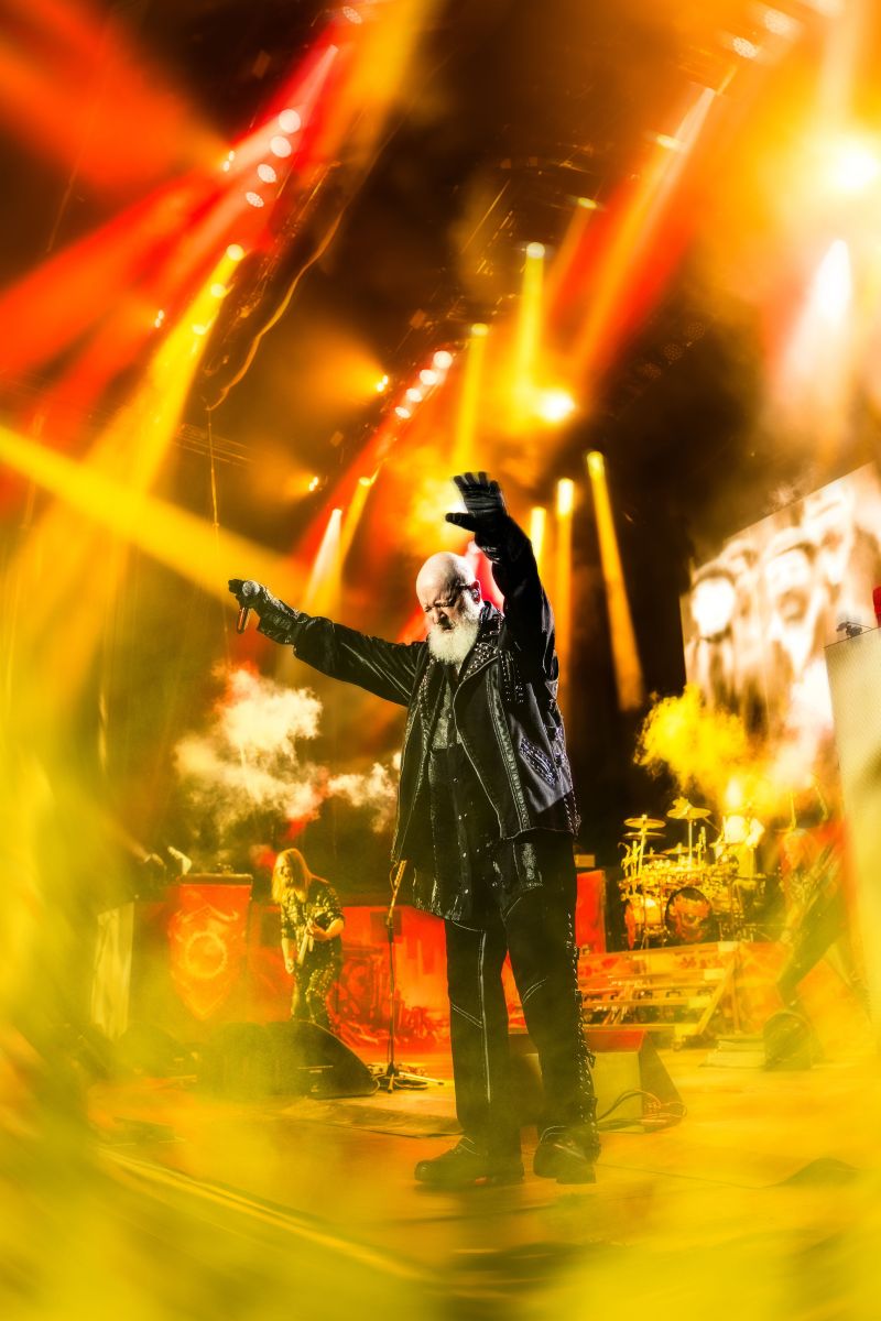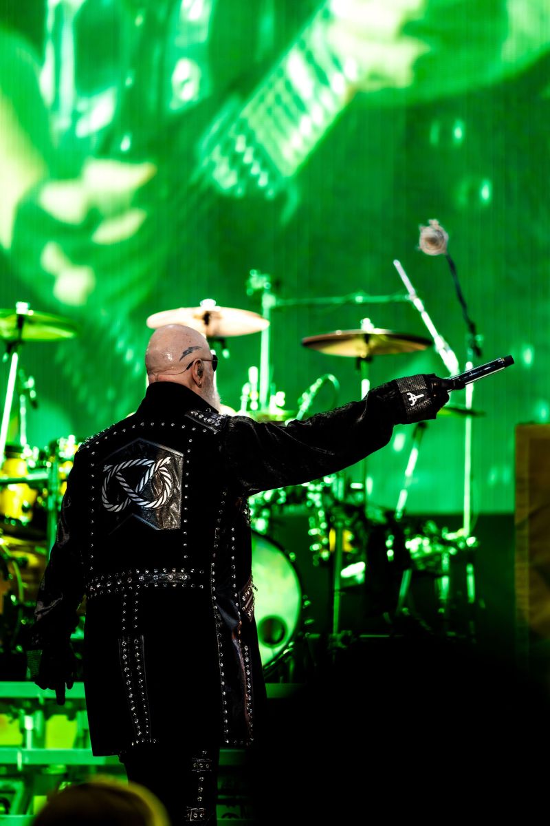 Judas Priest kicked off the night, and honestly, I was blown away. I still can’t wrap my head around the fact that Rob Halford is seventy-four…there’s just no way. Whatever’s in his coffee, I need some. Standing there photographing such a legendary figure felt surreal honestly… moments like that remind me why I love what I do. Everything about their set was flawless as well…the sound, the lighting, the visuals, even the outfits were on point. The band celebrated the 35th anniversary of Painkiller, opening strong with “All Guns Blazing” and rolling through a powerhouse set of fan favorites like “You’ve Got Another Thing Coming,” “Breaking the Law,” “Night Crawler,” and “Gates of Hell.” One of the most emotional moments came during “Giants in the Sky,” a heartfelt tribute to rock legends we’ve lost…Eddie Van Halen, Lemmy, Freddie Mercury, and, to my surprise, the incredible Jill Janus of Huntress. Seeing her name up there hit hard; she deserves to be remembered more. The tribute closed with a screen filled with Ozzy’s face, and not going to lie, it got me teary-eyed. The energy stayed high all night…Rob even rode out on stage on a motorcycle to tear through the final songs. It was pure metal magic from start to finish, and when the screen behind them flashed “The Priest Will Be Back,” there was no doubt they meant it.