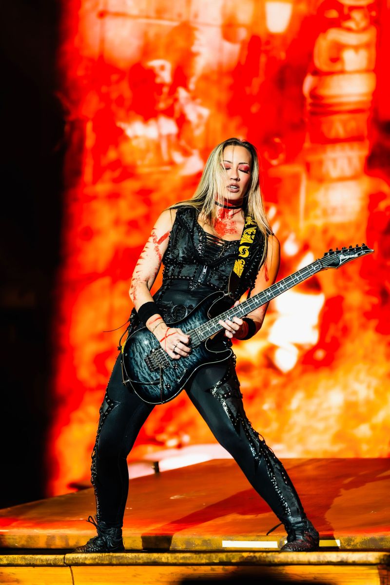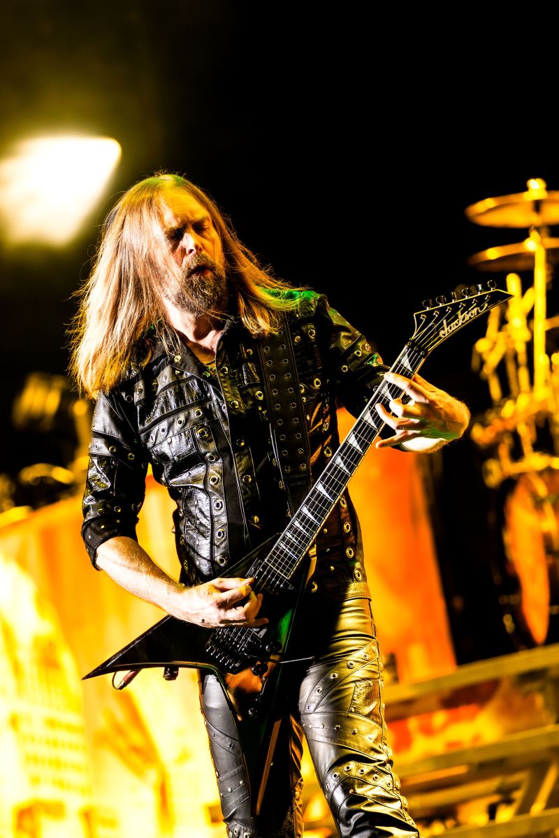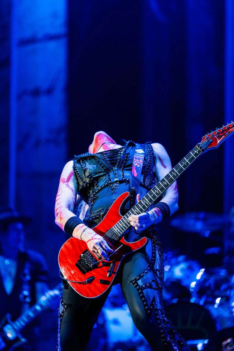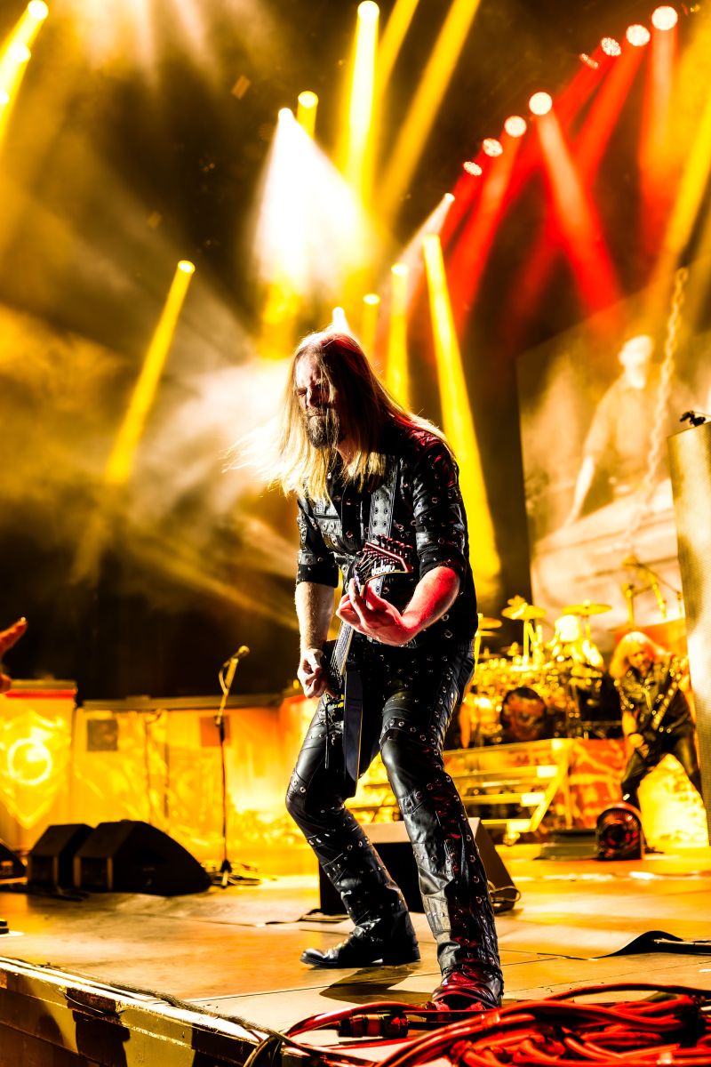 Judas Priest kicked off the night, and honestly, I was blown away. I still can’t wrap my head around the fact that Rob Halford is seventy-four…there’s just no way. Whatever’s in his coffee, I need some. Standing there photographing such a legendary figure felt surreal honestly… moments like that remind me why I love what I do. Everything about their set was flawless as well…the sound, the lighting, the visuals, even the outfits were on point. The band celebrated the 35th anniversary of Painkiller, opening strong with “All Guns Blazing” and rolling through a powerhouse set of fan favorites like “You’ve Got Another Thing Coming,” “Breaking the Law,” “Night Crawler,” and “Gates of Hell.” One of the most emotional moments came during “Giants in the Sky,” a heartfelt tribute to rock legends we’ve lost…Eddie Van Halen, Lemmy, Freddie Mercury, and, to my surprise, the incredible Jill Janus of Huntress. Seeing her name up there hit hard; she deserves to be remembered more. The tribute closed with a screen filled with Ozzy’s face, and not going to lie, it got me teary-eyed. The energy stayed high all night…Rob even rode out on stage on a motorcycle to tear through the final songs. It was pure metal magic from start to finish, and when the screen behind them flashed “The Priest Will Be Back,” there was no doubt they meant it.
