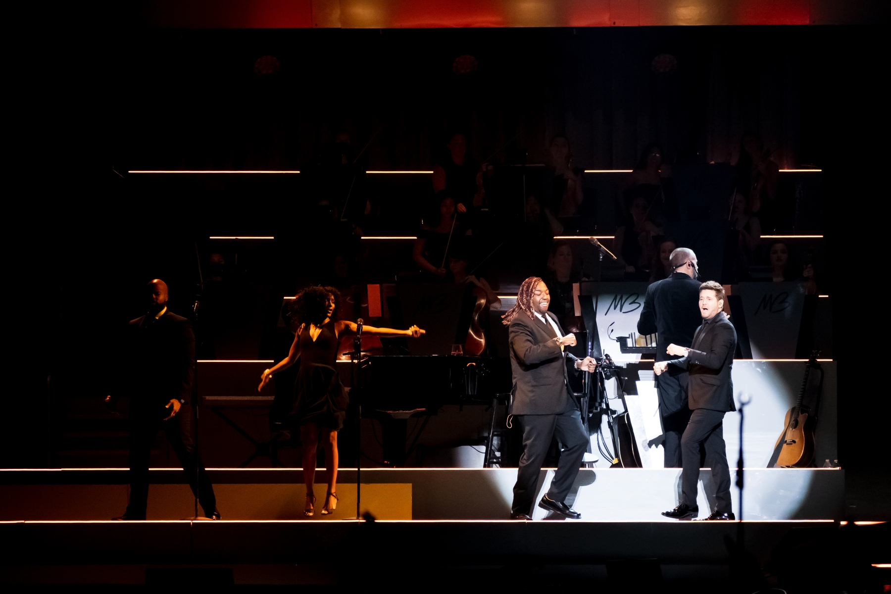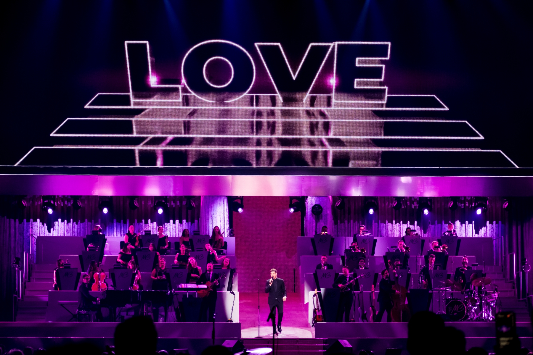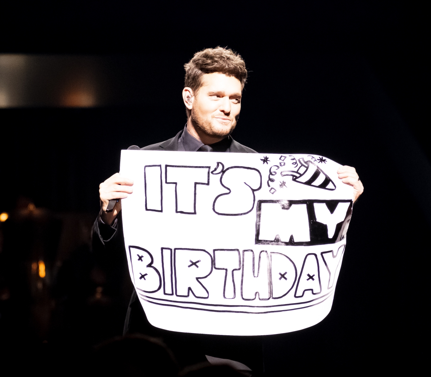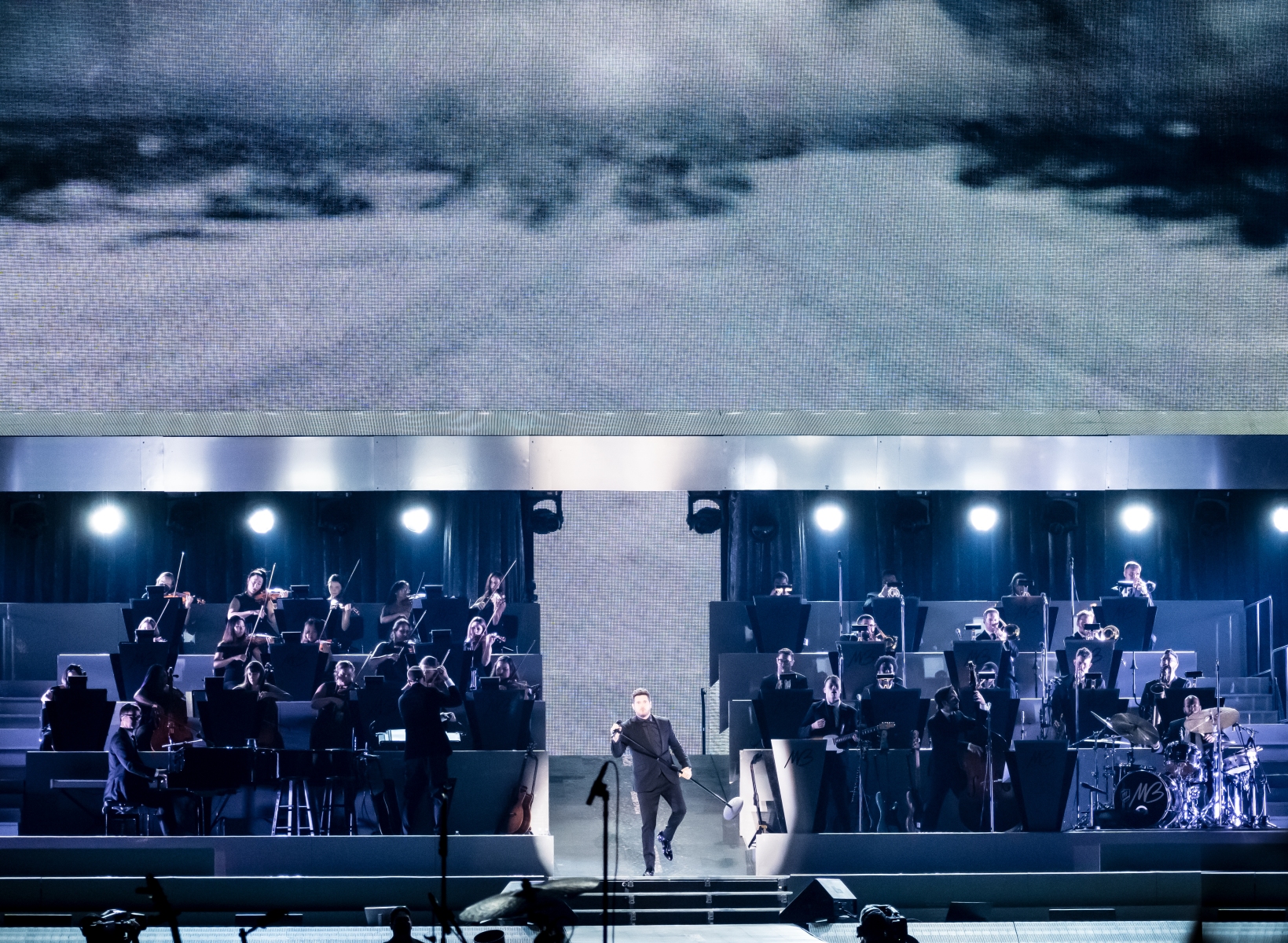 Michael Bublé made his appearance in Houston, performing for his Higher Tour Series of 2022, on September 13th. The multi-platinum singer and GRAMMY Award-Winning Artist filled the Toyota Center. The Concert started with a graphic that had the initials of Michael Bublé written on a picture of a curtain. The images started to change into a visual that showed a picture of him with a clock counting down until the show began. When the countdown was completed the stage went pitch dark and the visuals on the screen started changing into a flame that changed the color of Michael Bublé’s initials into a golden burnt orange. Atmospheric mist filled the stage with a spotlight that pointed directly on Bublé and the performance began.