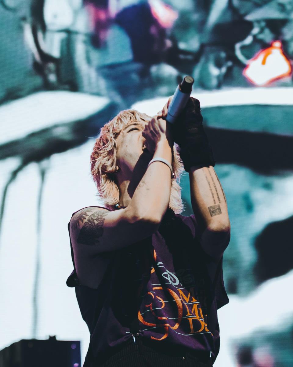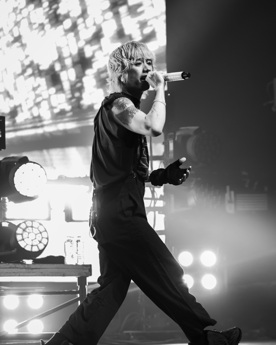 Stand Atlantic wasted no time igniting the spark. Frontwoman Bonnie Fraser commanded the stage with boundless energy, her voice soaring over the crowd as they tore through songs like “WARZONE,” “GIRL$,” and “CRIMINAL.” The pit bounced to every chord, already drenched in sweat before the headliners even stepped out.