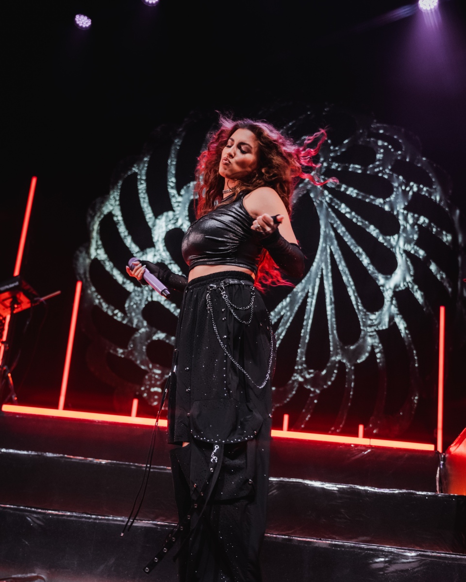 Tori Kelly opened the show with an electric performance of “Thing U Do,” immediately setting the tone for a night of musical magic. This was followed by “Unbelievable” and her breakout hit “Nobody Love,” delighting fans with a mix of her classic hits and her latest work. Her introduction to the stage was nothing short of iconic, with lights flashing and her accompanying band hyping up the crowd before Kelly’s backlit silhouette appeared at the top of the stairs. The roar from the audience was deafening as her gorgeous vocals filled the venue, giving everyone chills.
