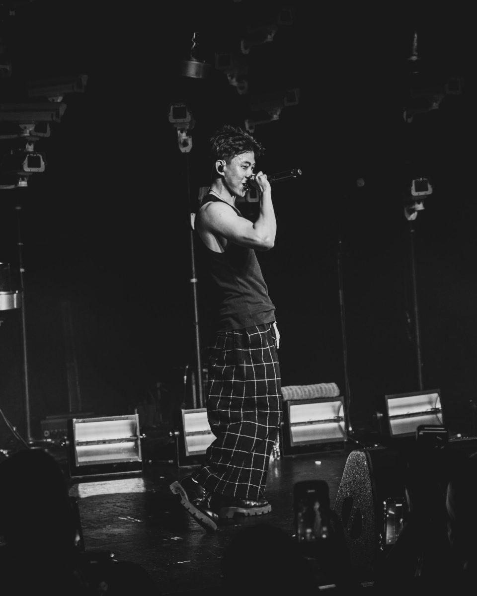 The stage design was stripped back but intentional, echoing the familiar setup from his Head in the Clouds Festival performance last year. It didn’t rely on overproduction or flashy visuals, and honestly, it didn’t need to. The simplicity allowed the focus to stay where it belonged: on the music and the stories behind it. As he moved through tracks from his latest album WHERE IS MY HEAD?, the atmosphere shifted between introspective and explosive, each beat hitting with clarity in the intimate yet very energetic venue.