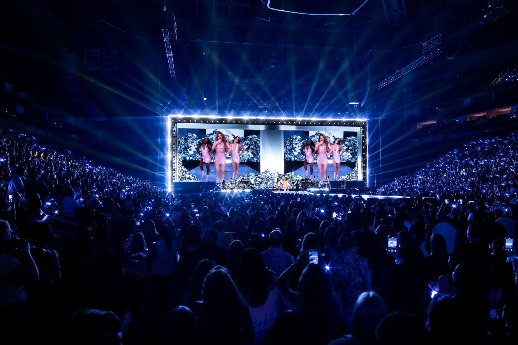 Sueños Blancos.” Her backing band set up shop at the end of the catwalk for an acoustic session with Shakira, as she encouraged the crowd to sing “Antología” to the top of their lungs. A few tracks later, she surprised Houston with a live mariachi band called el Mariachi Garcia to sing fast-paced + Regional Mexican versions of “Ciega, sordomuda” and the Fuerza Regida feature “El Jefe.” No one in the venue sat still and danced to all the new versions of said songs, notably a fan-fave moment from the show.