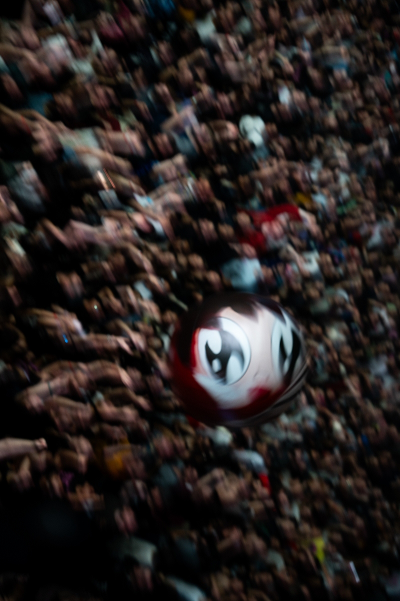 The final part of the show brought us back to his beginnings with the Worlds era. The giant inflatable cat was taken away, but it was replaced by glowing orbs that Porter hit as if playing them like an instrument—a really cool visual that added energy to this part of the performance. During this section, you could really hear his video game music influences. The standout tracks were “Goodbye to a World” and “Sad Machine.” The crowd sang along, and the beat drops had everyone jumping and dancing. By the end, if the crowd wasn’t already tired, they certainly were after this! I know I was! The encore began with “Shelter,” arguably his most popular song, and it was a blast to dance to. He closed the show with “Cheerleader,” the lead single from Smile! 😀, donning the red and black wings from the music video.