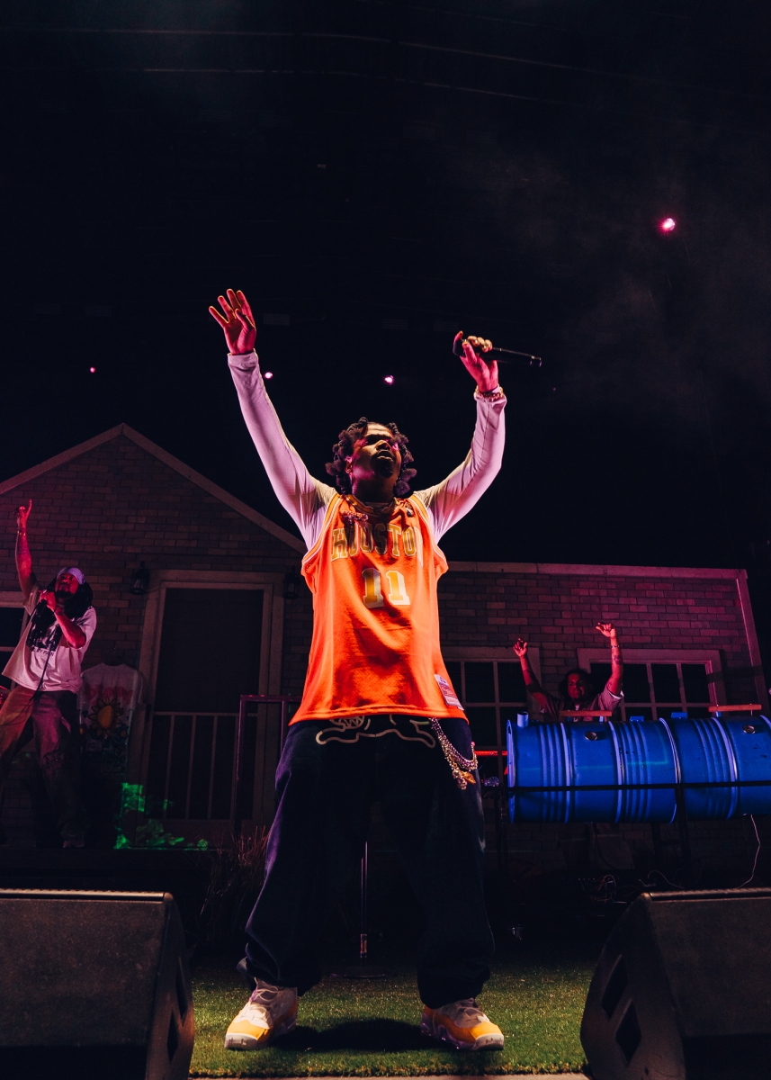 Smino’s “Kountry Kousins” tour stopped in Houston on Saturday, May 10, at White Oak Music Hall’s Lawn was a vibrant celebration of sound, soul, and southern energy. As fans packed the open-air venue, anticipation buzzed through the crowd. The Lawn provided an ideal backdrop for Smino’s genre-blending style, with the city skyline in the distance and a warm spring night setting the mood. From the moment he stepped on stage, Smino commanded attention with his effortless charisma and uniquely playful stage presence.
