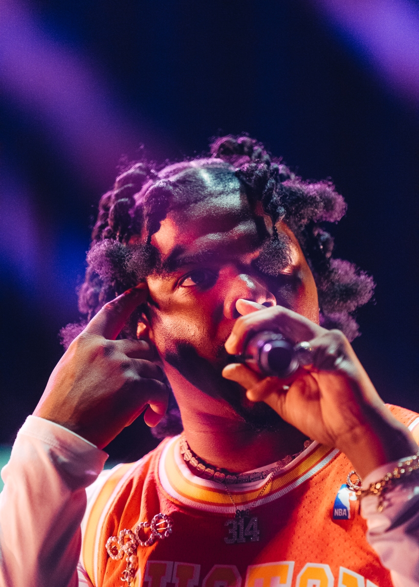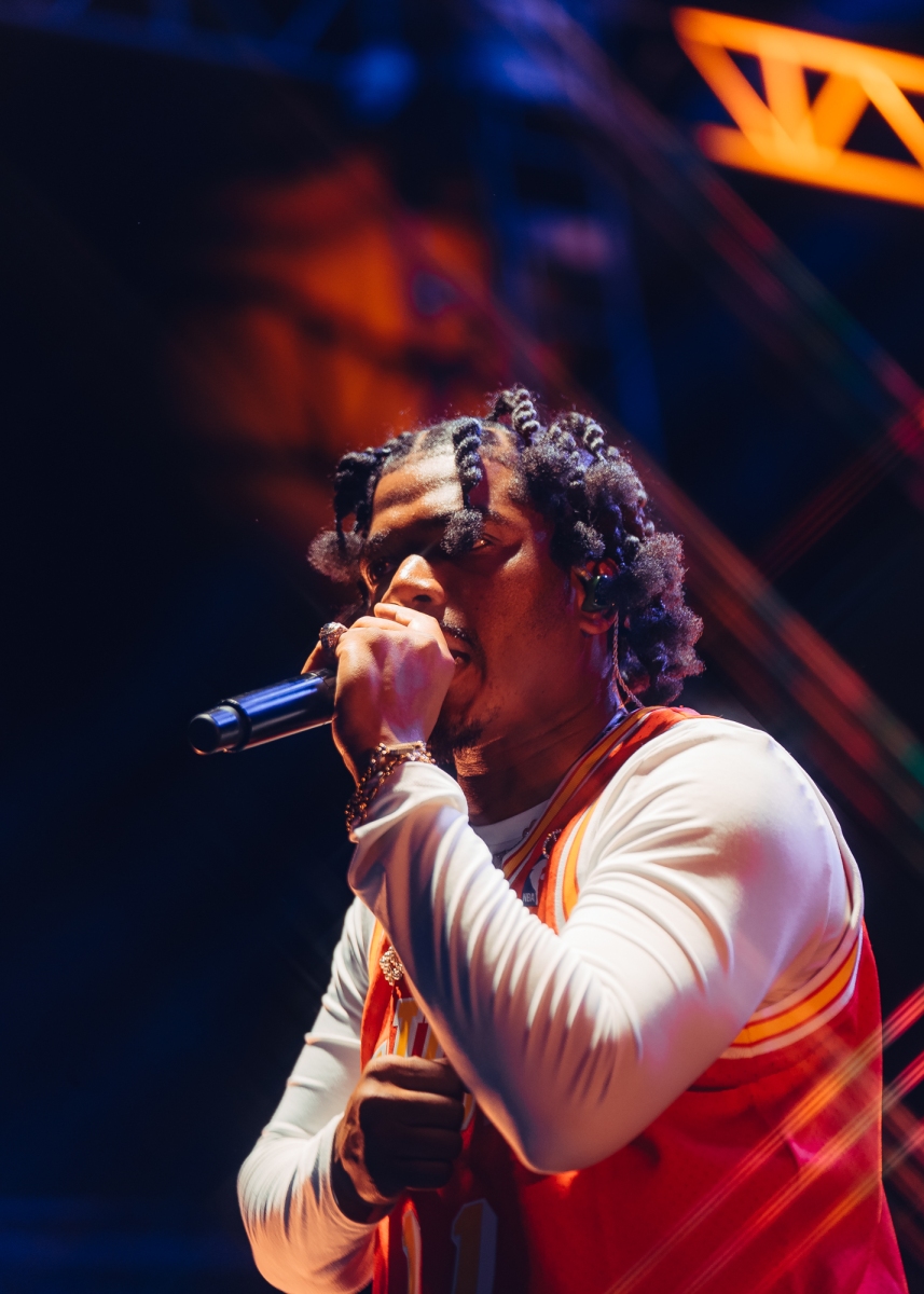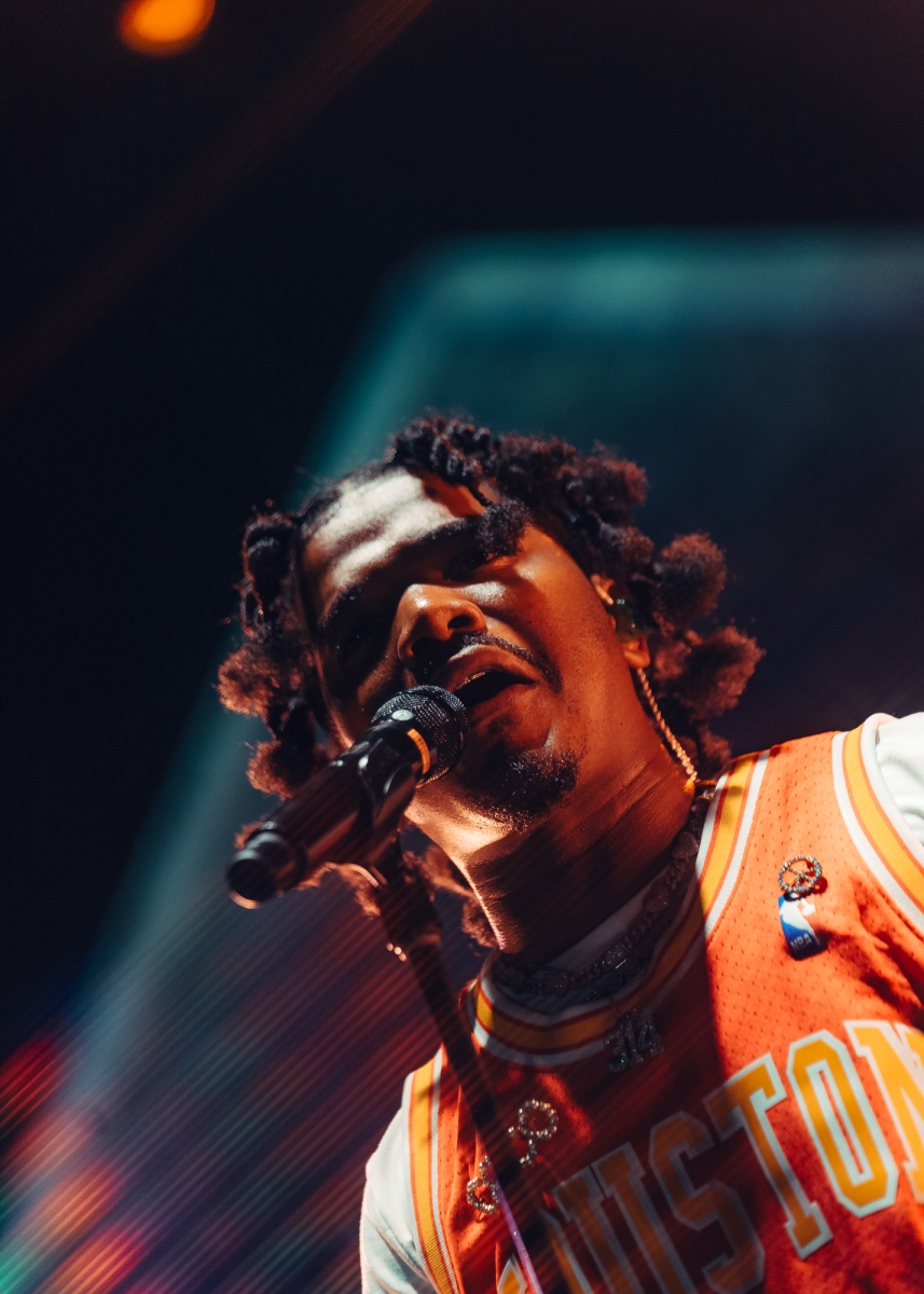 The setlist was a journey through his catalog, pulling tracks from blkswn, NOIR, and Luv 4 Rent, each delivered with electrifying energy. The live arrangements added new depth to familiar songs, and his band brought a funk-laced, jazzy feel that elevated the entire experience. Smino’s vocals were sharp and expressive, effortlessly shifting from smooth crooning to rapid-fire flows. He connected with the audience between songs, sharing stories and hyping up the crowd with infectious joy.