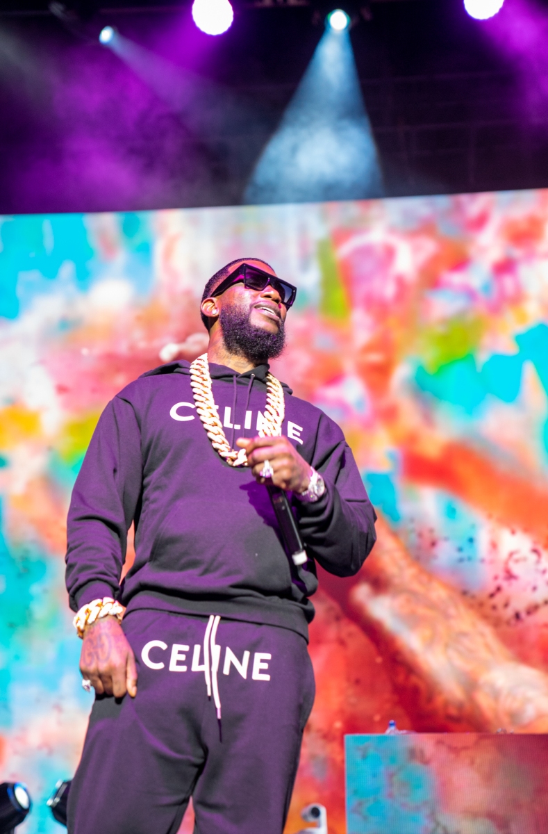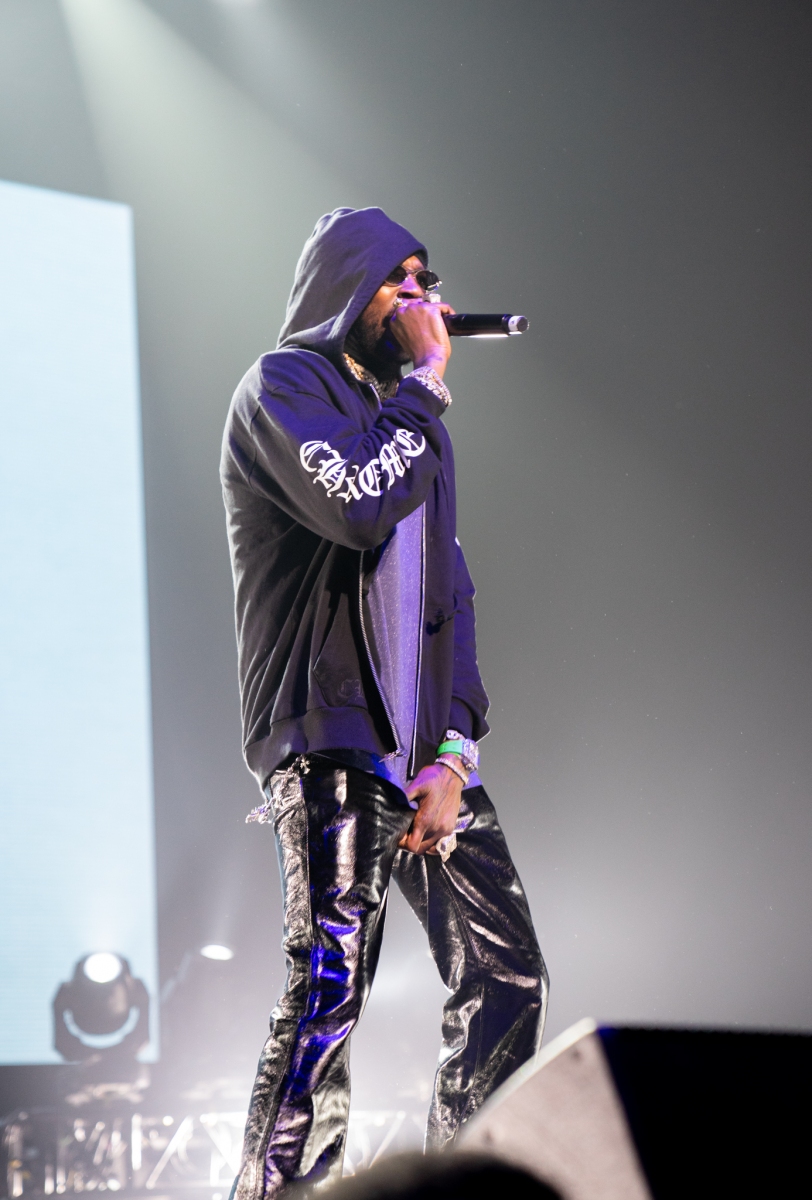 Atlanta artist 2 Chainz was next to maneuver through an extensive playlist. Only able to deliver one or two verses and a hook before having to migrate to another hit.