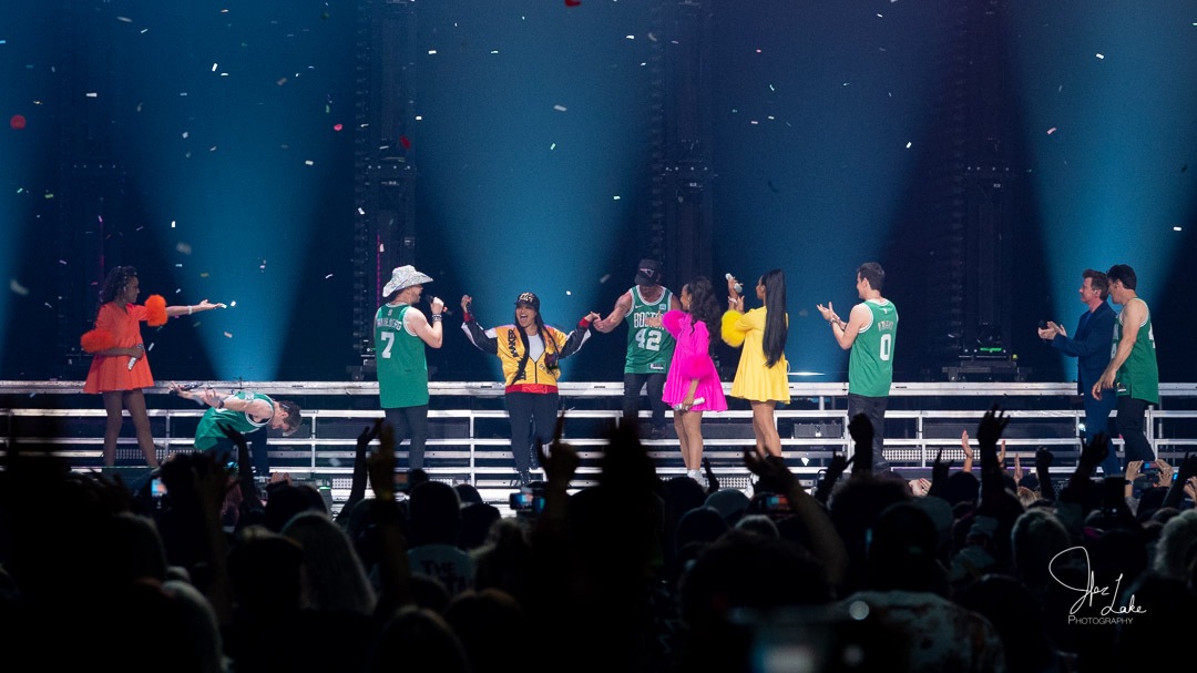 New Kids On The Block brought their Mixtape Tour to Houston’s Toyota Center on Thursday, May 19, including En Vogue, Rick Astly, and Salt N Pepa. The Tour had a unique set-up, instead of each group coming out to perform their set, the show was set up to be an actual mix-tape. NKOTB would perform on the main stage, and En Vogue would appear on the B-Stage, then Rick Astly would take over the main stage and so on. Each artist has their time on both stages, some of them even going out to perform in the crowd. Every so often confetti would rain down on the ecstatic fans, dressed in their best memorabilia and 80’s/90’s gear. This was such a unique show and the unique set-up kept the fans guessing and enthralled.